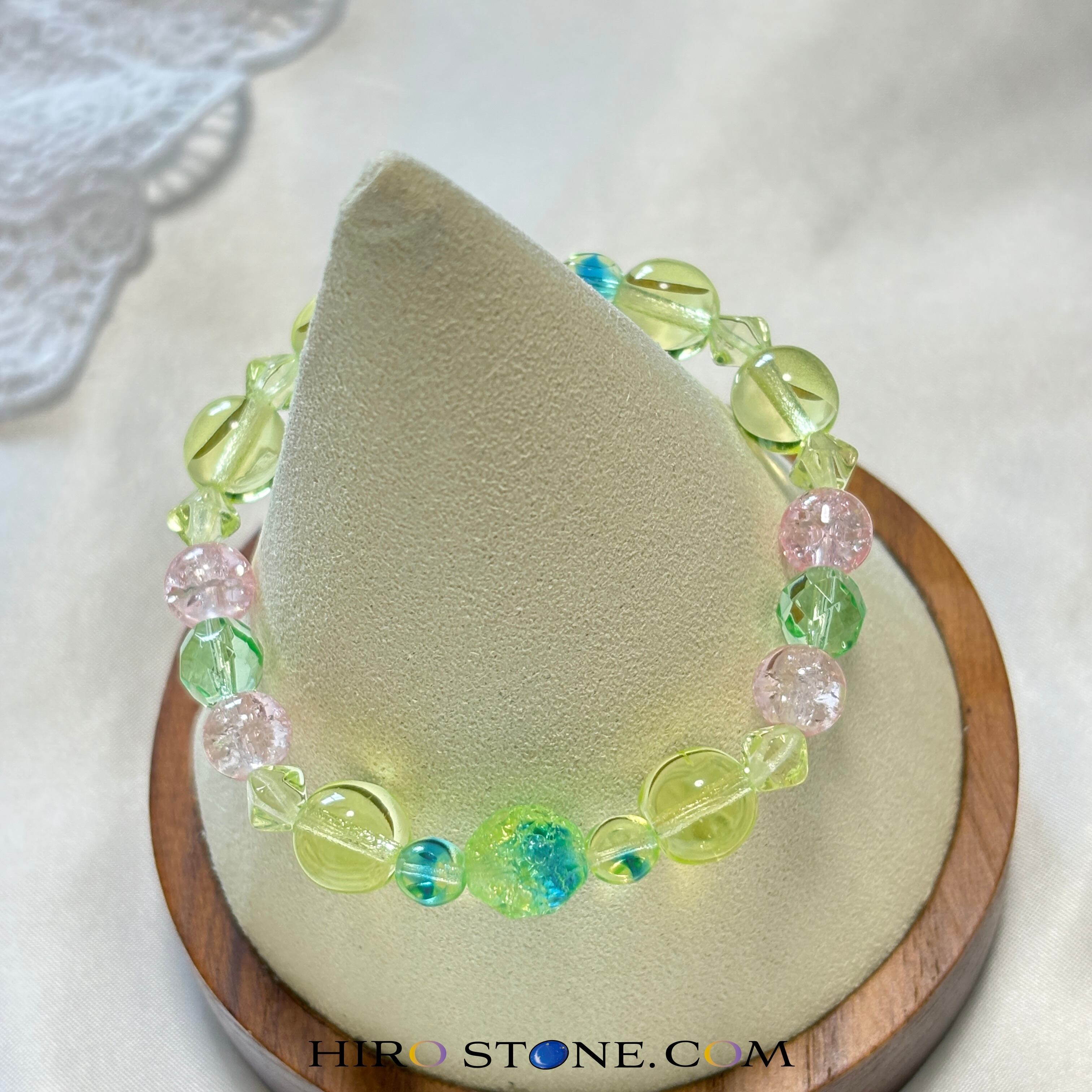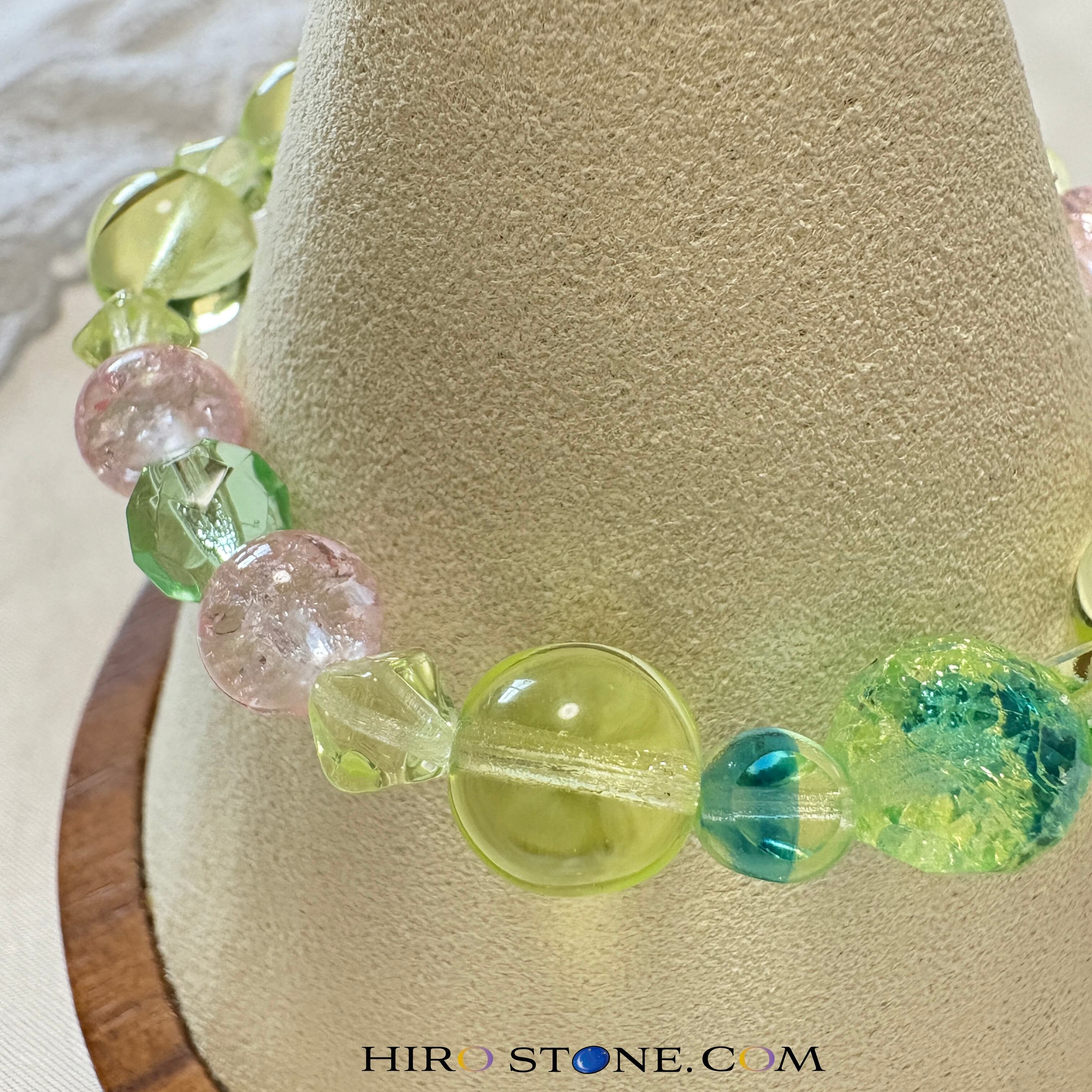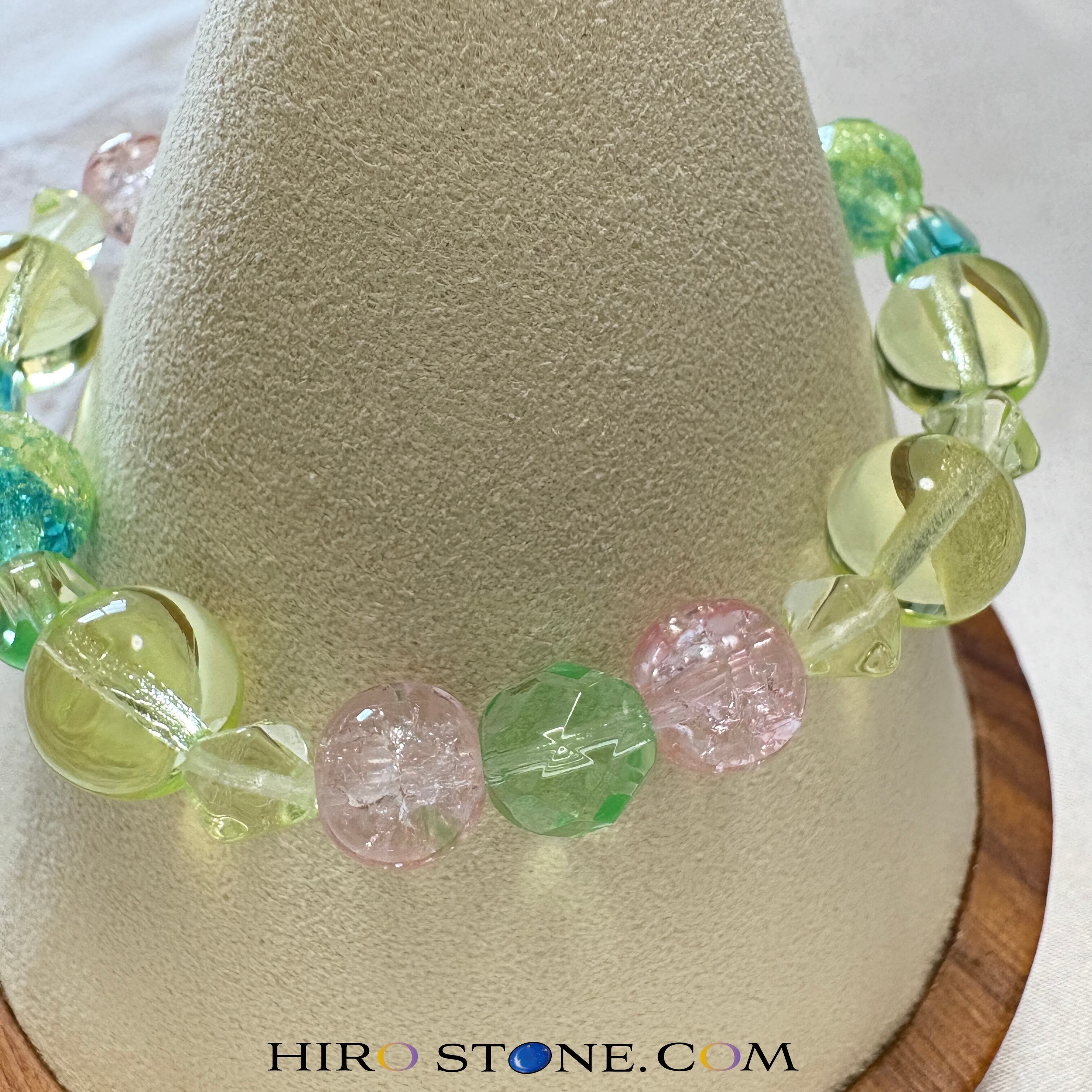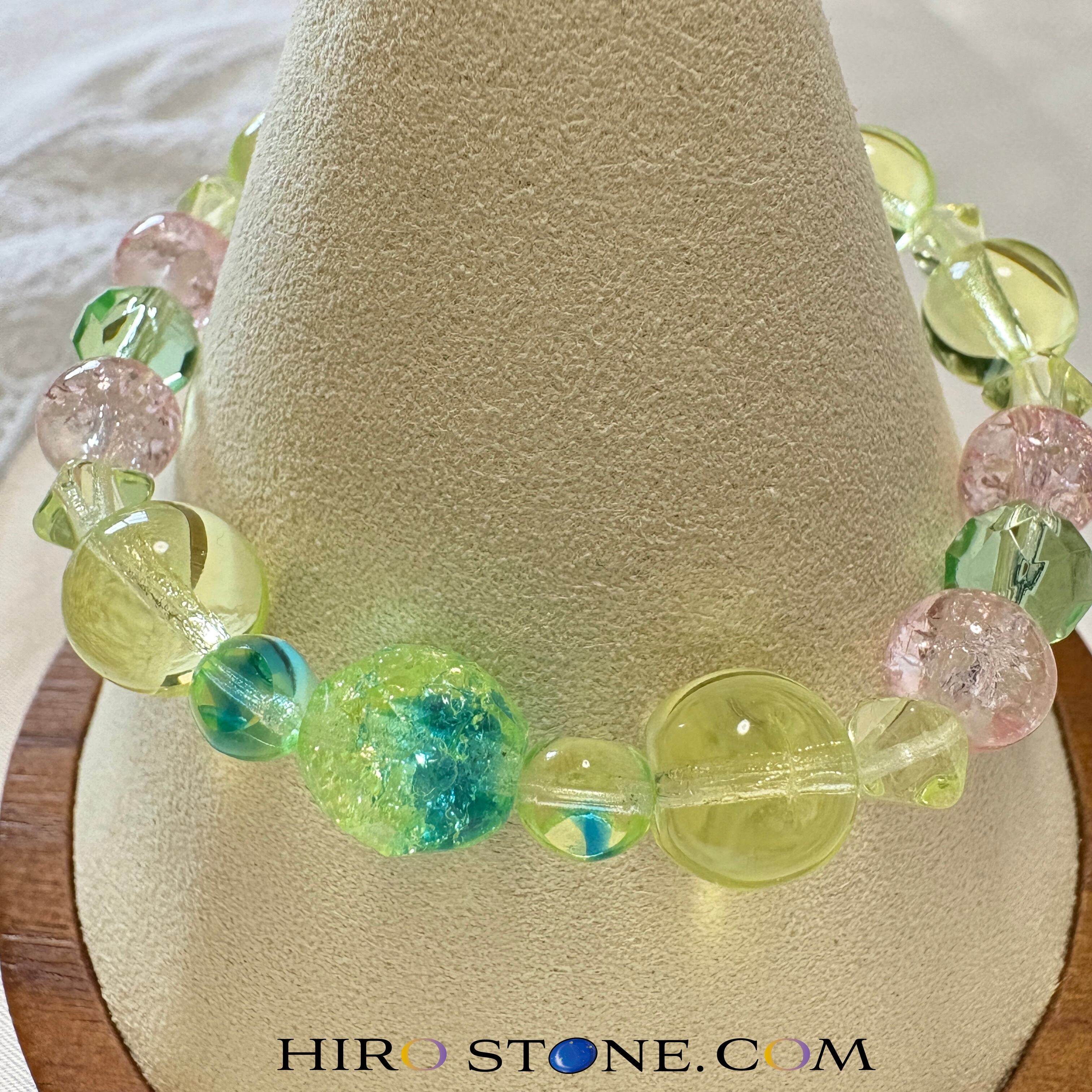 このブレスレットは、チェコ産のウランガラスを使用した、他にはない一品です。