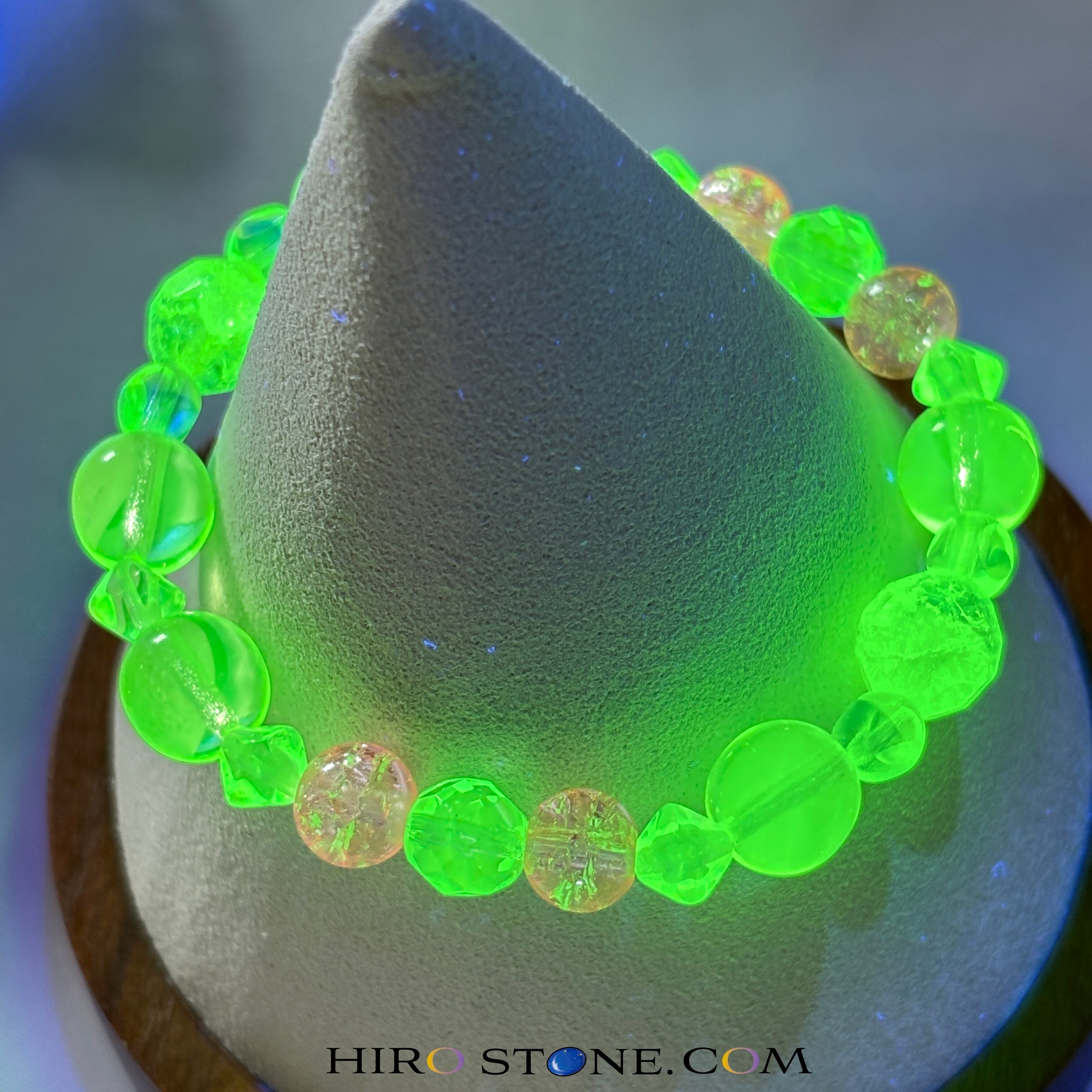 ウランガラスのブレスレットは、微量のウランを含んでだガラスビーズを使用したアクセサリーです。