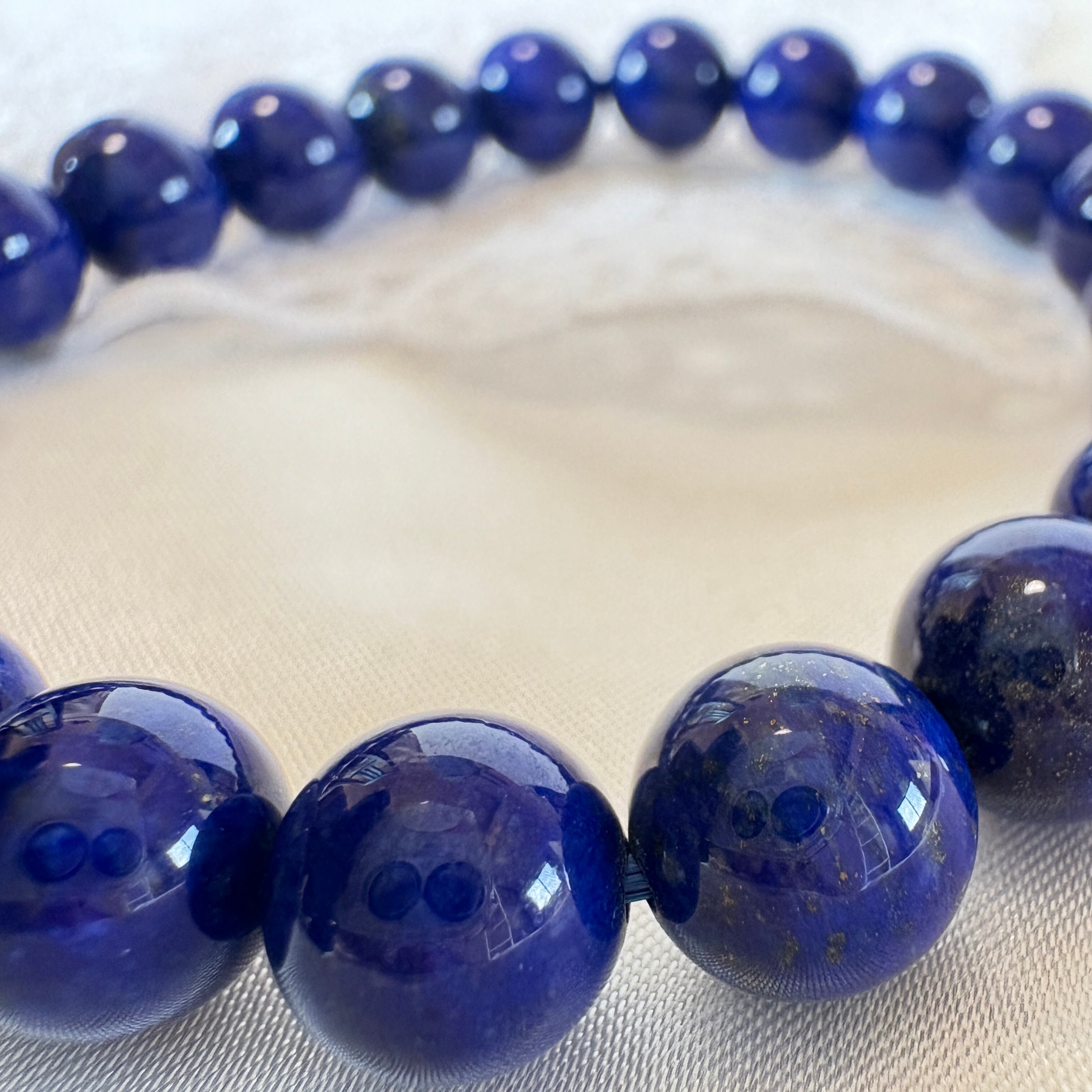 ✨古代より「天空を映す石」として王侯貴族に愛されてきたラピスラズリ。深く鮮やかな群青に金色のパイライトが星のように輝き、まるで宇宙を手元に宿したかのような神秘的なブレスレットです。