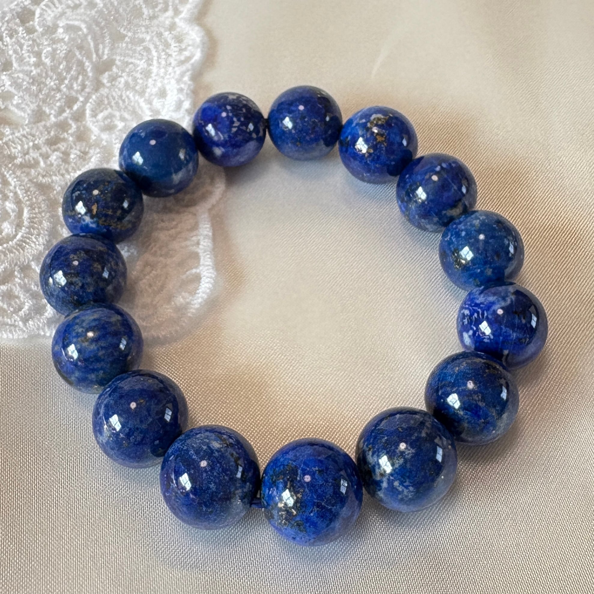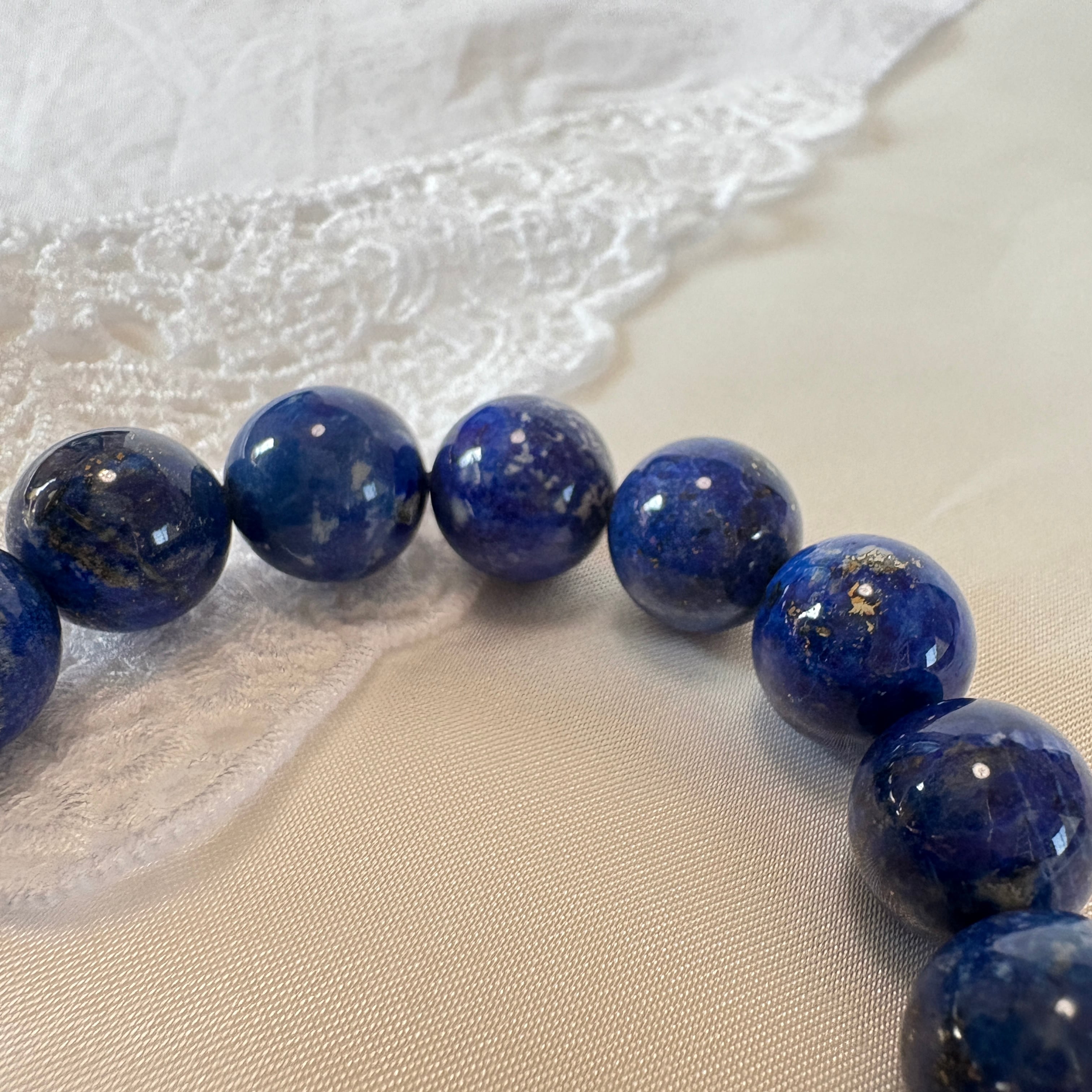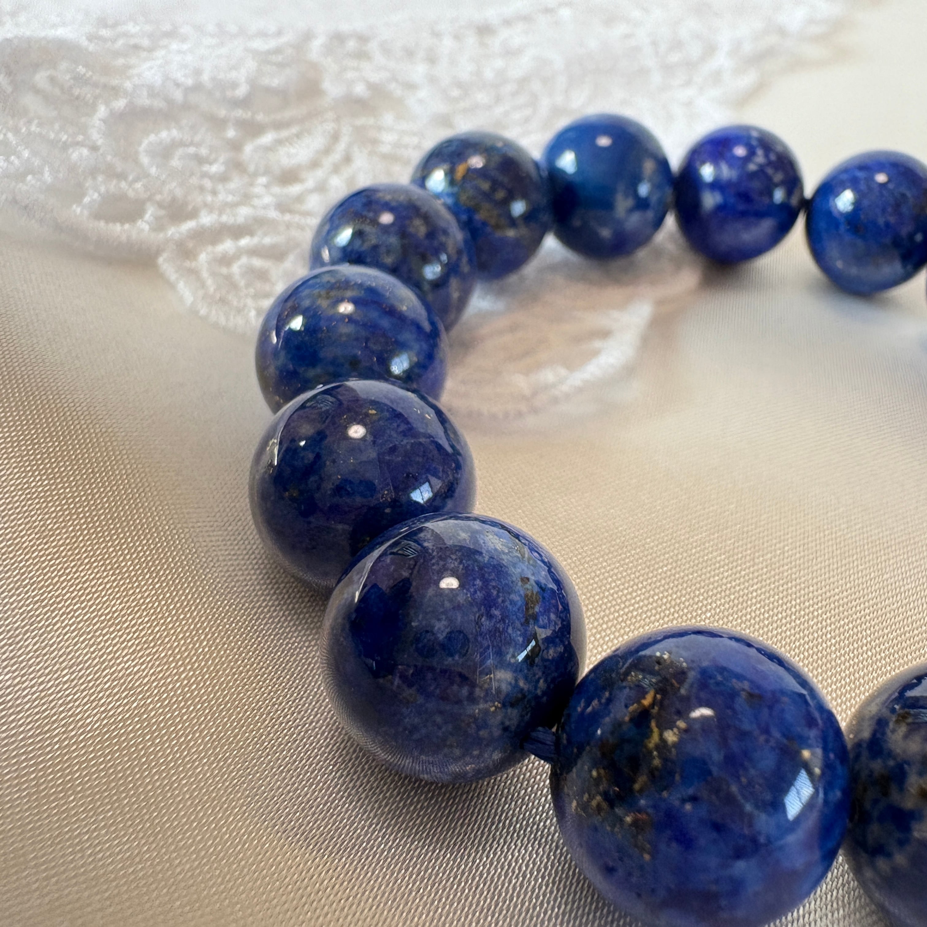 ⭐高品質ラピスラズリ⭐ アフガニスタン産 12.5㎜珠 ブレスレット 一点もの 天然 本物 無着色・無加工 内周15cm