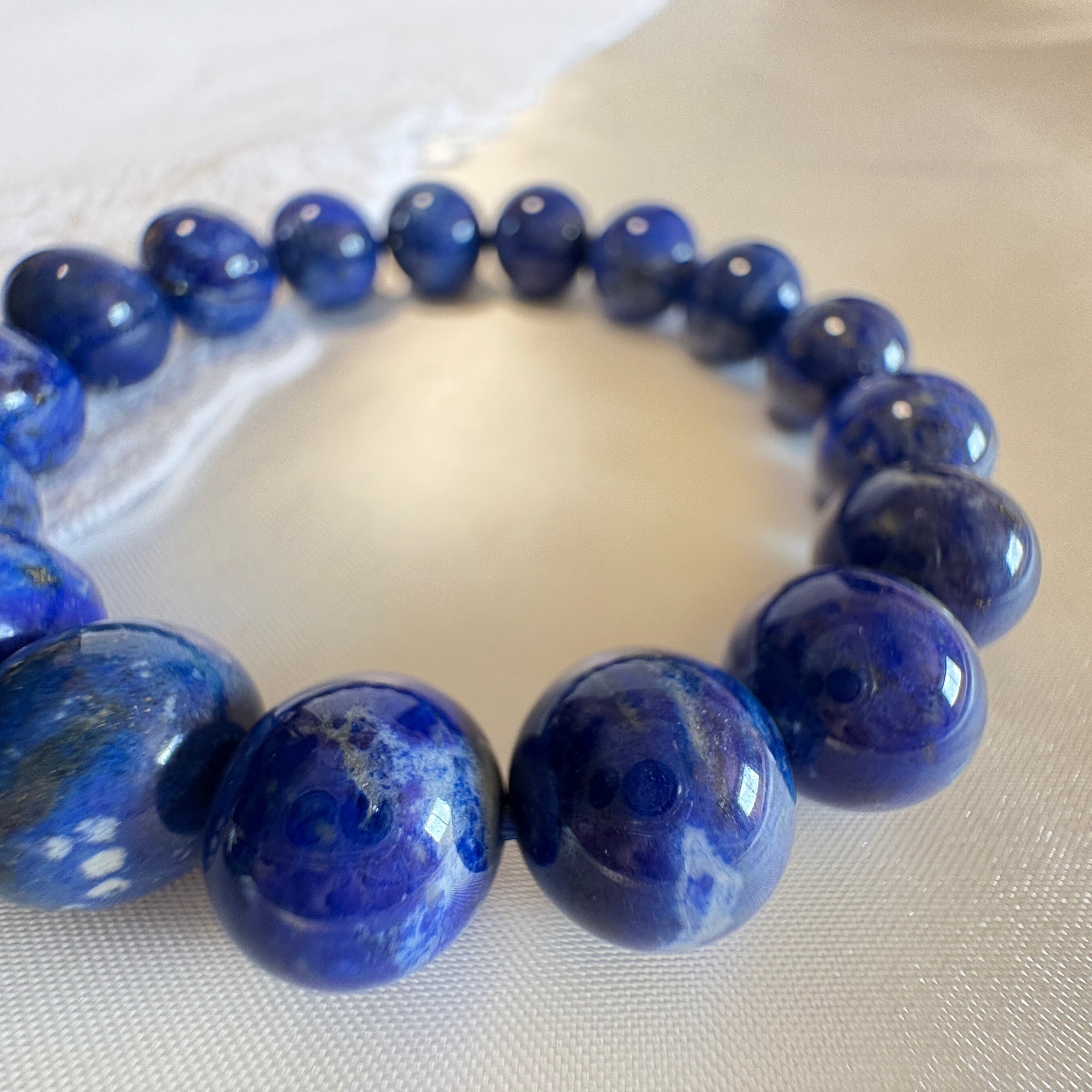 【一点もの】✨ラピスラズリ ブレスレット 12.5㎜珠⭐アフガニスタン産 天然石 無着色・無加工・無処理 内周17cm 幸運・お守り❤️