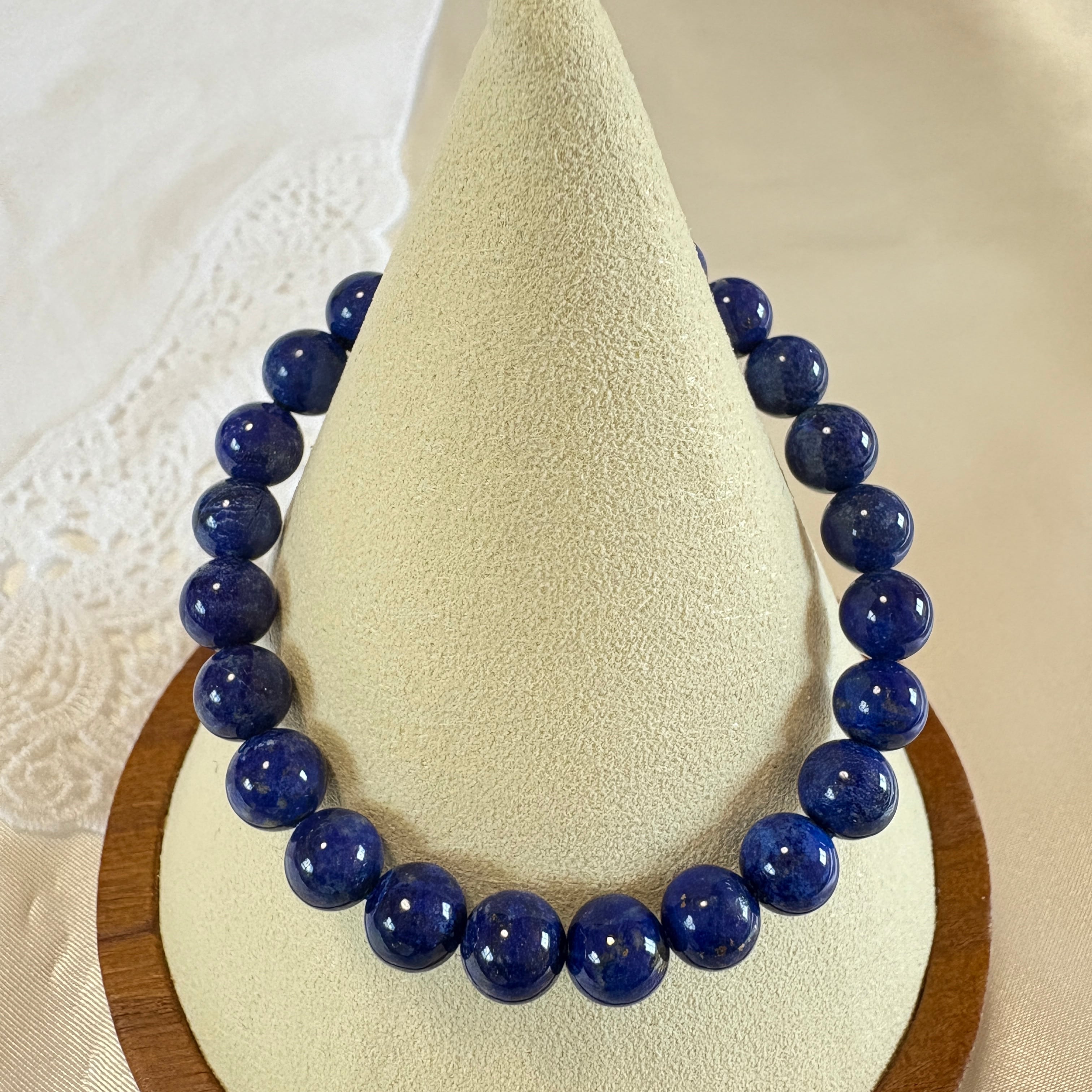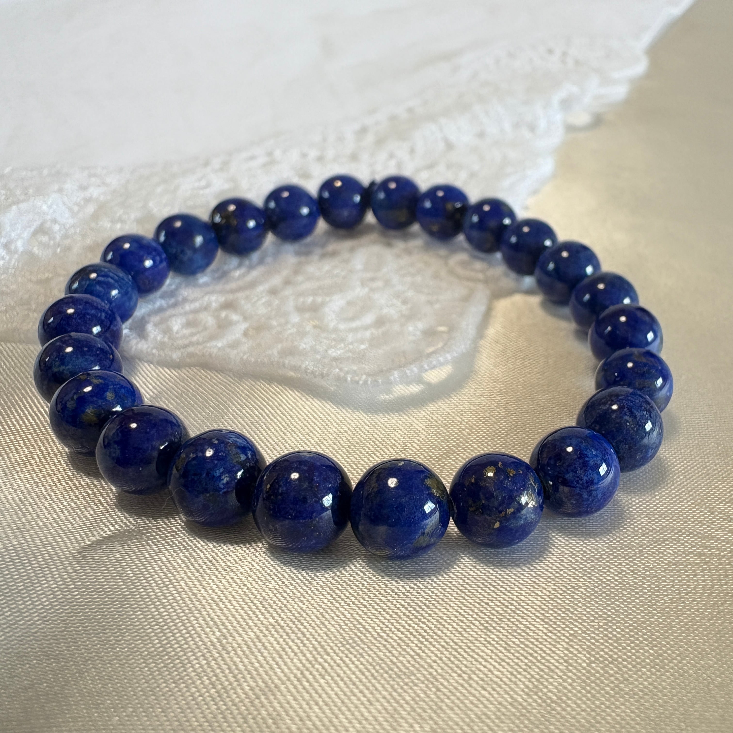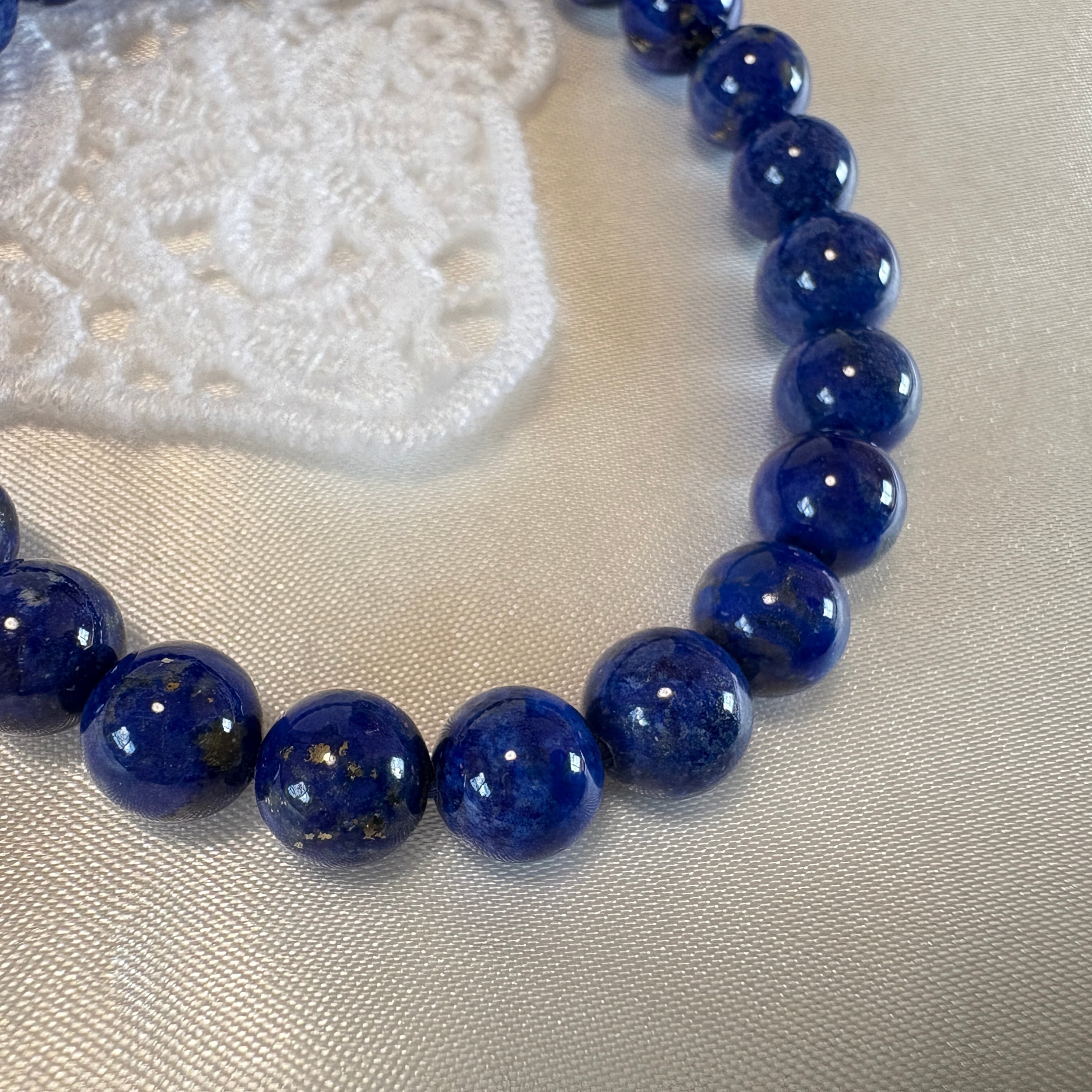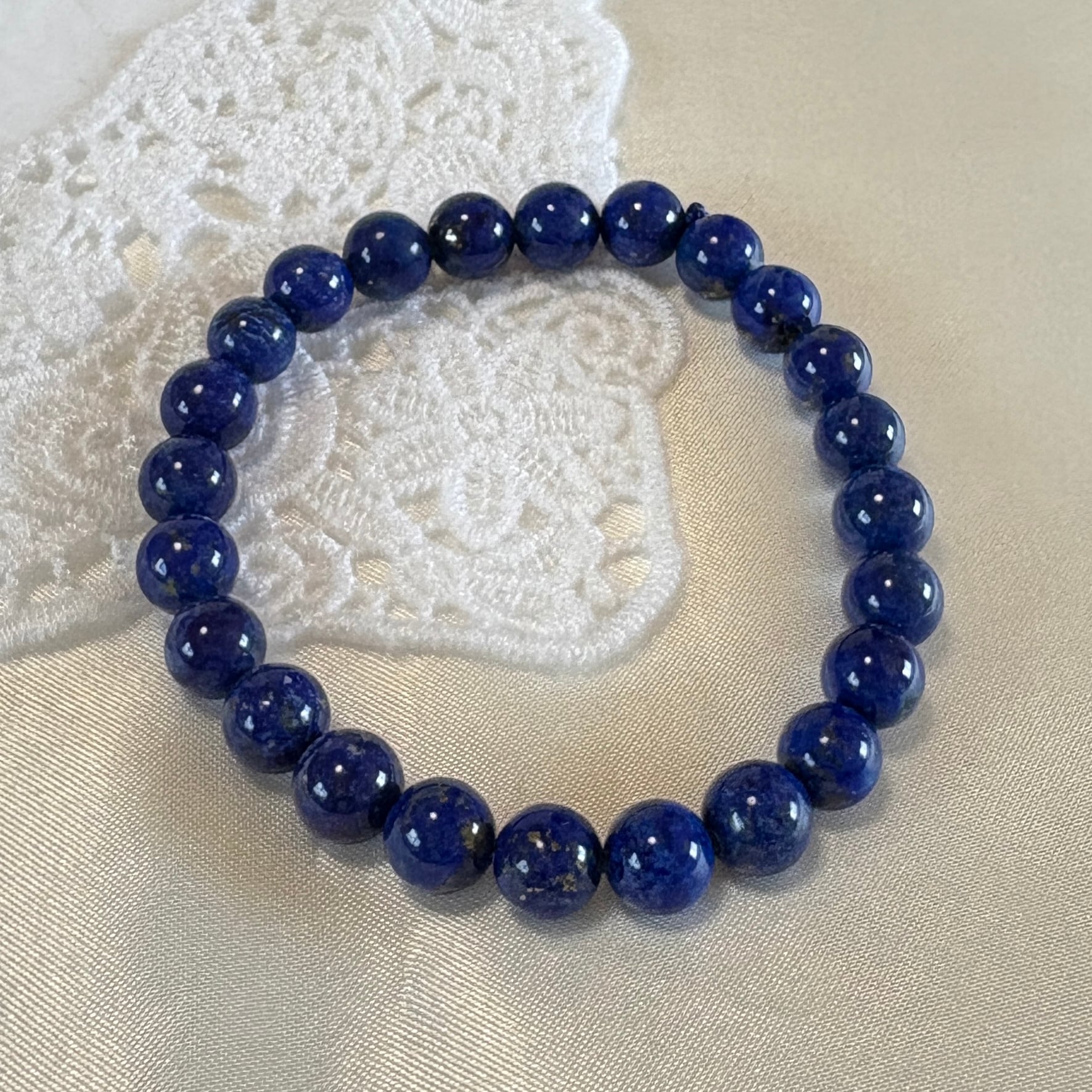 【一点もの】✨高品質 ラピスラズリ ブレスレット 7.5㎜珠⭐アフガニスタン産 天然石 無着色・無加工・無処理 内周14.5cm 幸運・お守り❤️