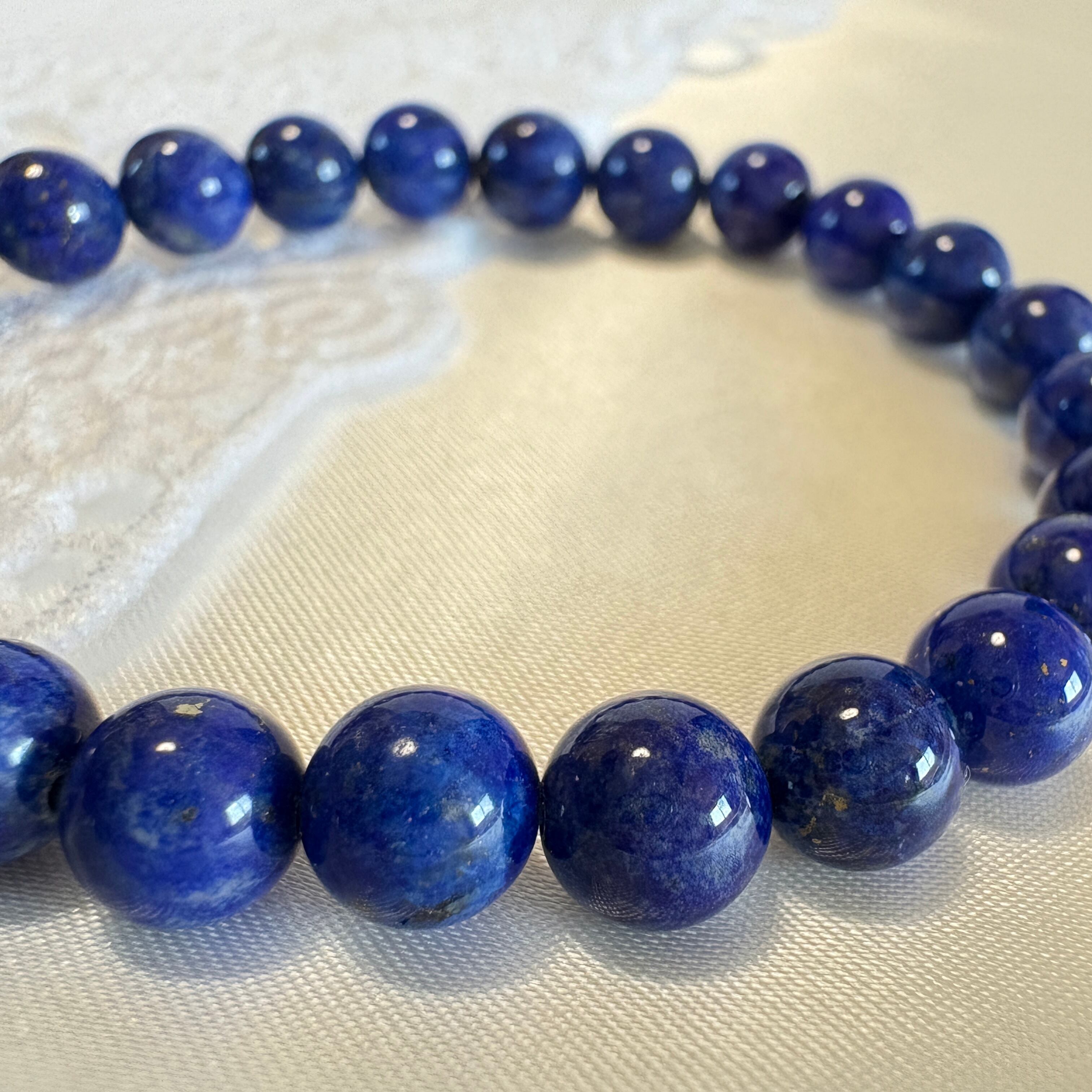 【一点もの】高品質 ラピスラズリ ブレスレット 7.5㎜珠✨アフガニスタン産⭐無着色・無加工・天然本物 内周15cm 幸運・お守り・誕生石にも❤️