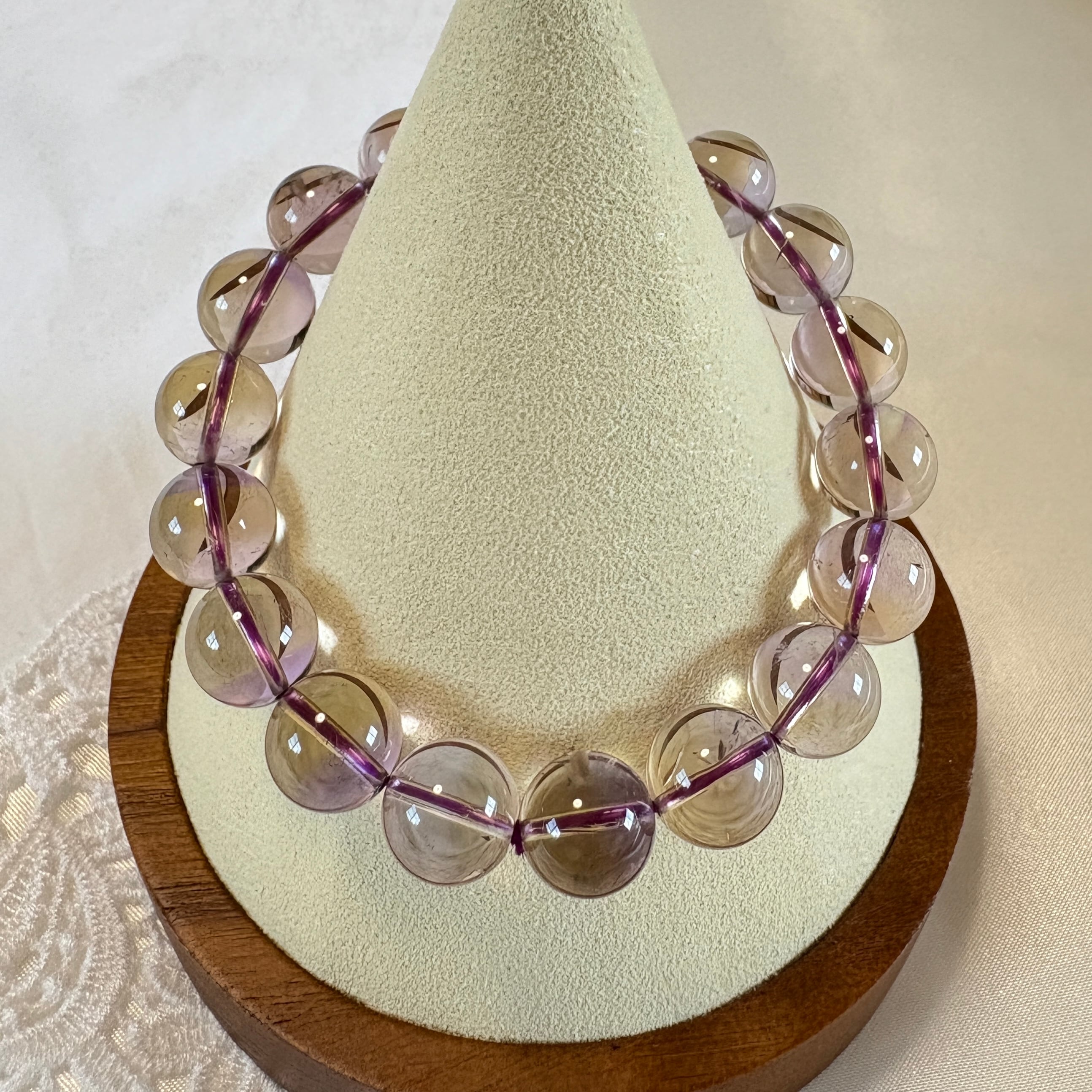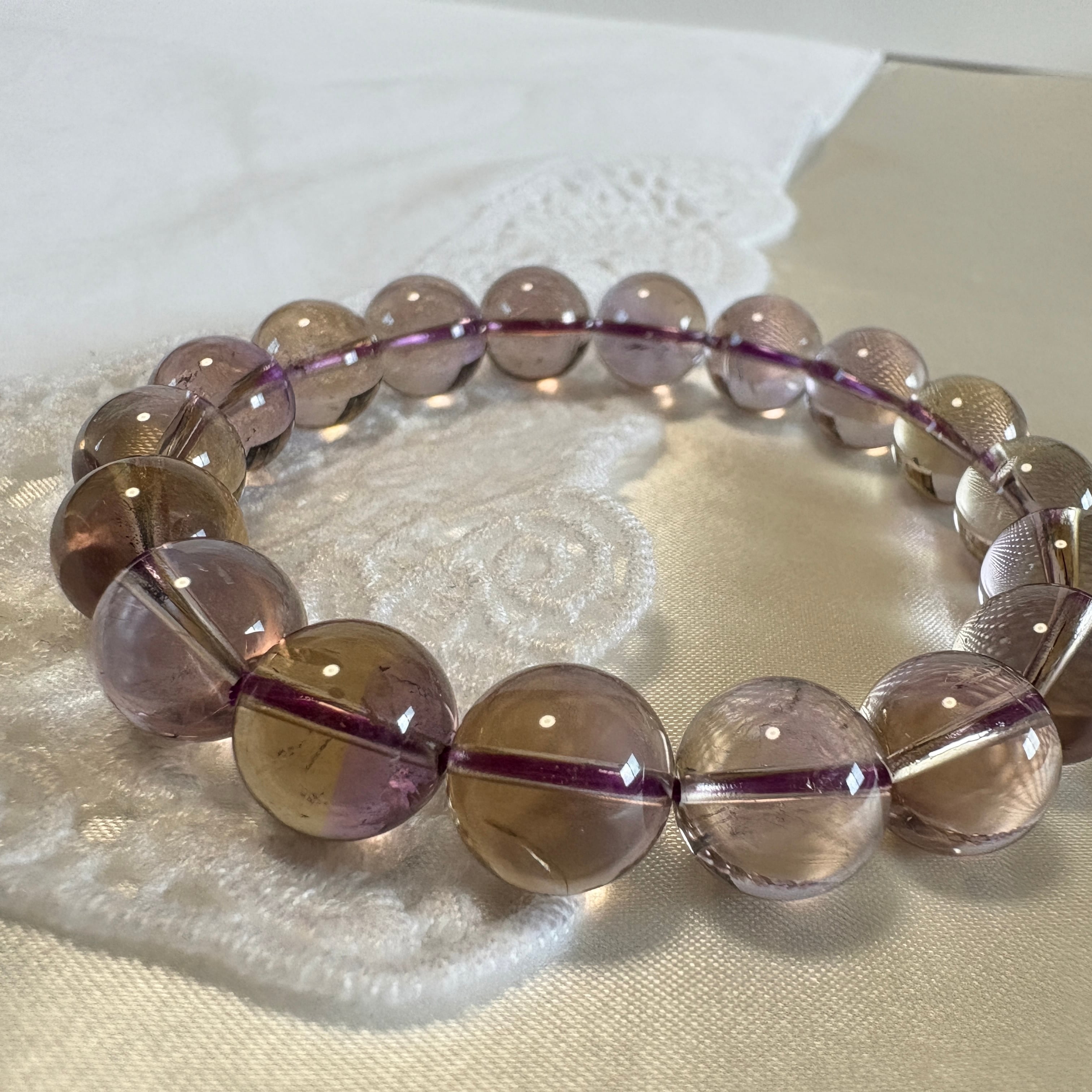 ボリビア産 アメトリン ブレスレット✨10㎜珠の高透明グラデーション/癒しと調和の一点もの(内周15cm)