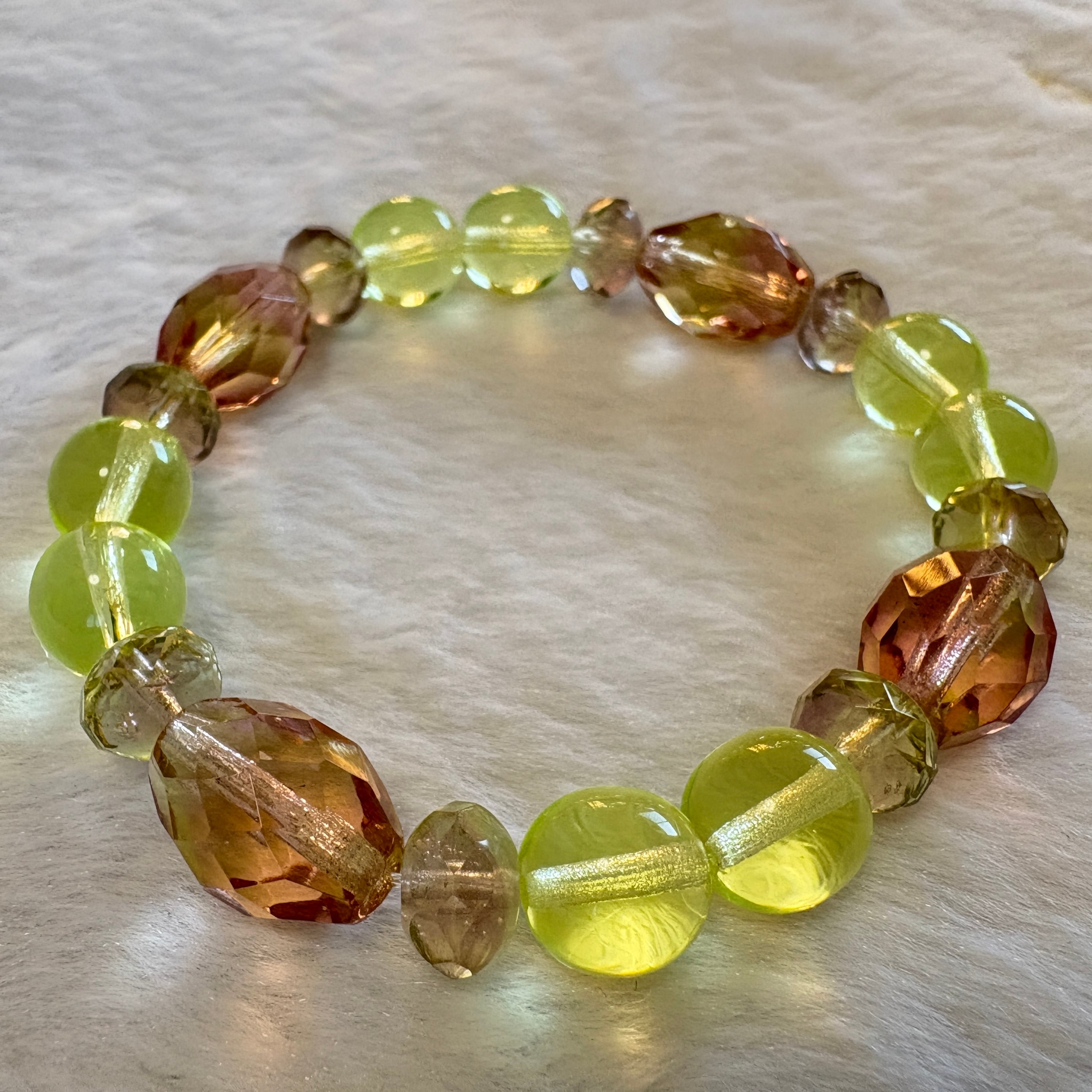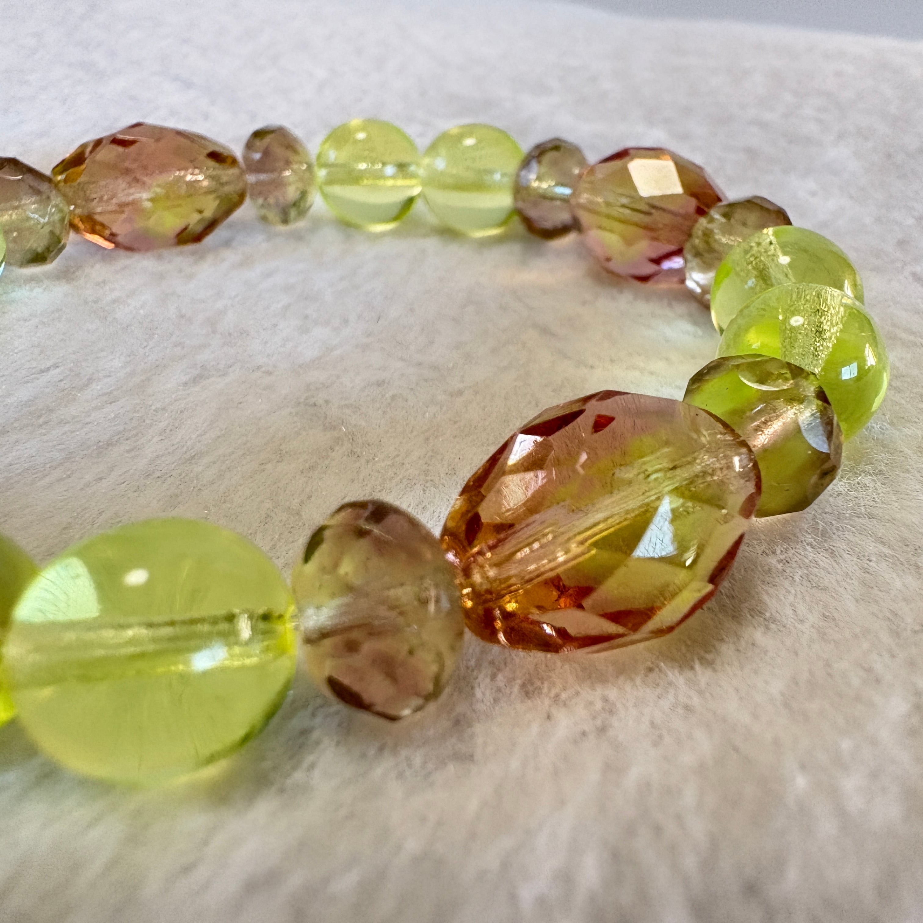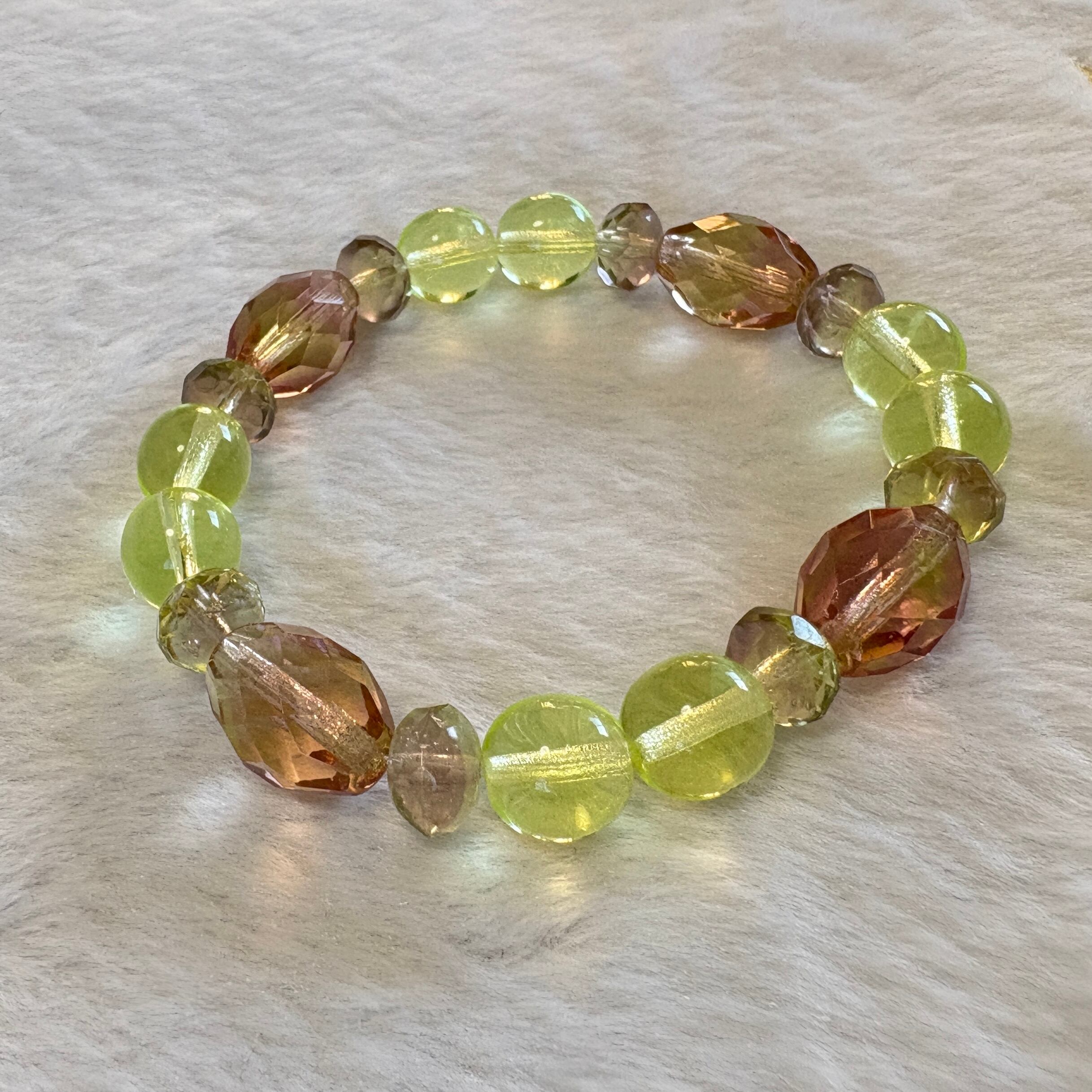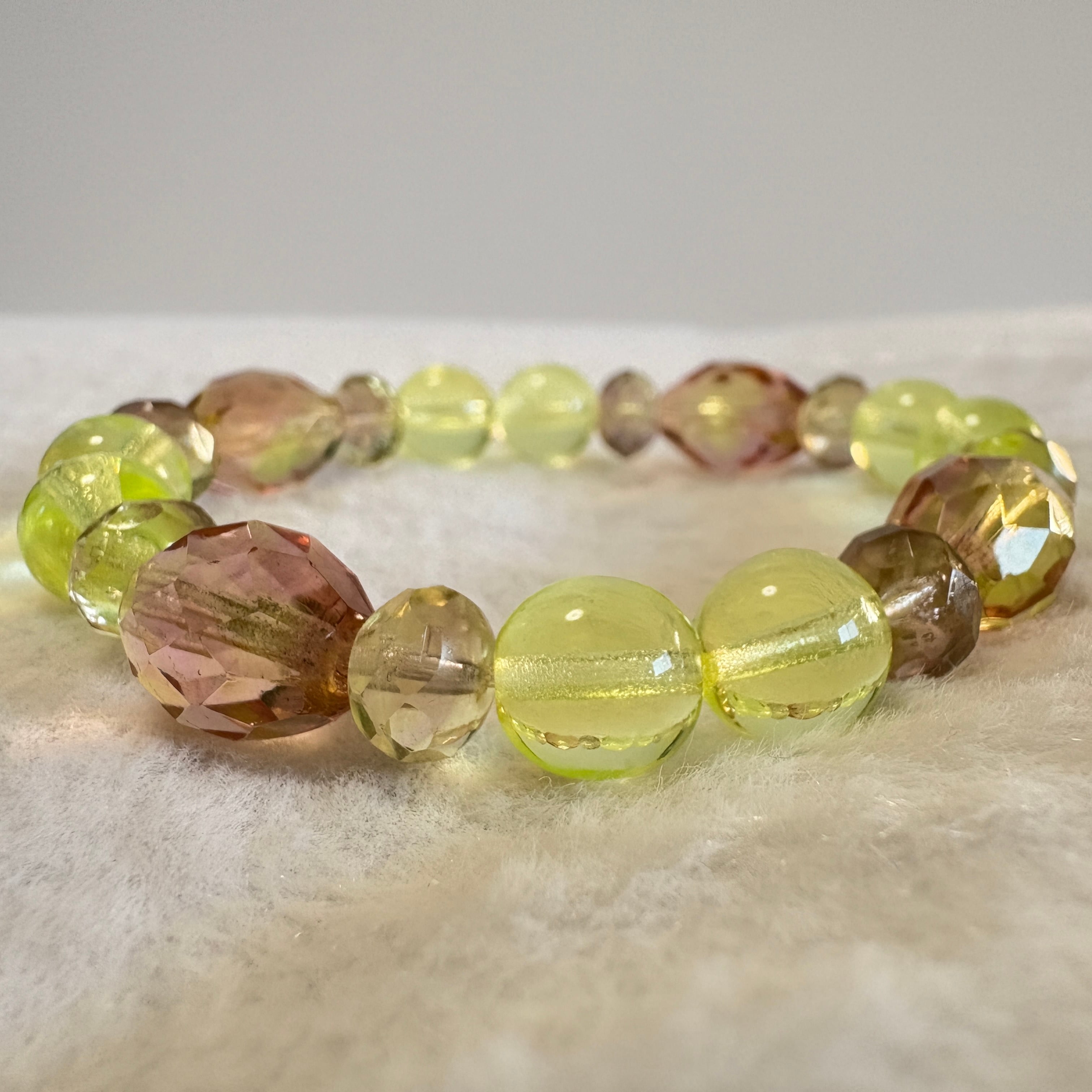 チェコ産ウランガラスを中心に構成した、一点もののブレスレットです。