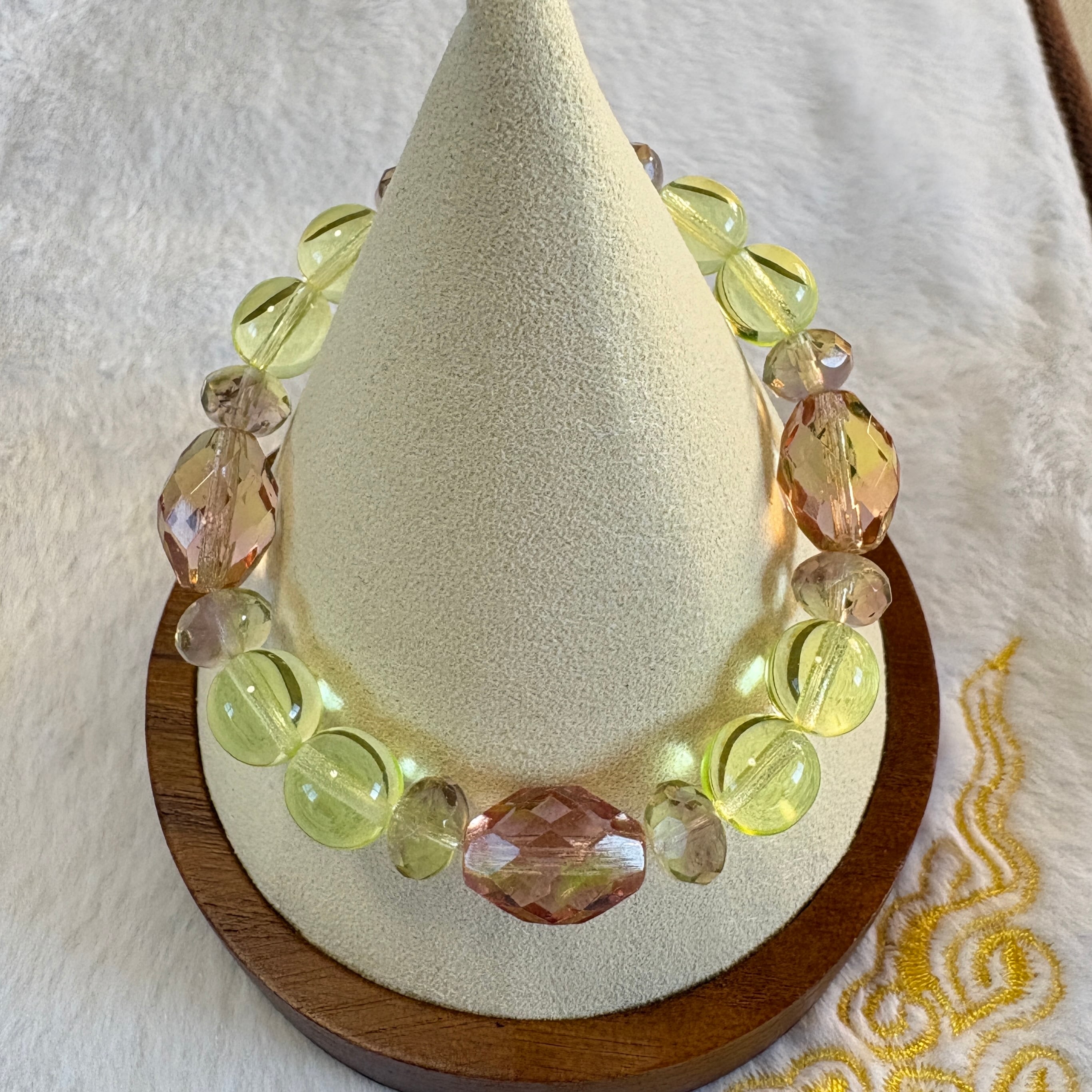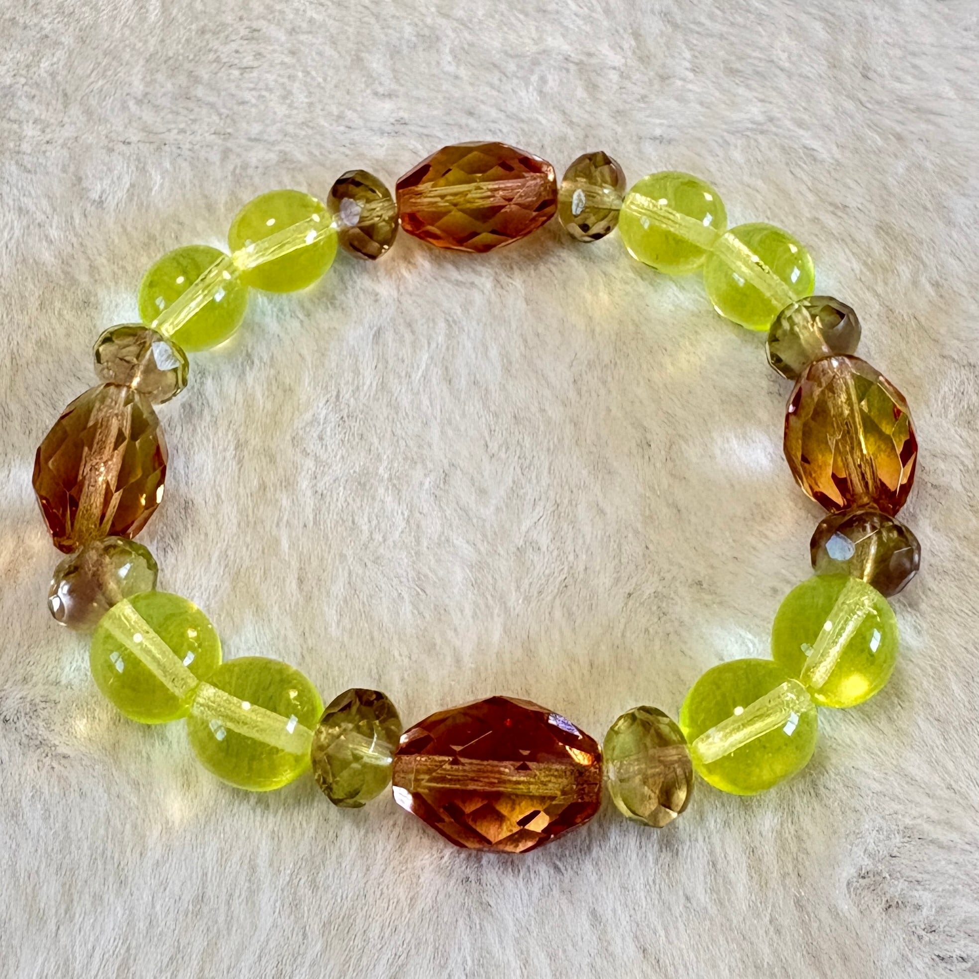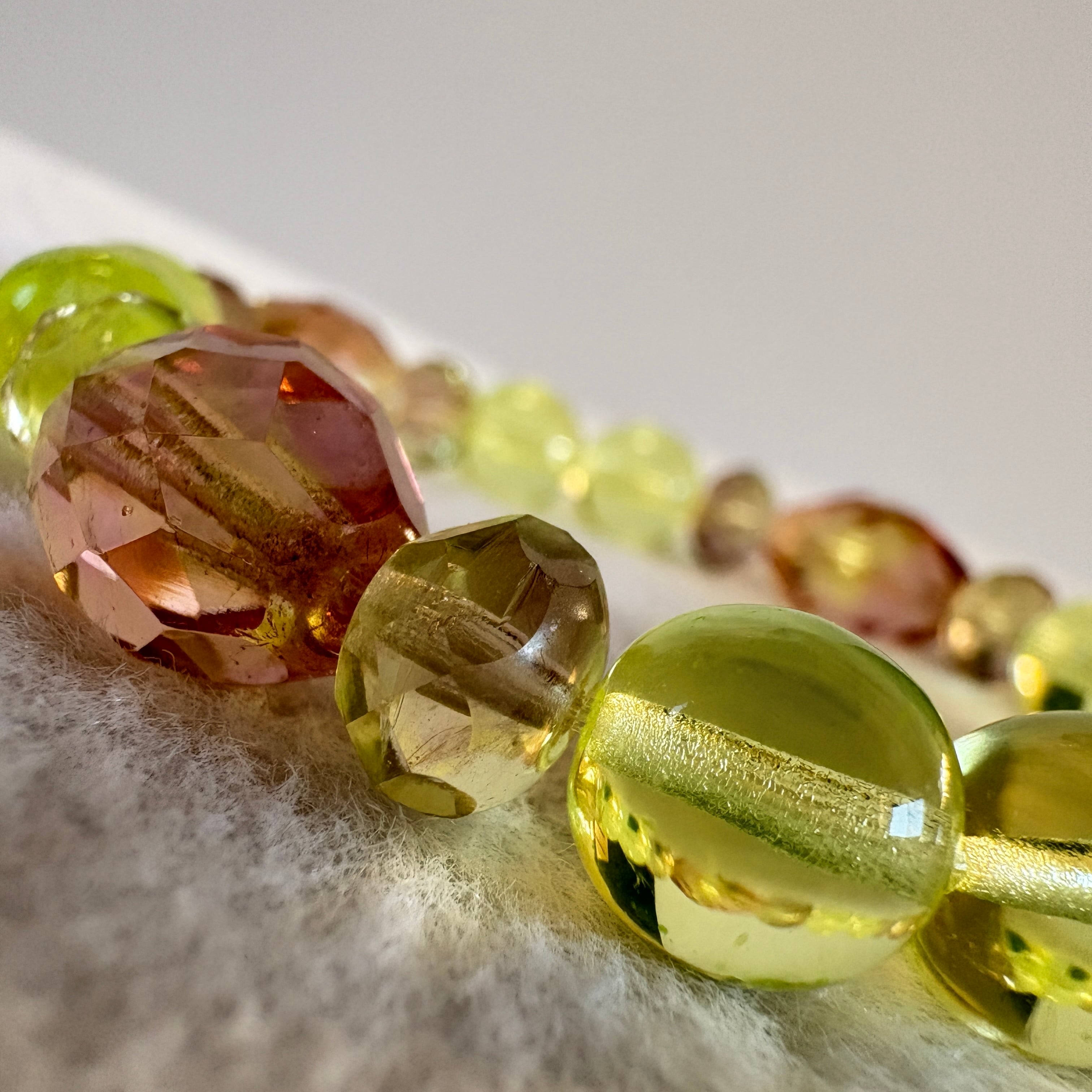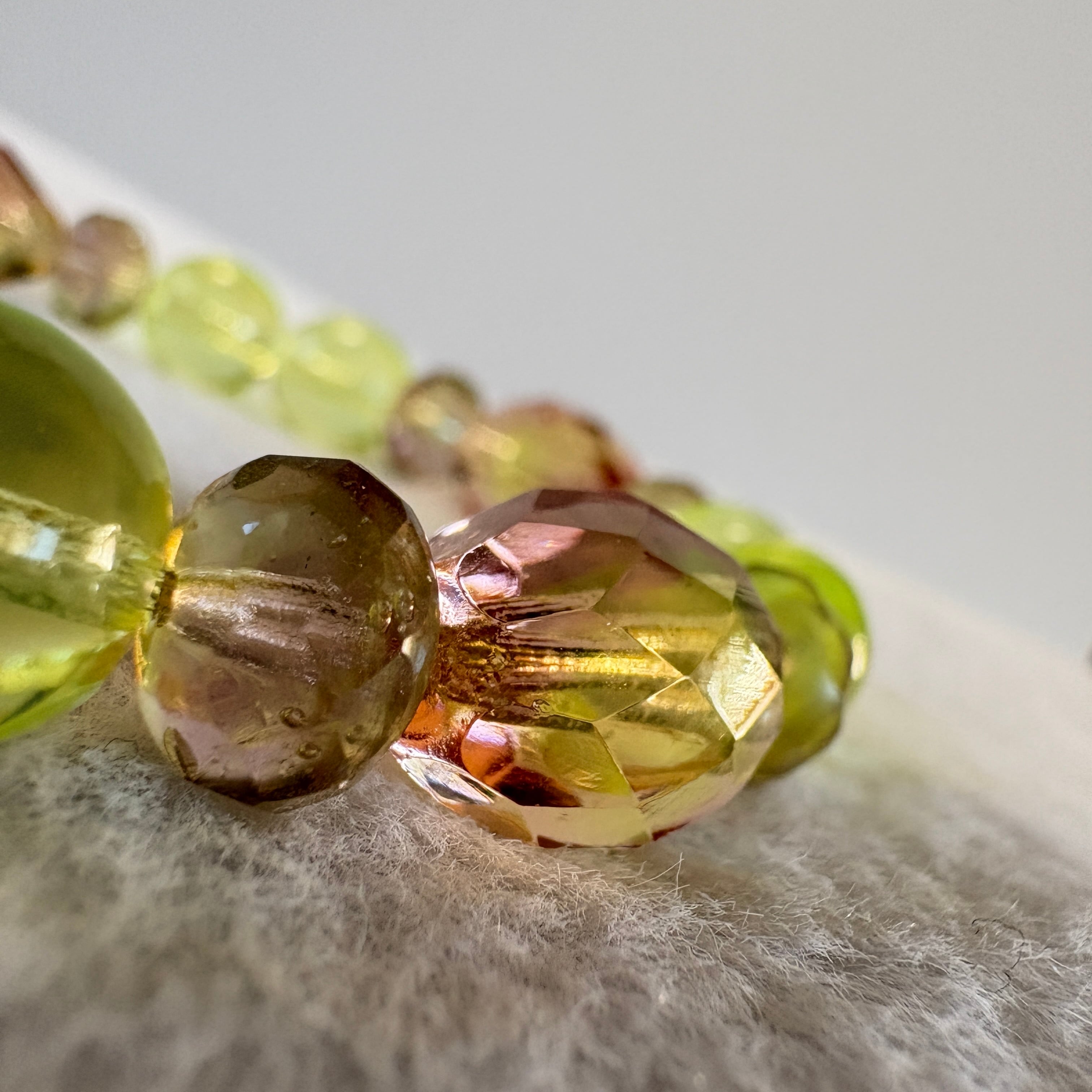 チェコ産ウランガラスを中心に構成した、一点もののブレスレットです。