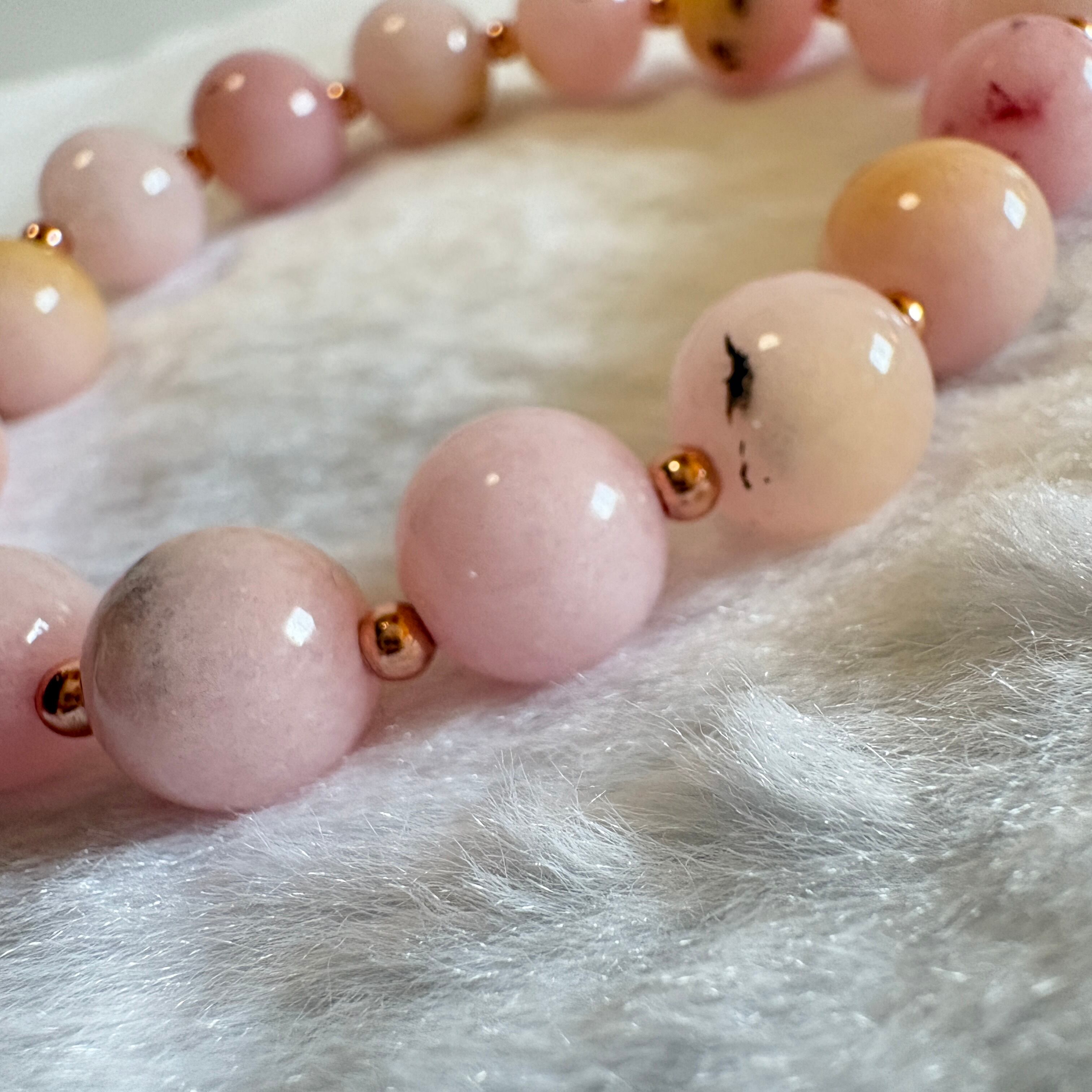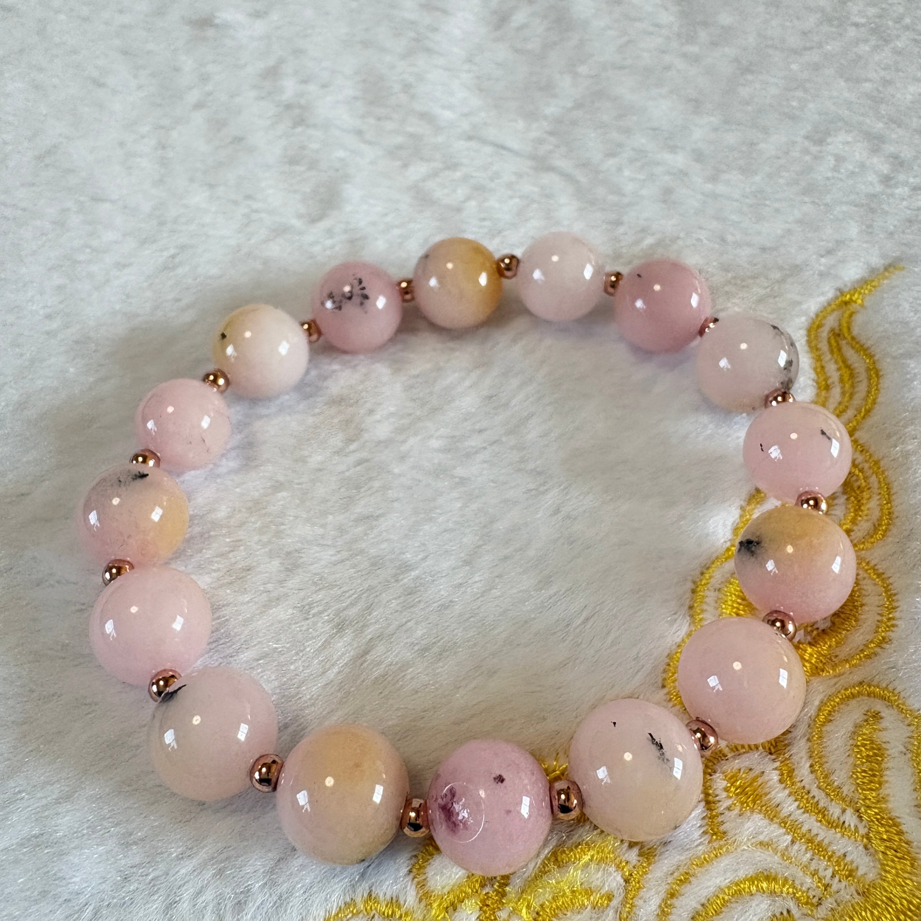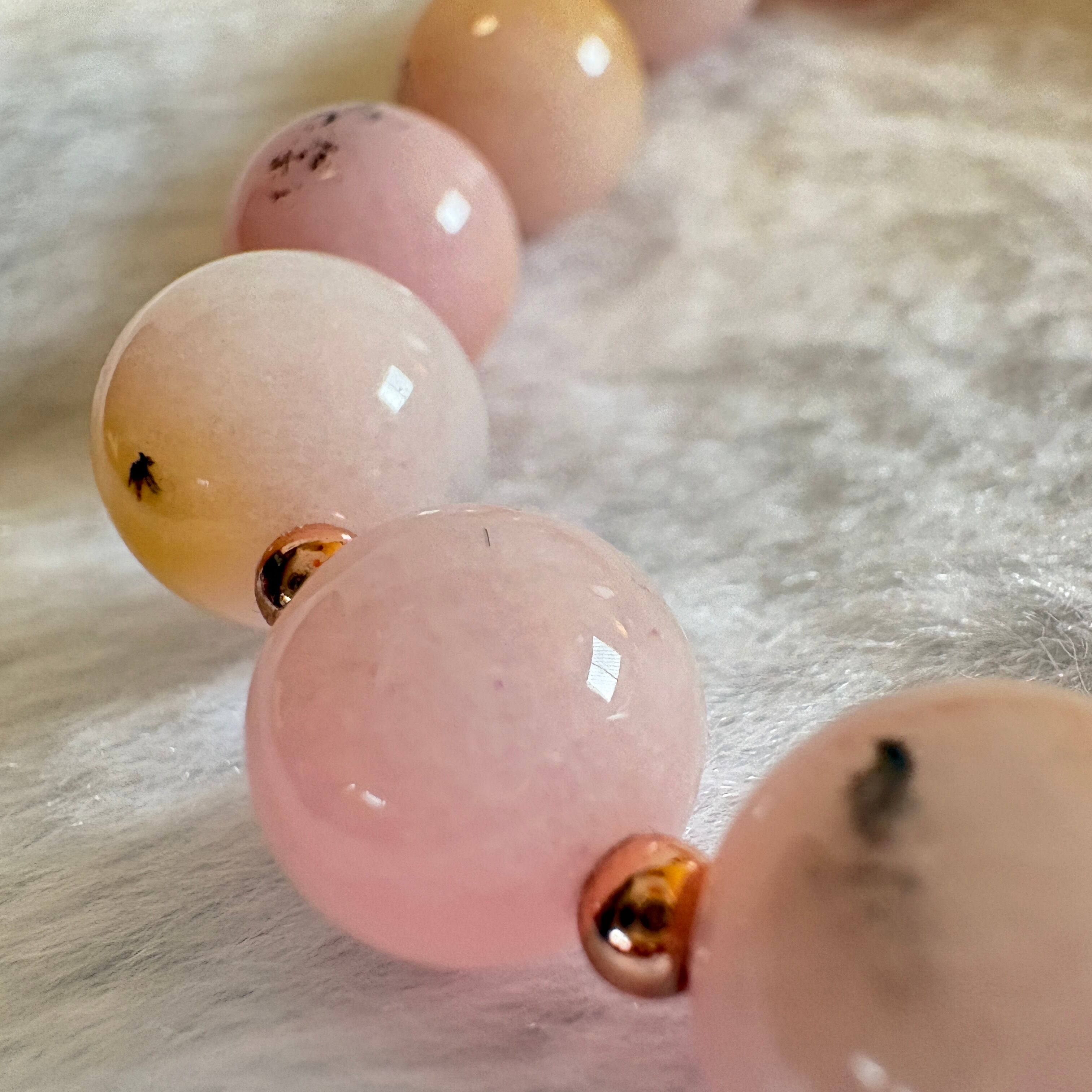 オーストラリア産デンドリティック・ピンクオパールを使用した10mmの天然石ブレスレット。