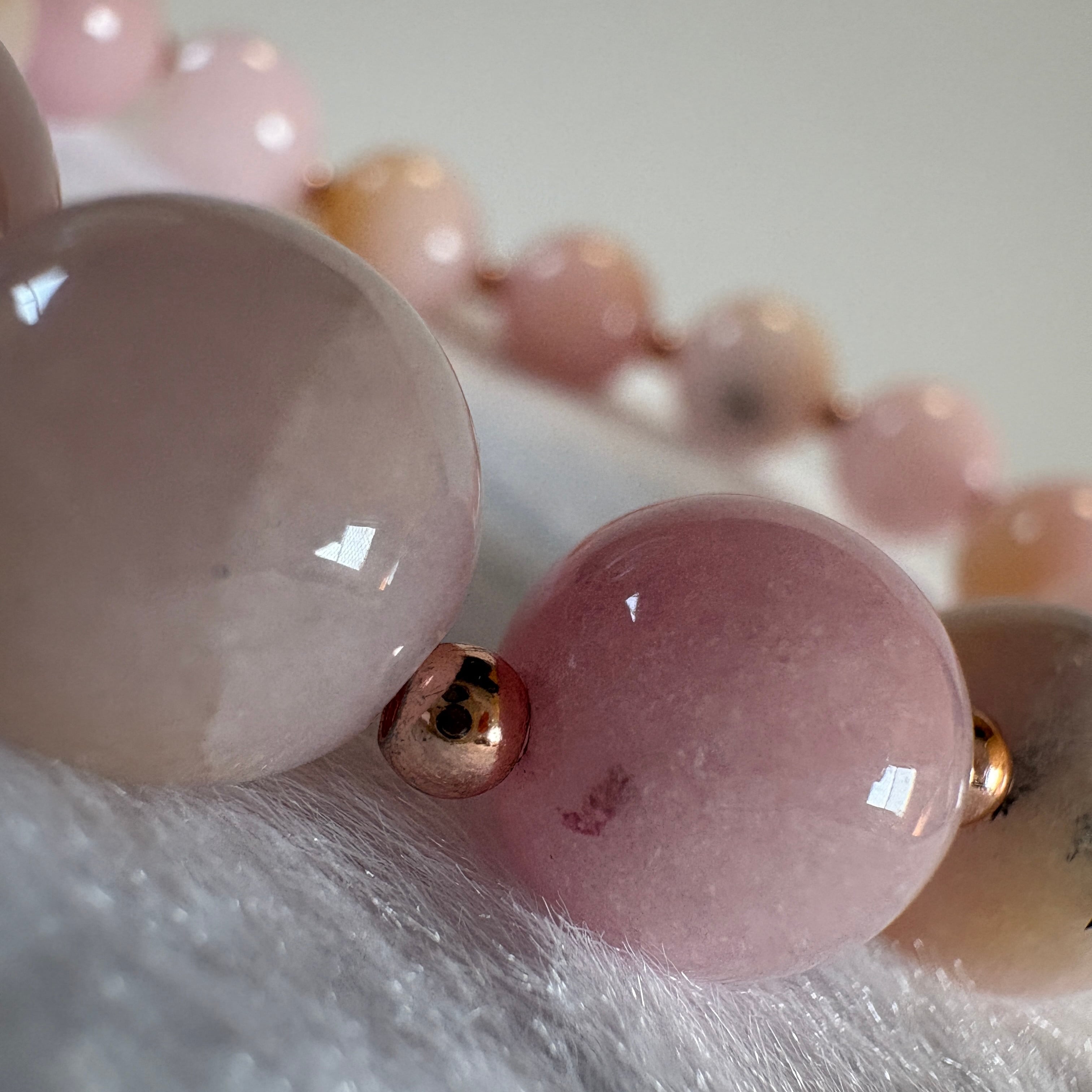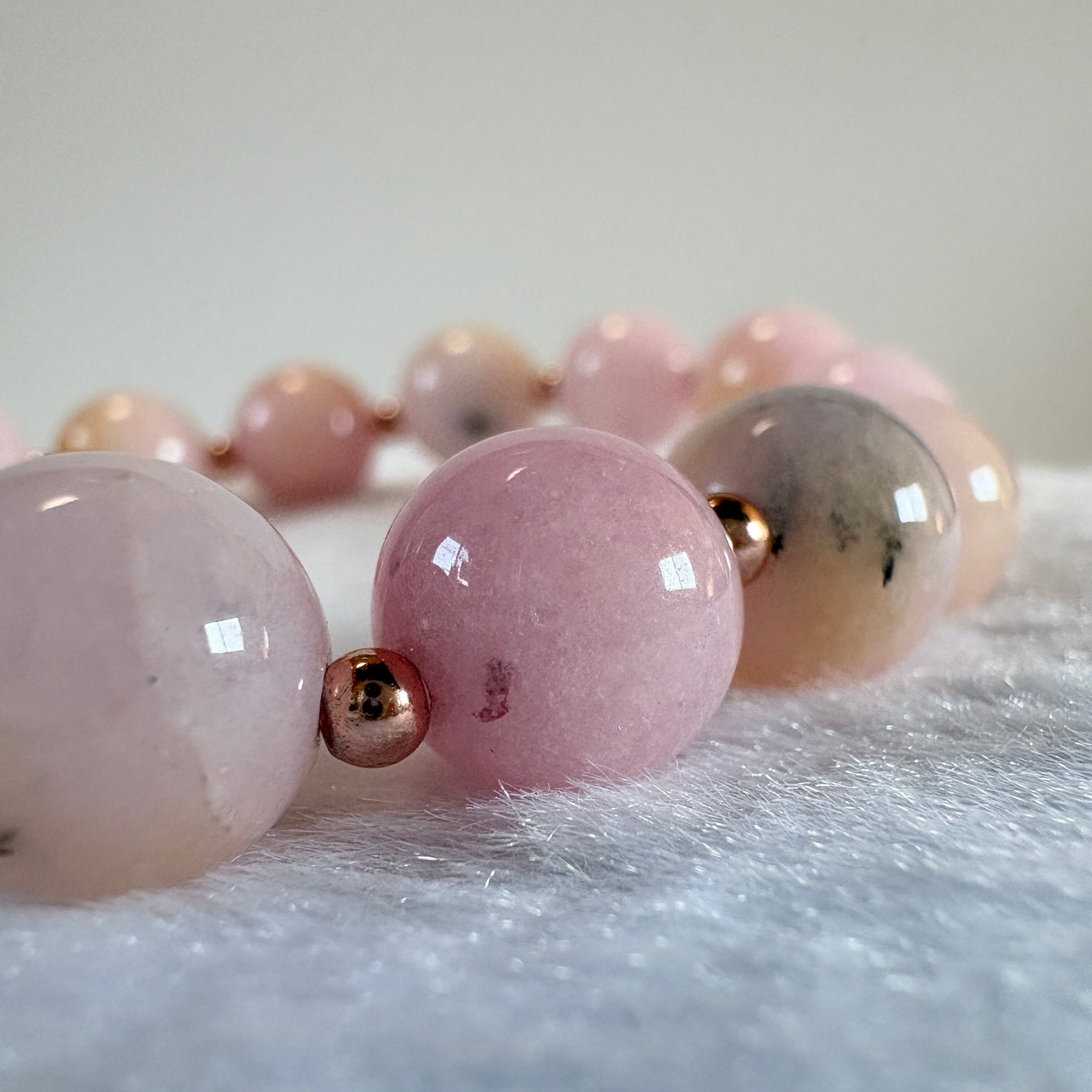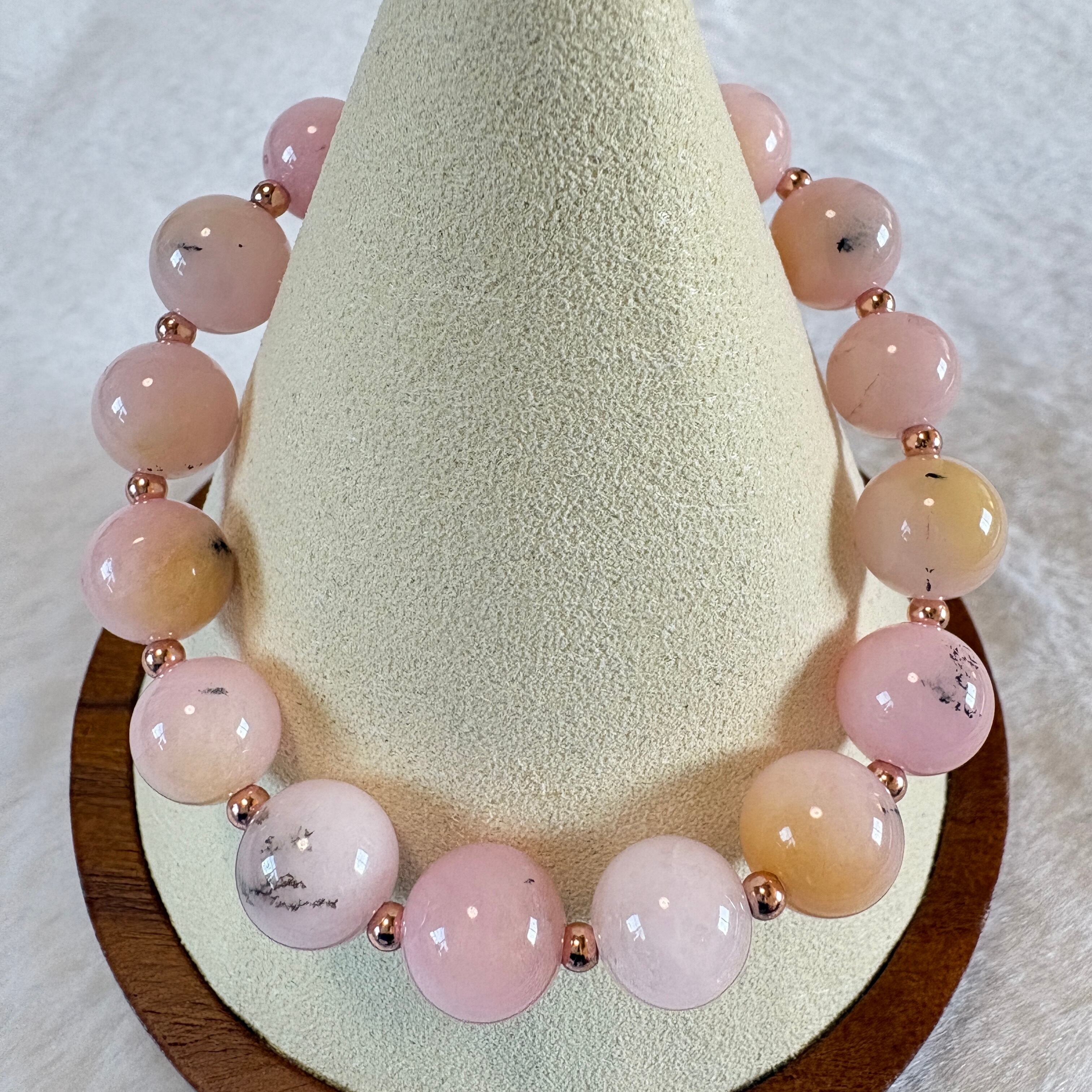 オーストラリア産デンドリティック・ピンクオパールを使用した10mmの天然石ブレスレット。