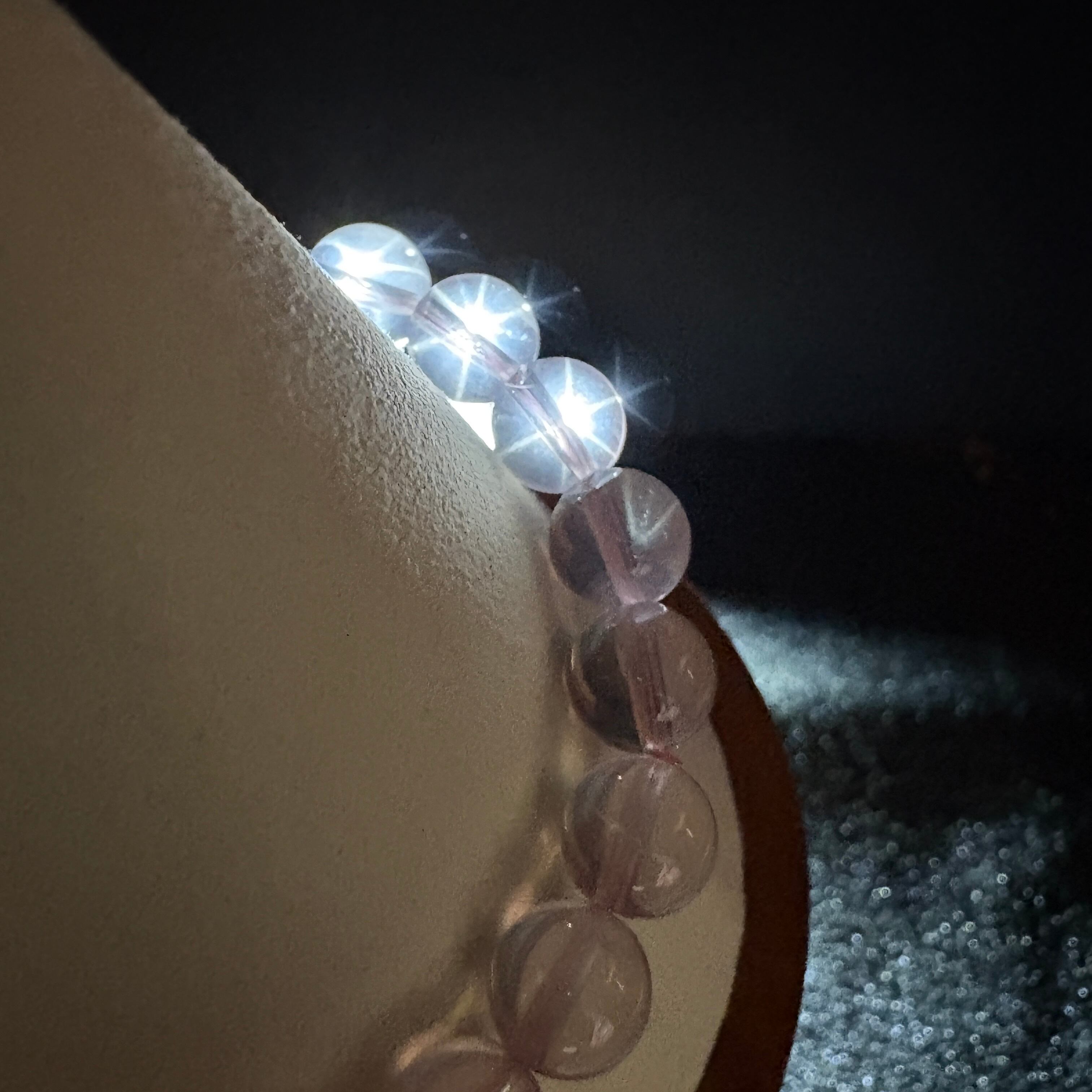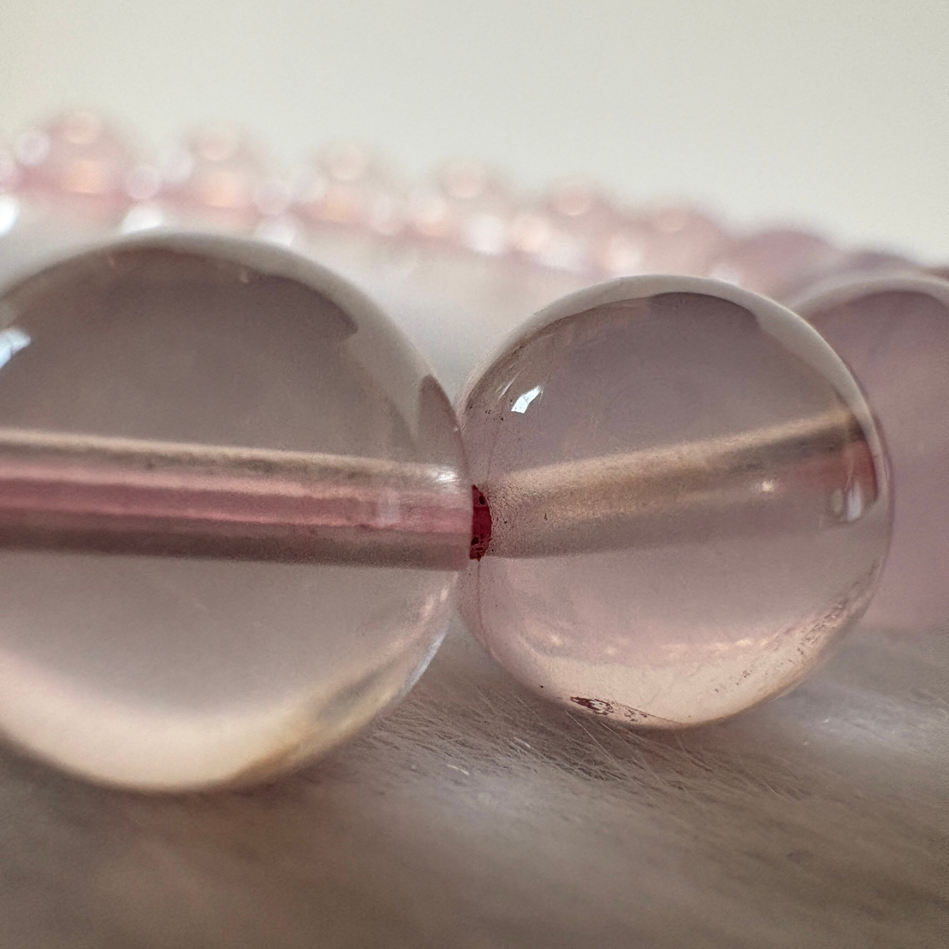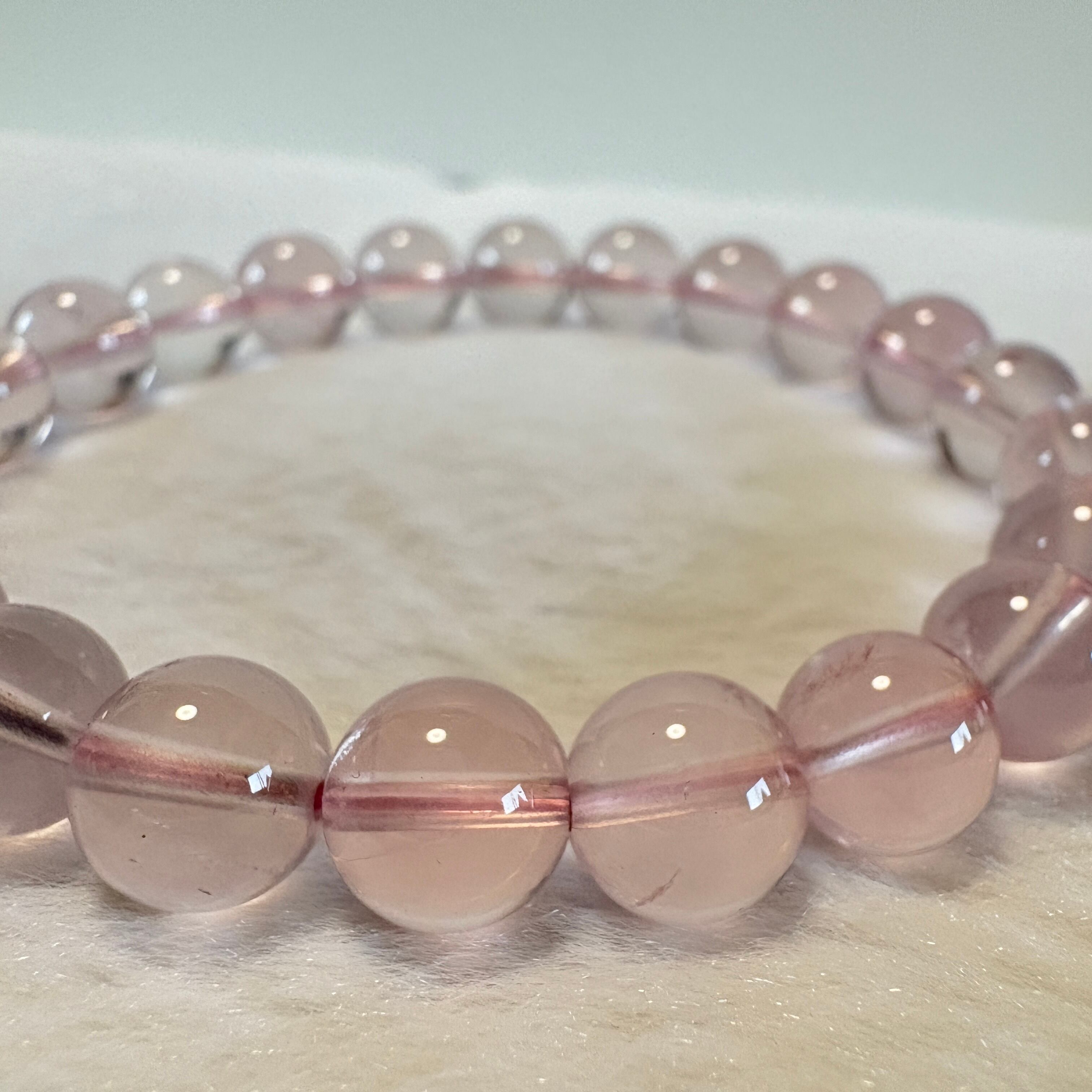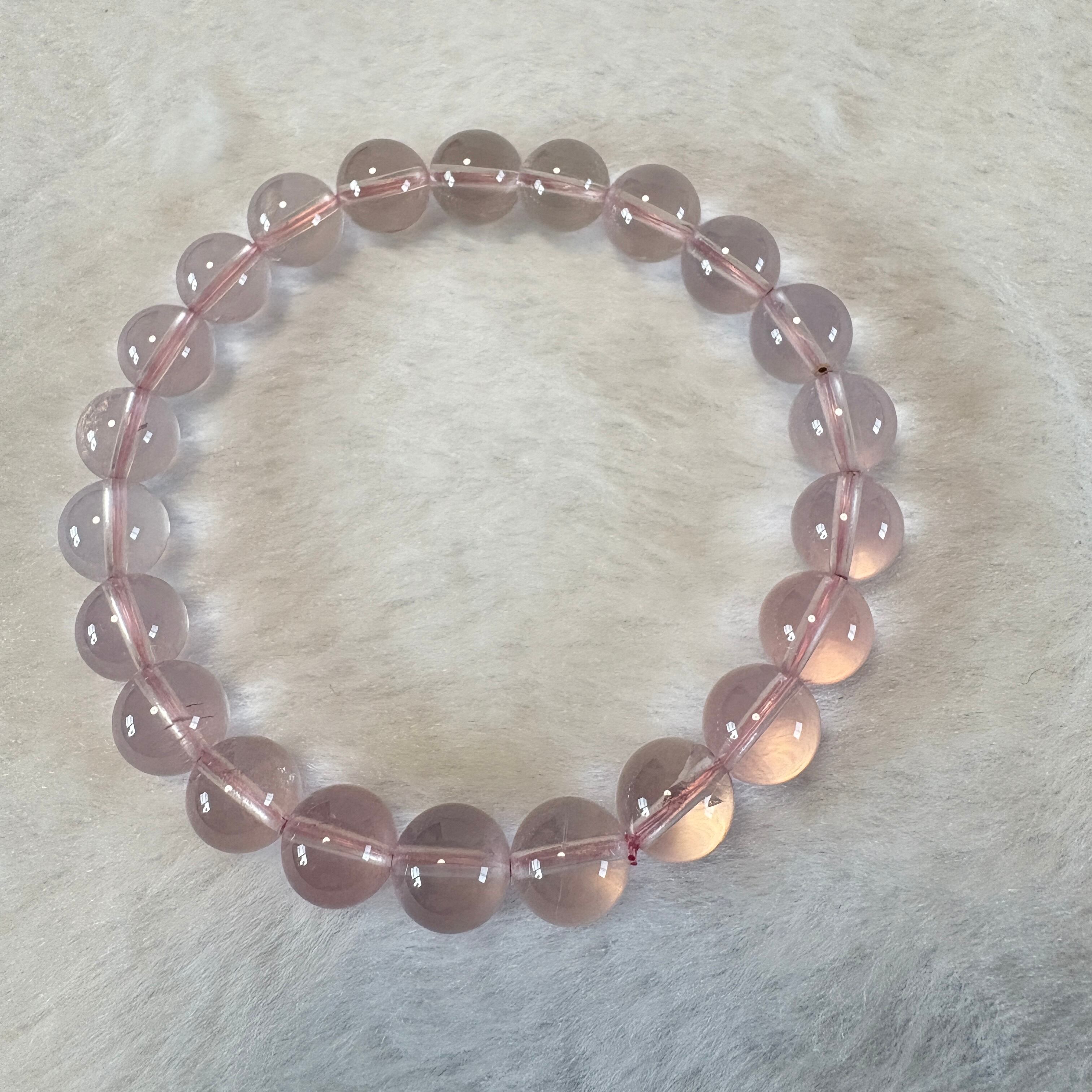 淡いピンクが美しい高品質スターローズクォーツ9.5mmのシンプルブレスレット。