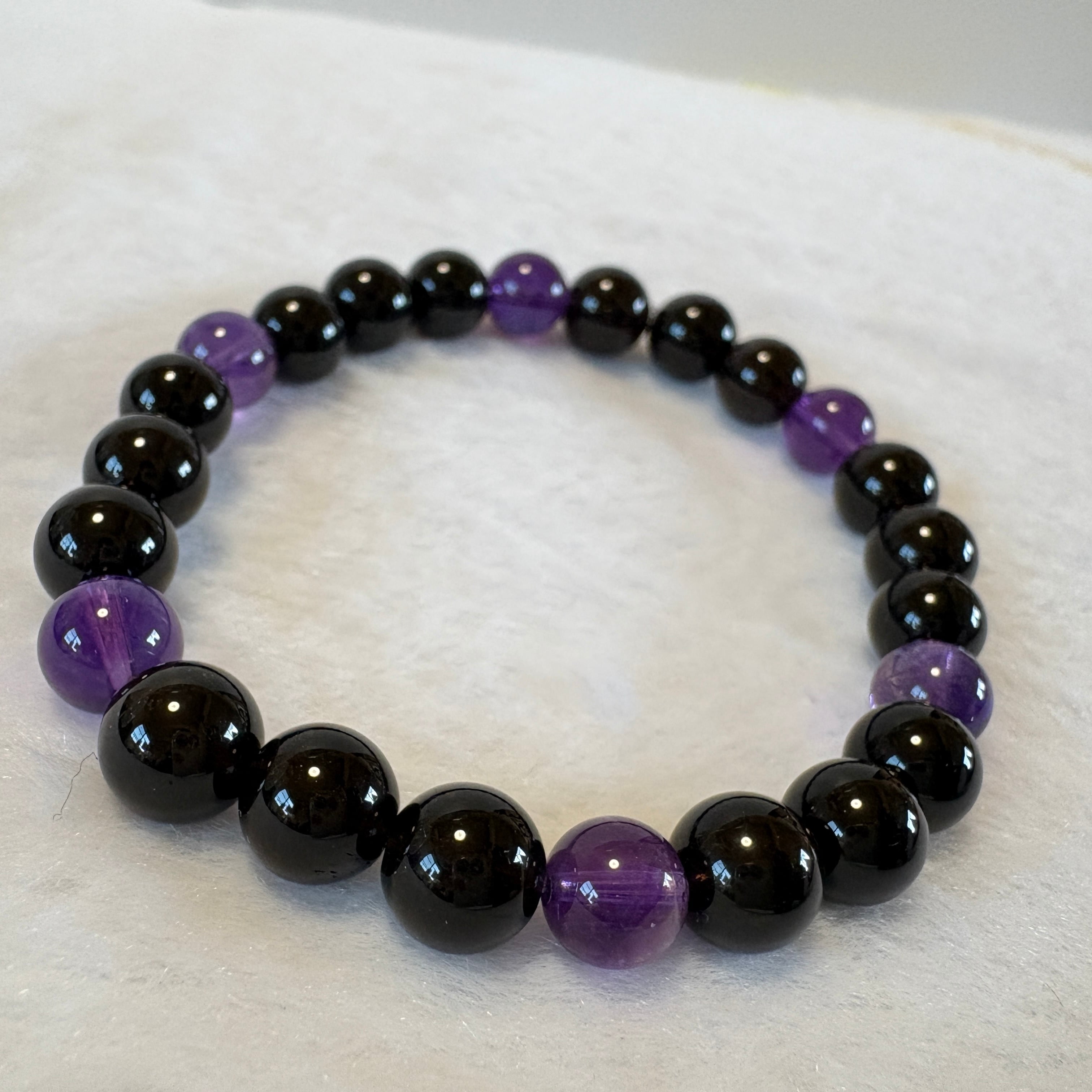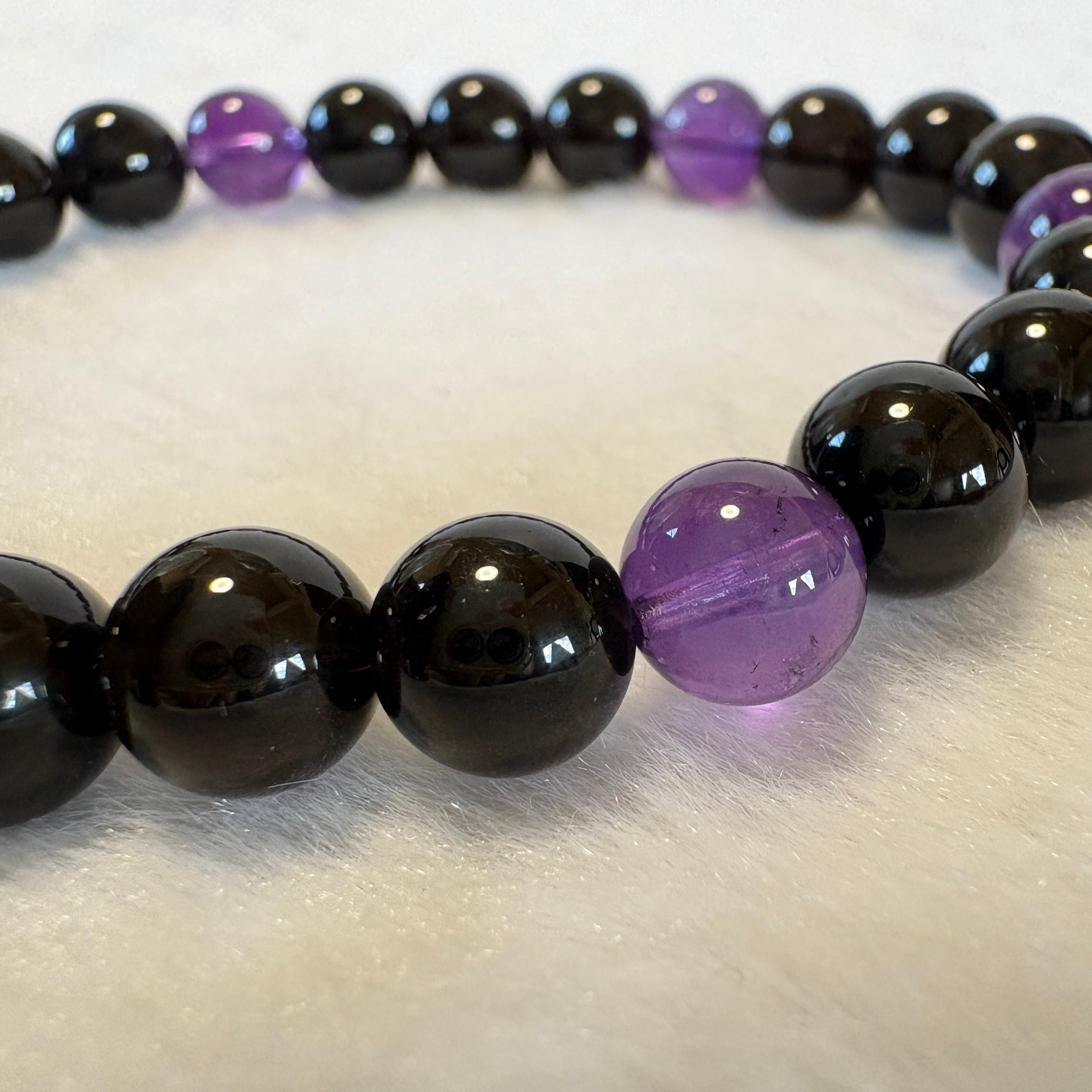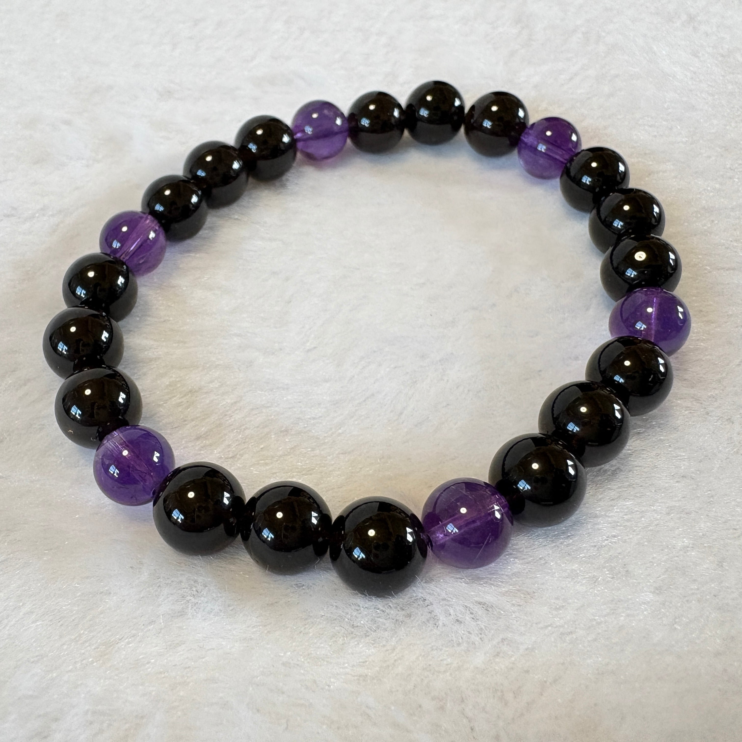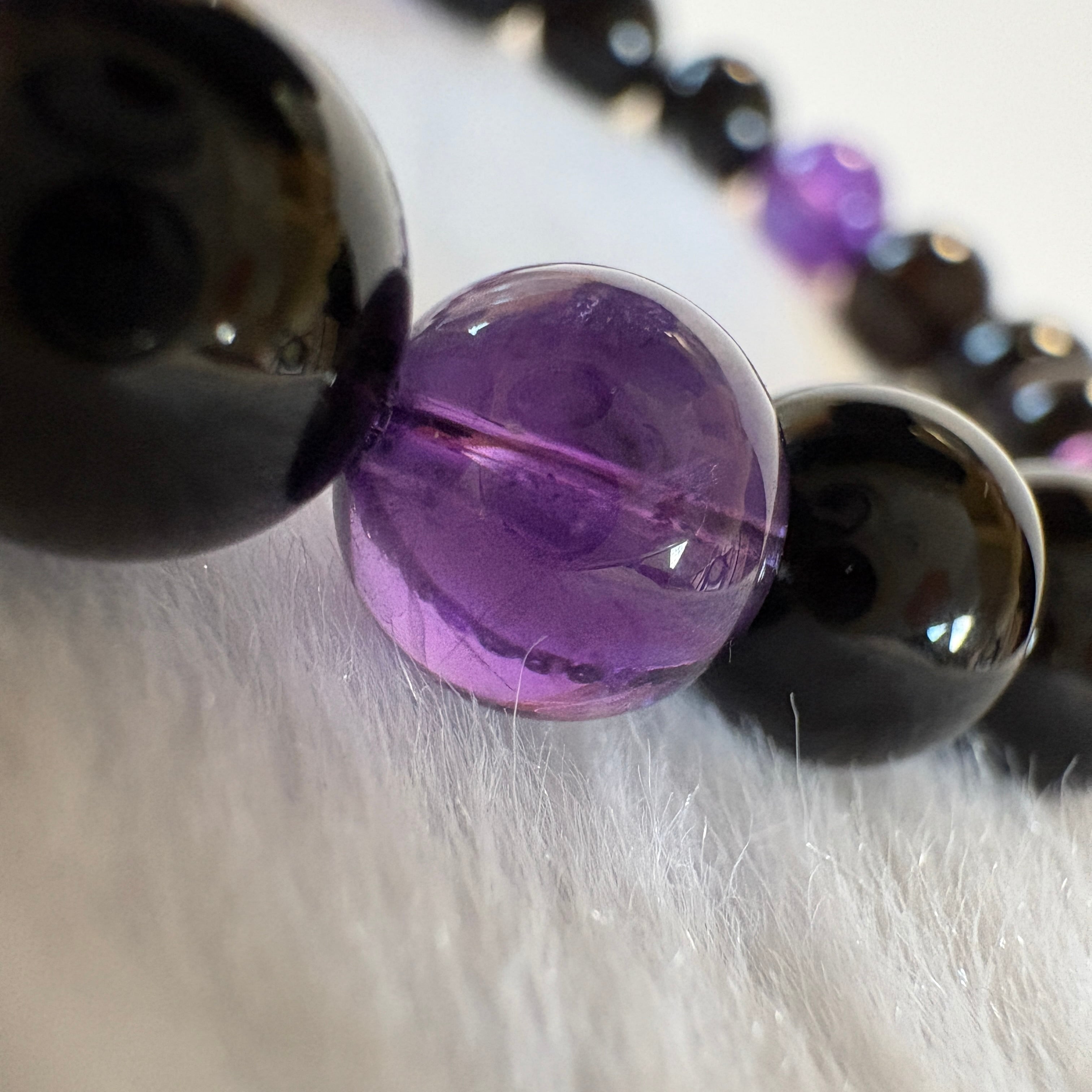 モリオン チベット産×アメジスト ウルグアイ産7.5mm|守りと癒しの天然石ブレスレット