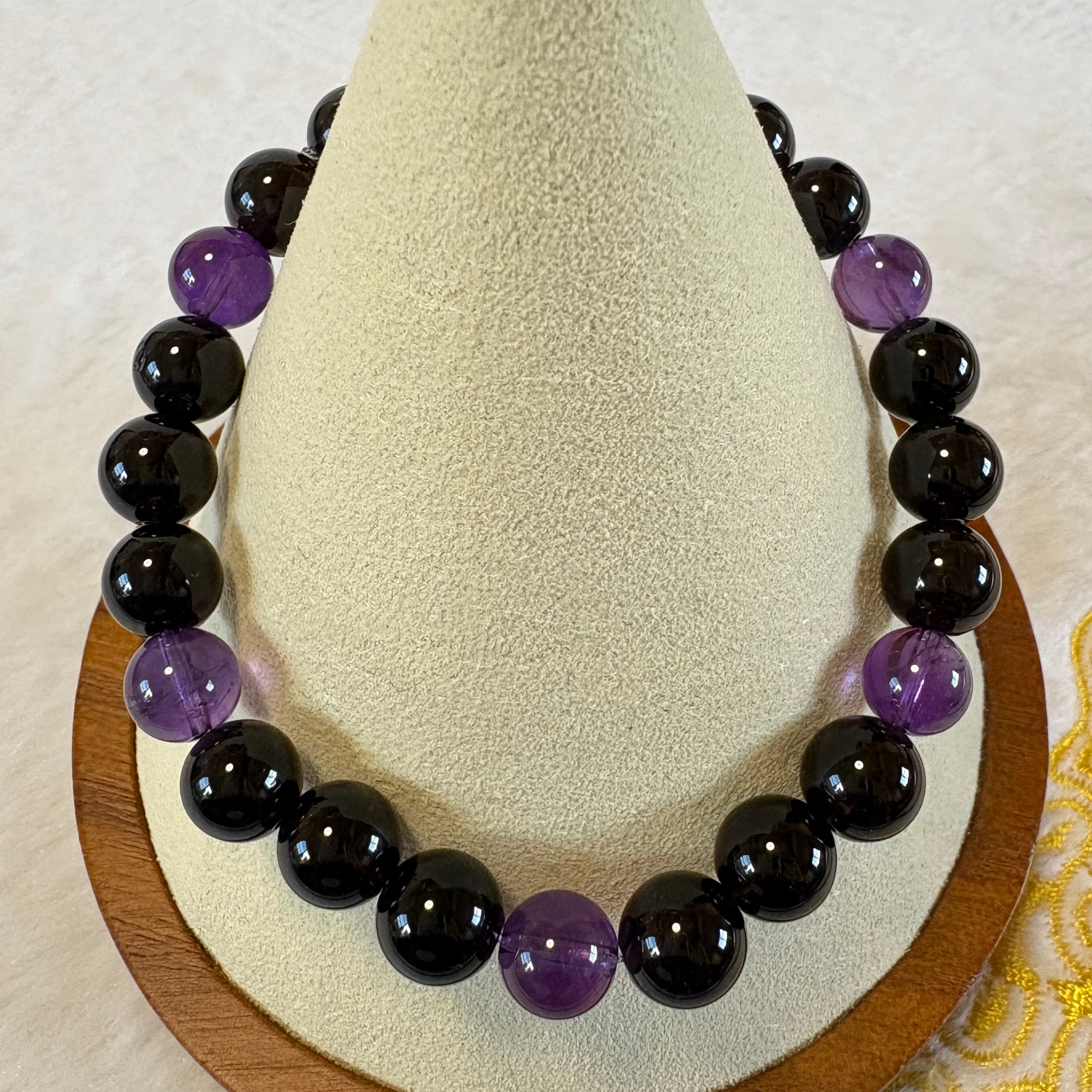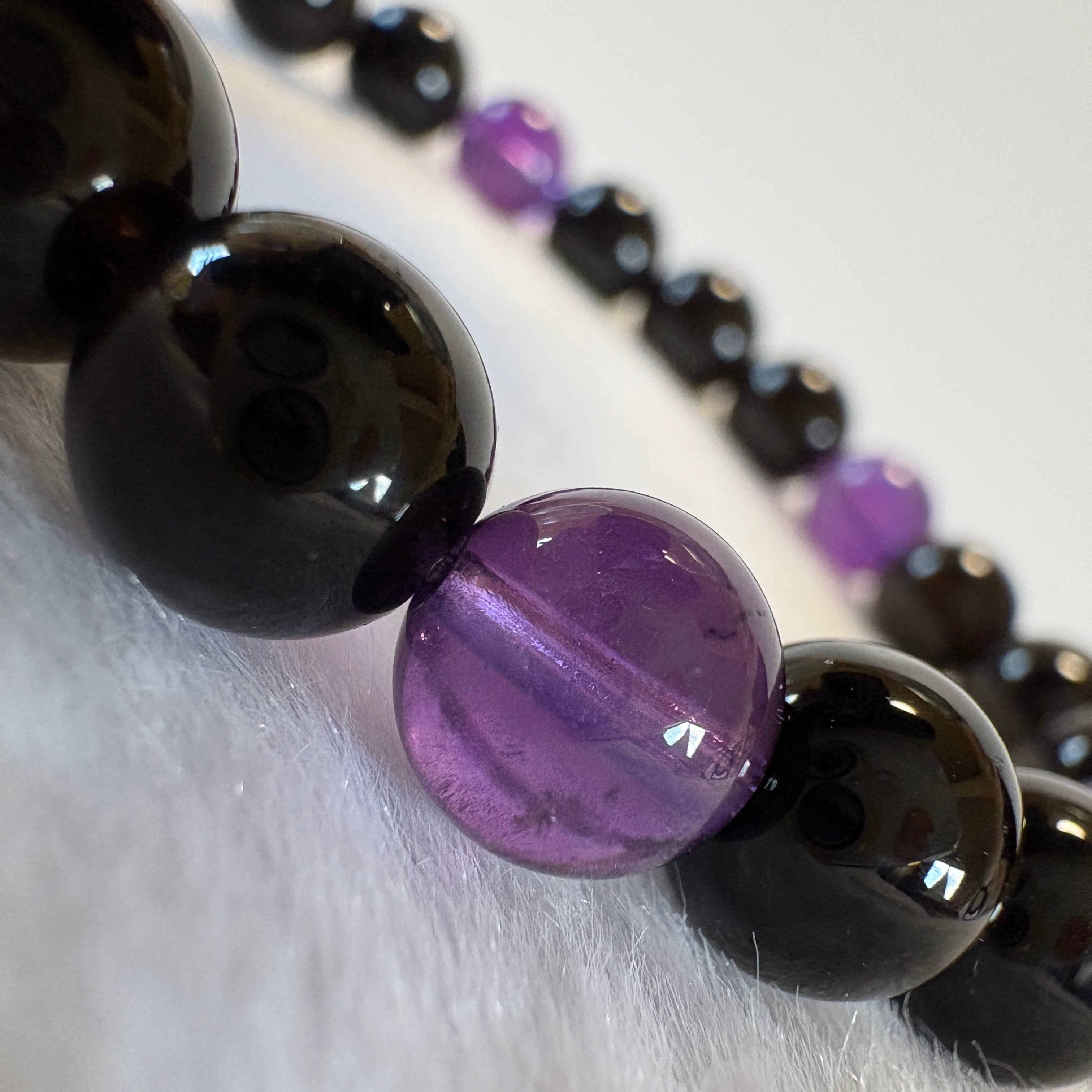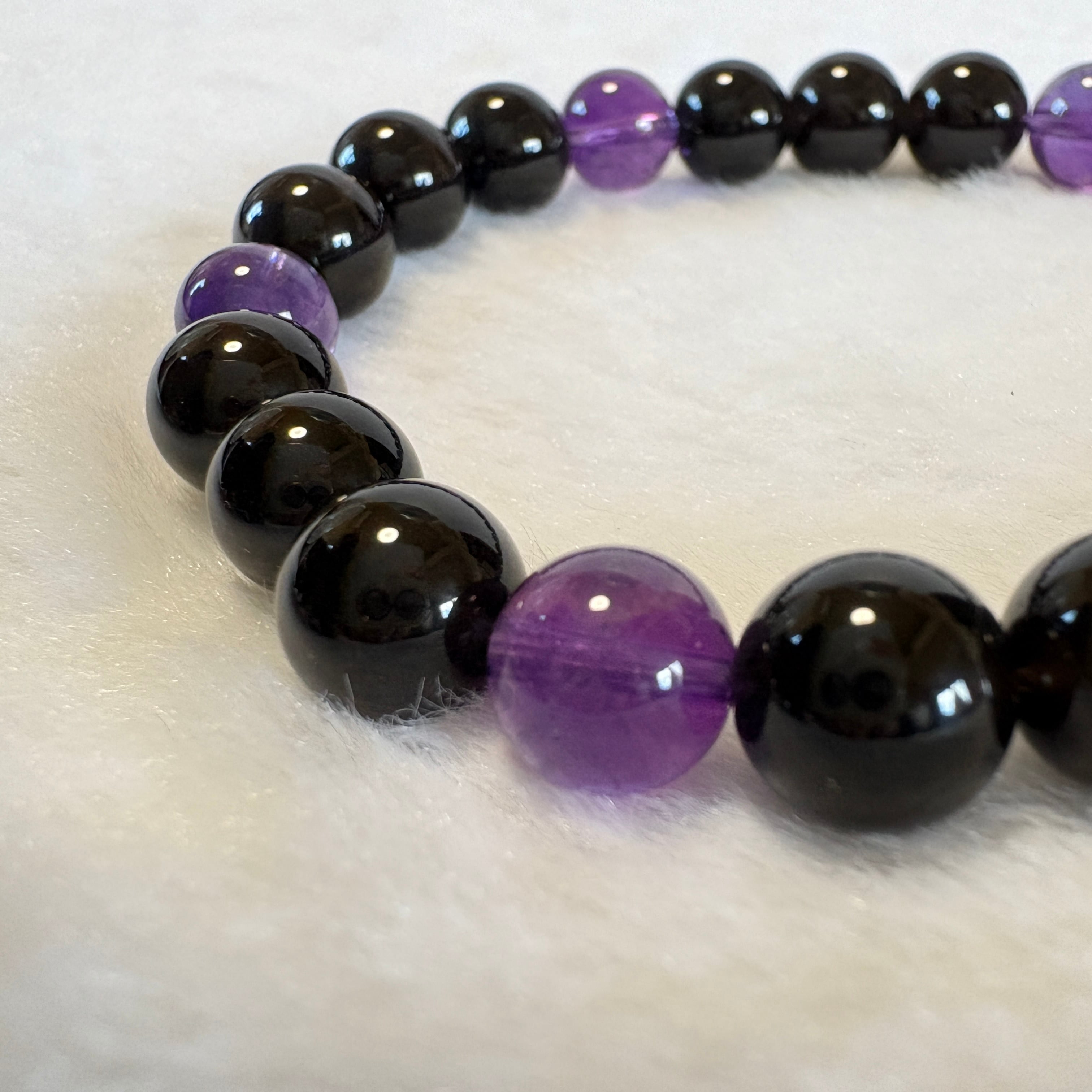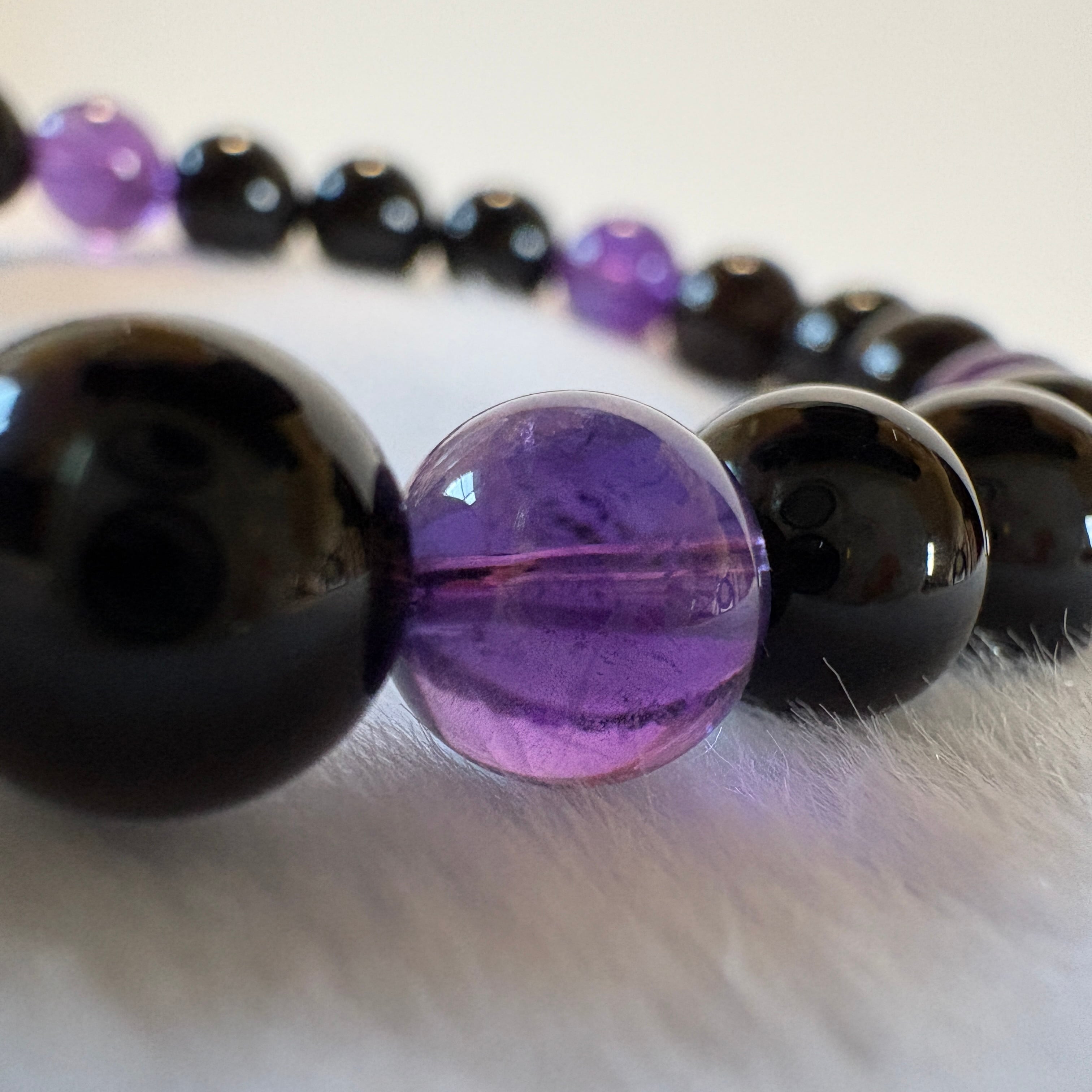 モリオン チベット産×アメジスト ウルグアイ産7.5mm|守りと癒しの天然石ブレスレット