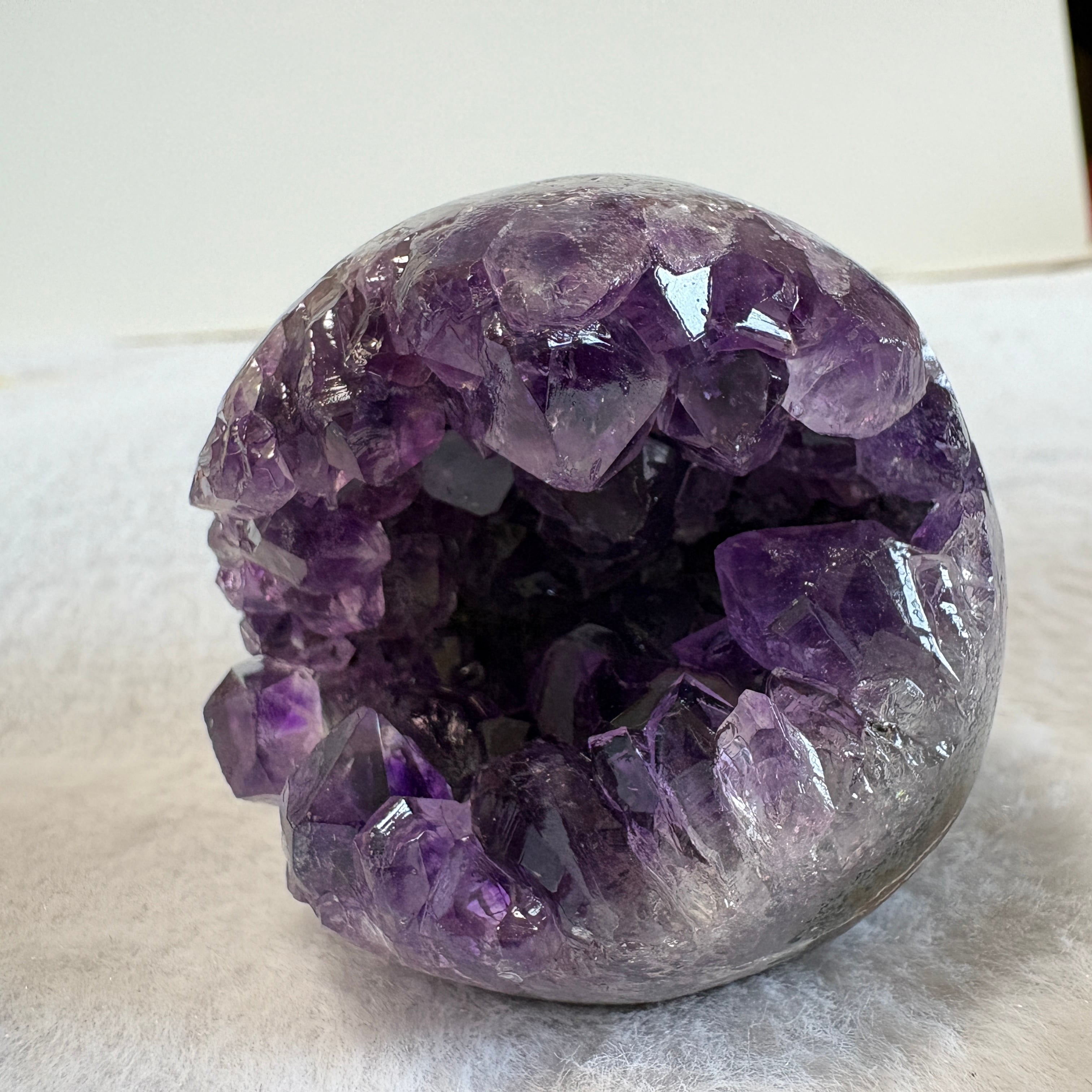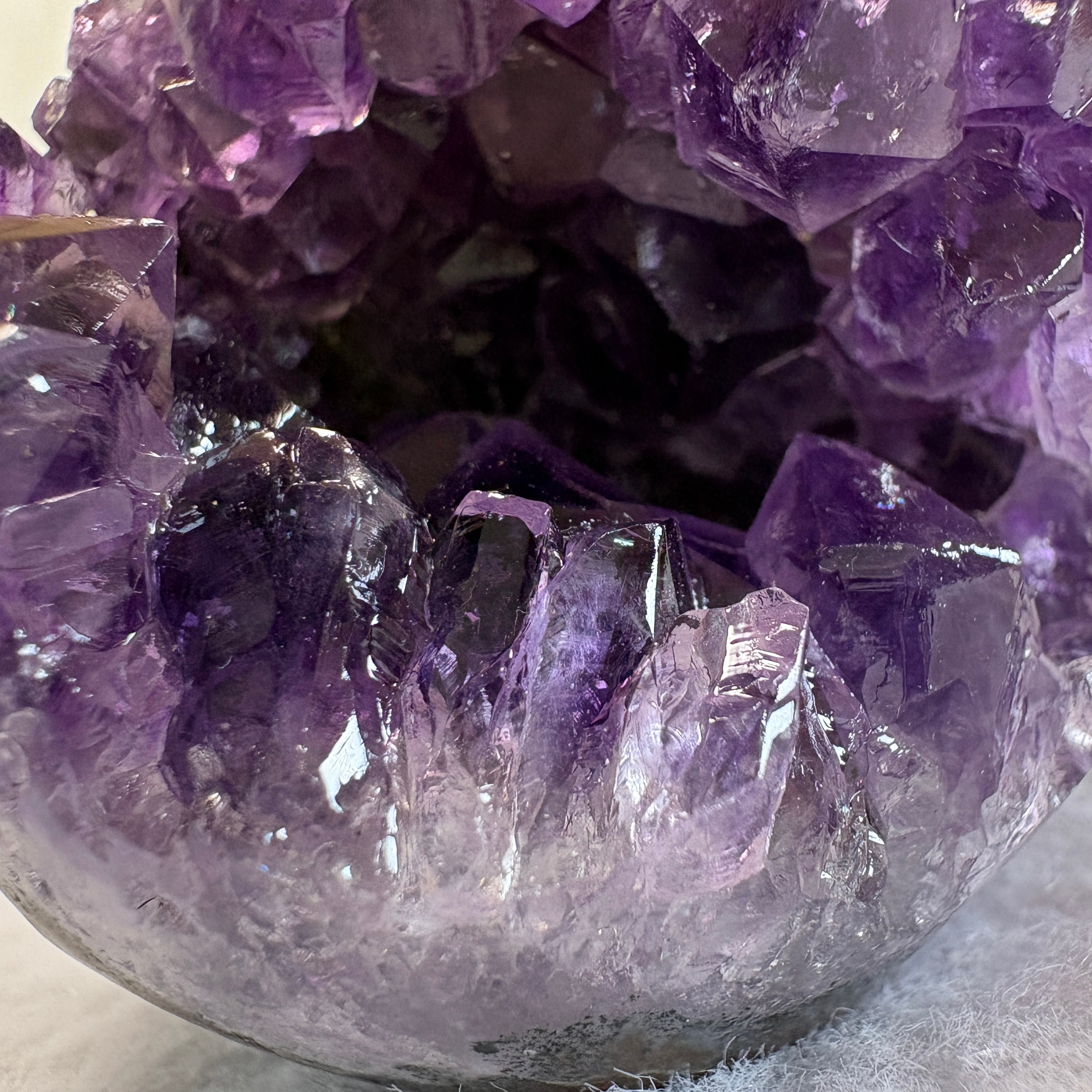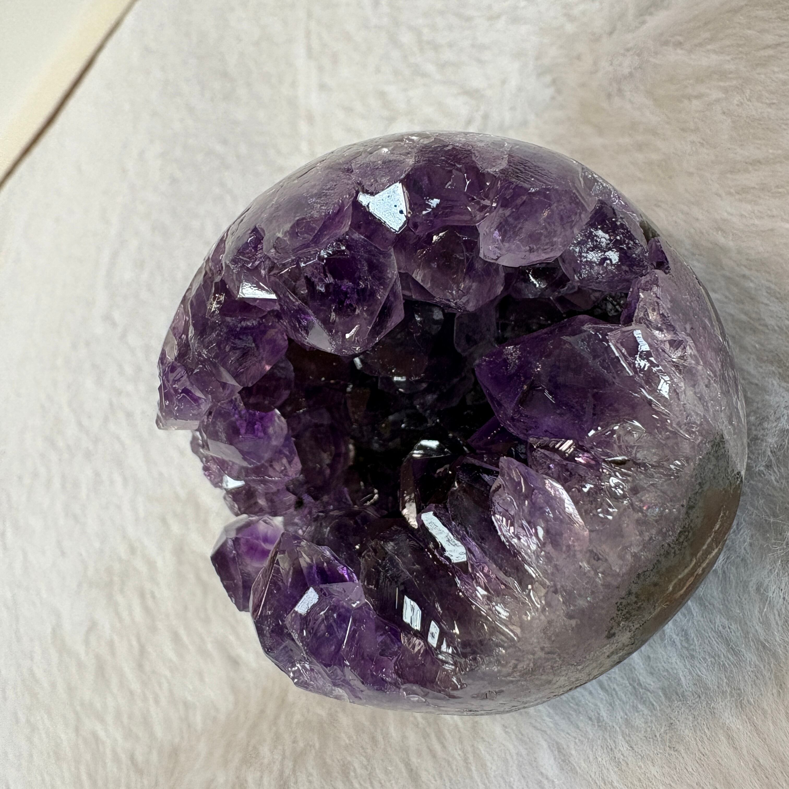 深く落ち着いた紫が美しいウルグアイ産アメジスト笑口原石。自然が生んだ丸みある形と結晶美が魅力。インテリアとしても楽しめる、静かに空間を整える天然アメジストです。