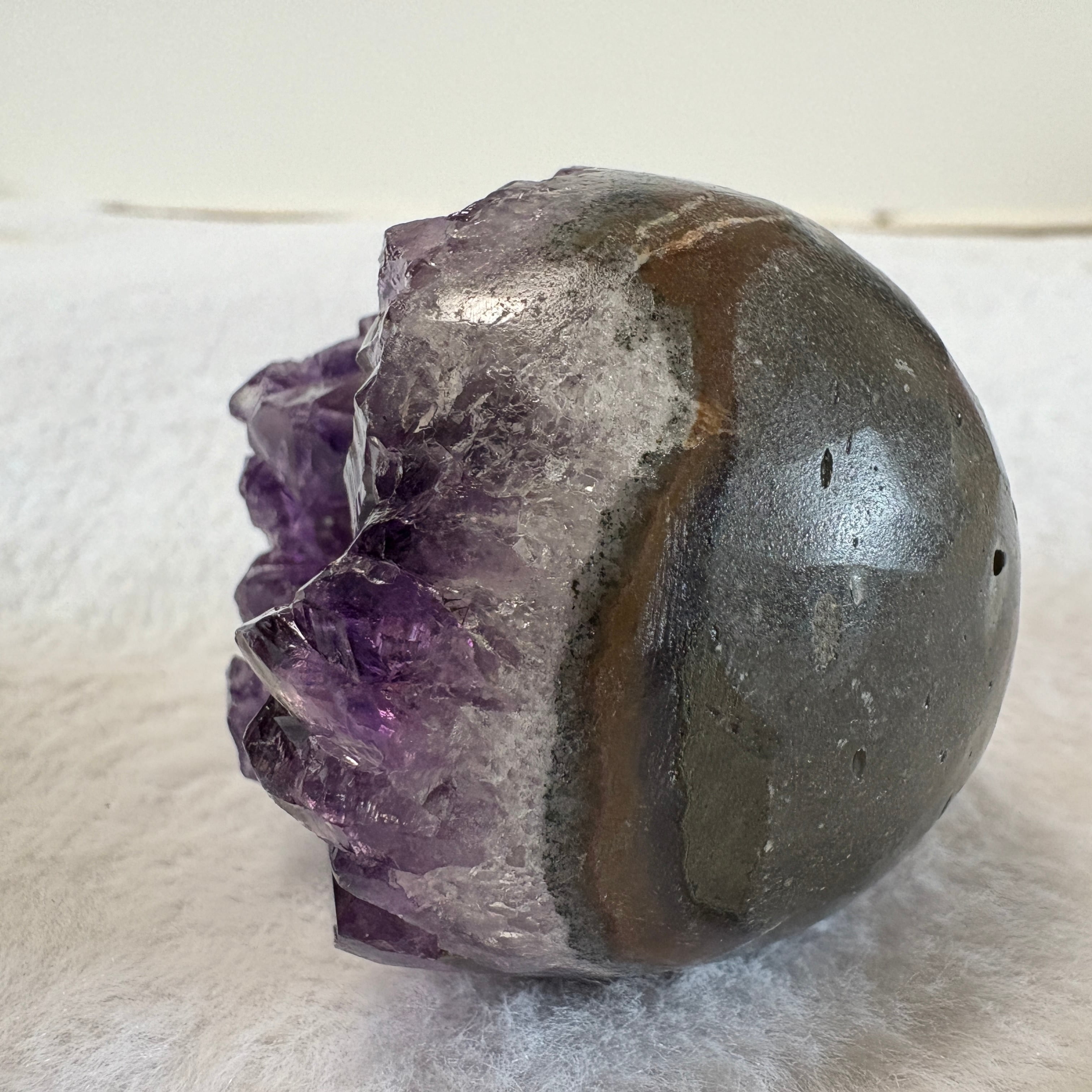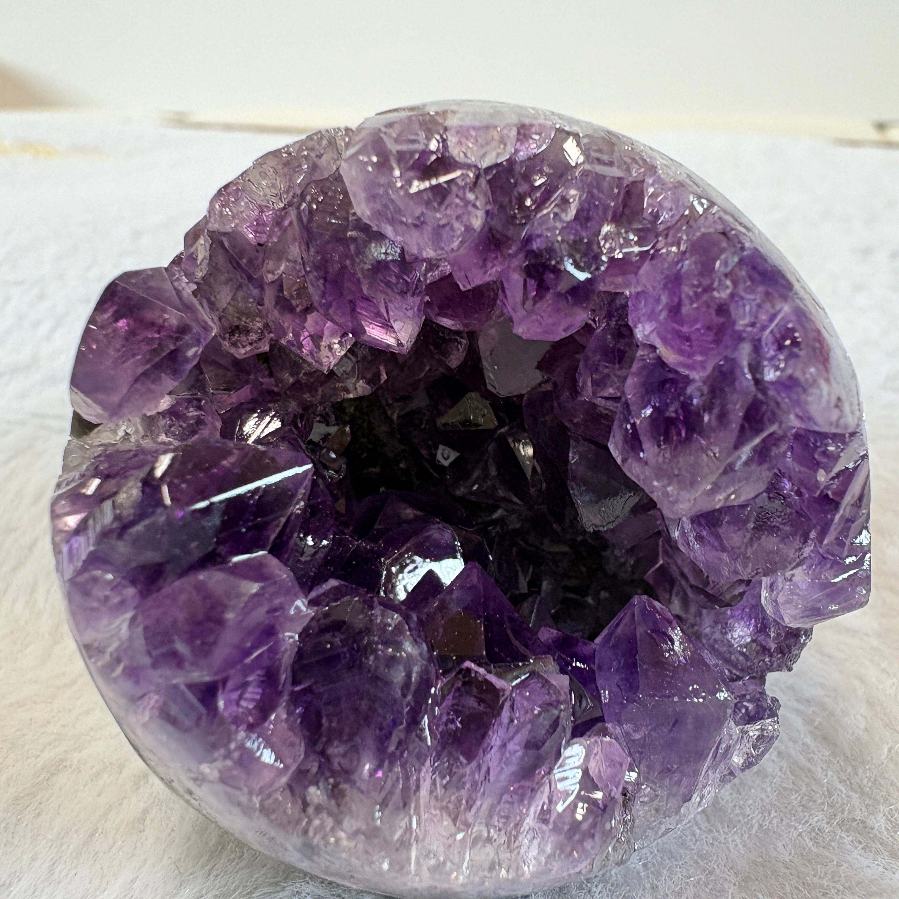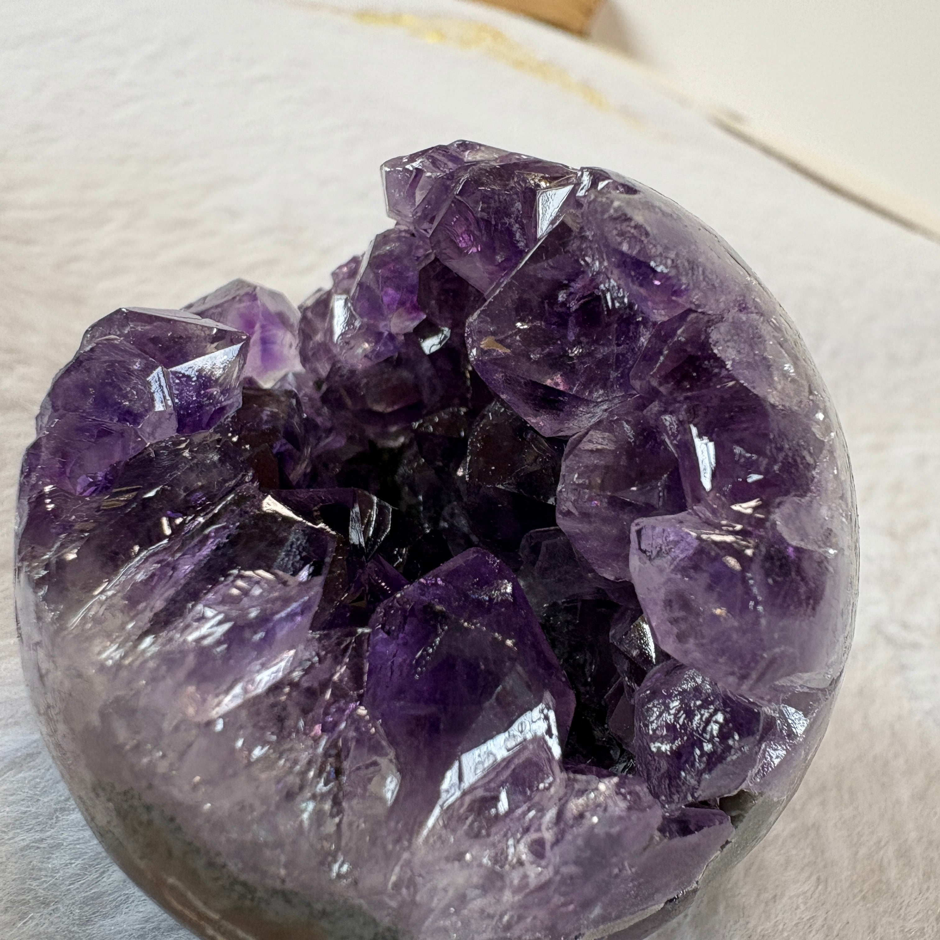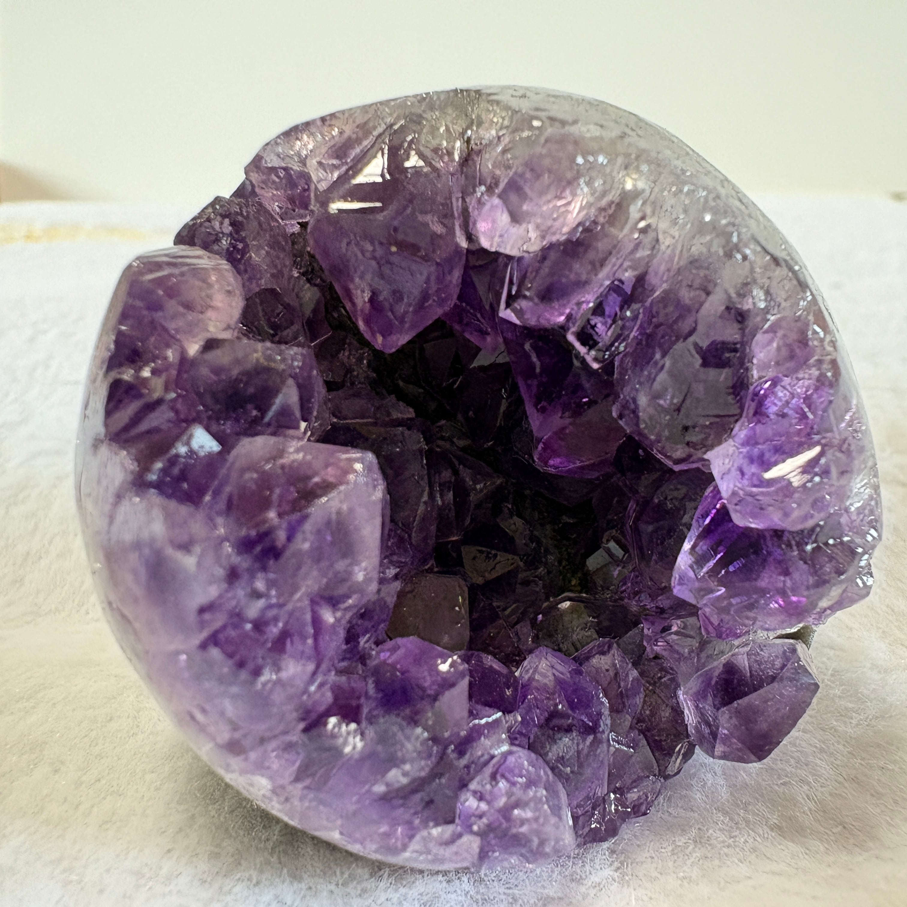 深く落ち着いた紫が美しいウルグアイ産アメジスト笑口原石。自然が生んだ丸みある形と結晶美が魅力。インテリアとしても楽しめる、静かに空間を整える天然アメジストです。