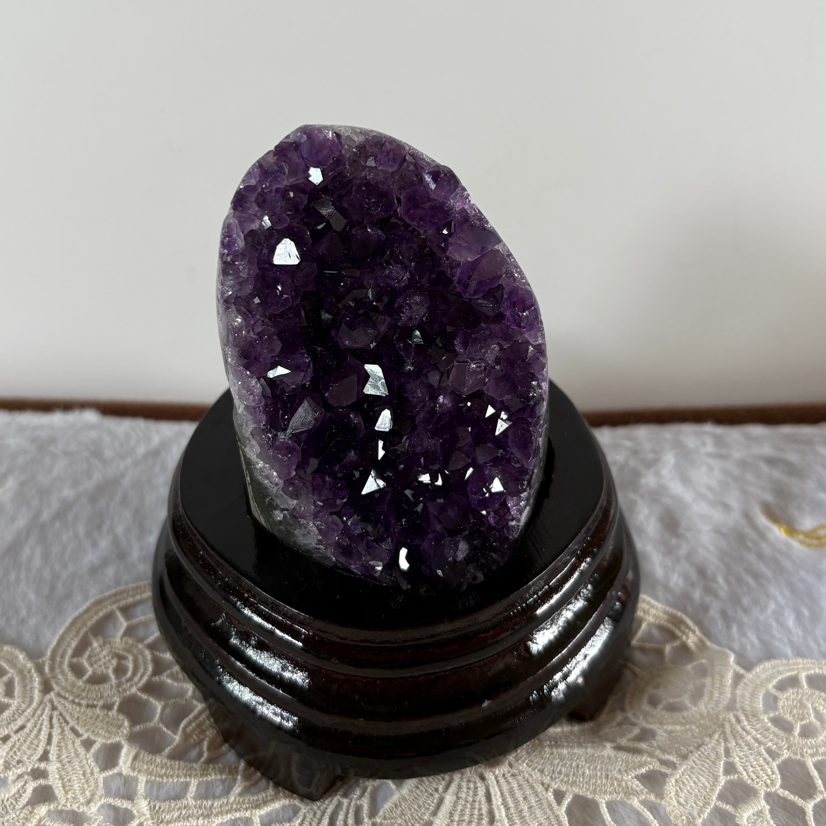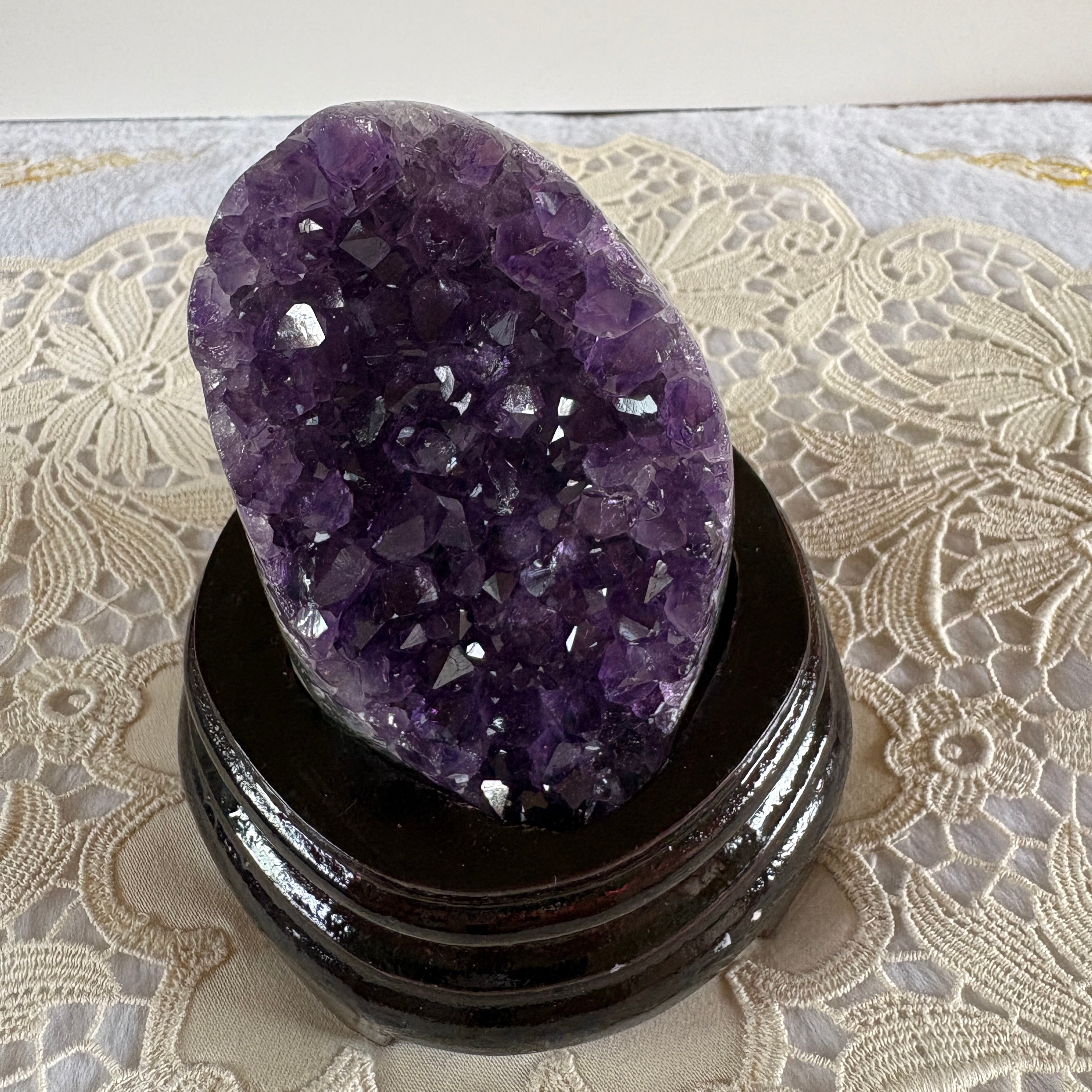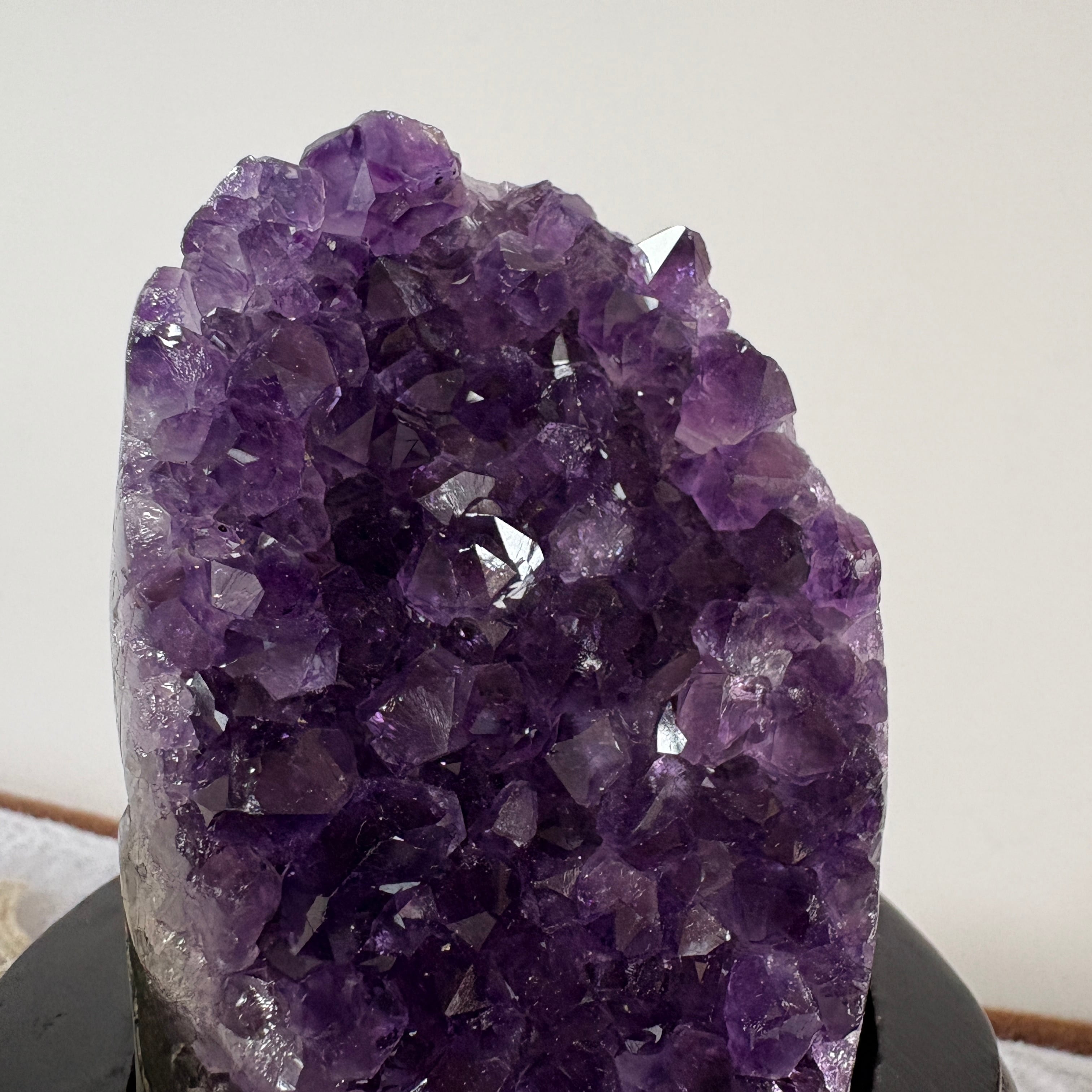 ウルグアイ産 アメジスト クラスター 台座付き|濃紫の輝き・高エネルギー原石|重さ約349g高さ約9cm