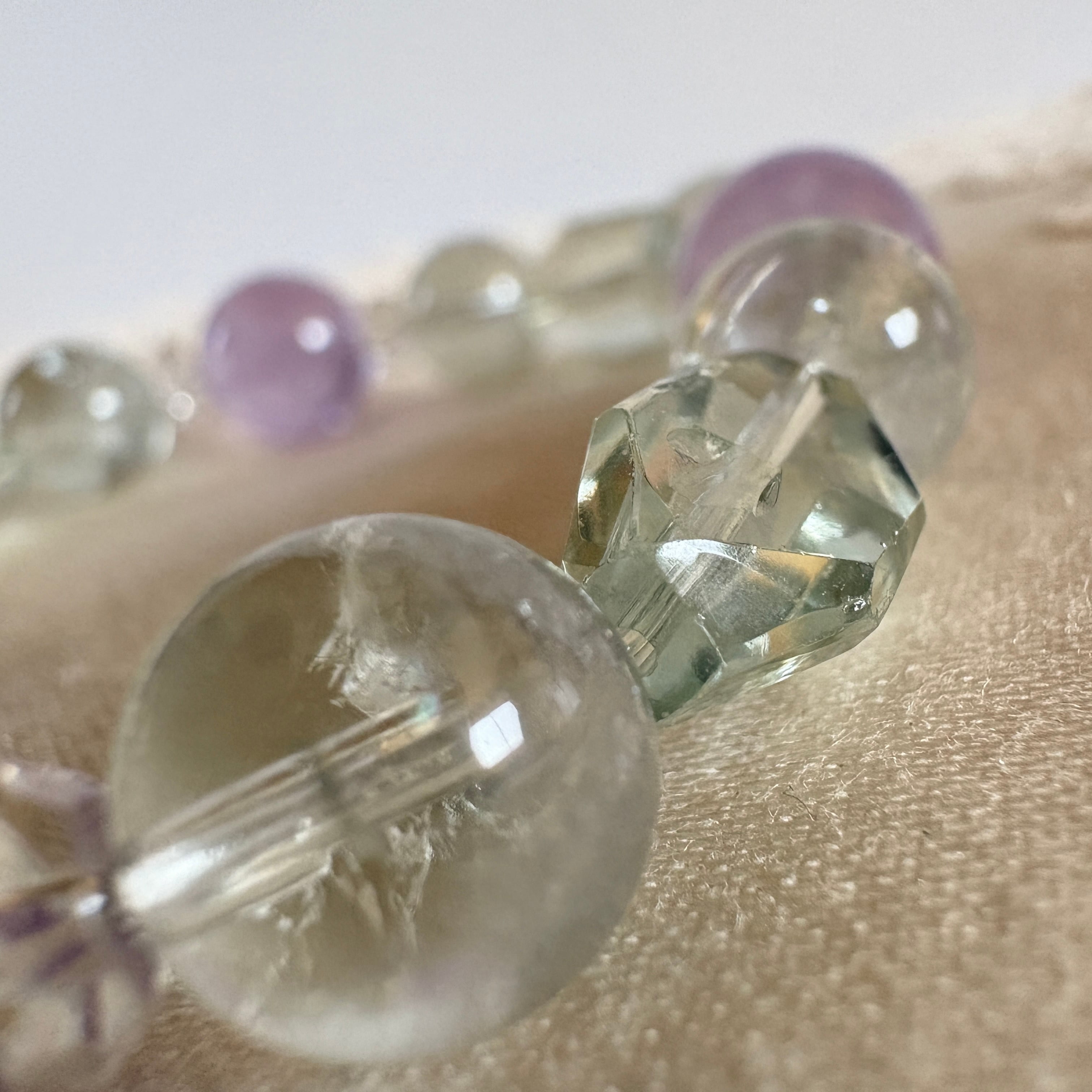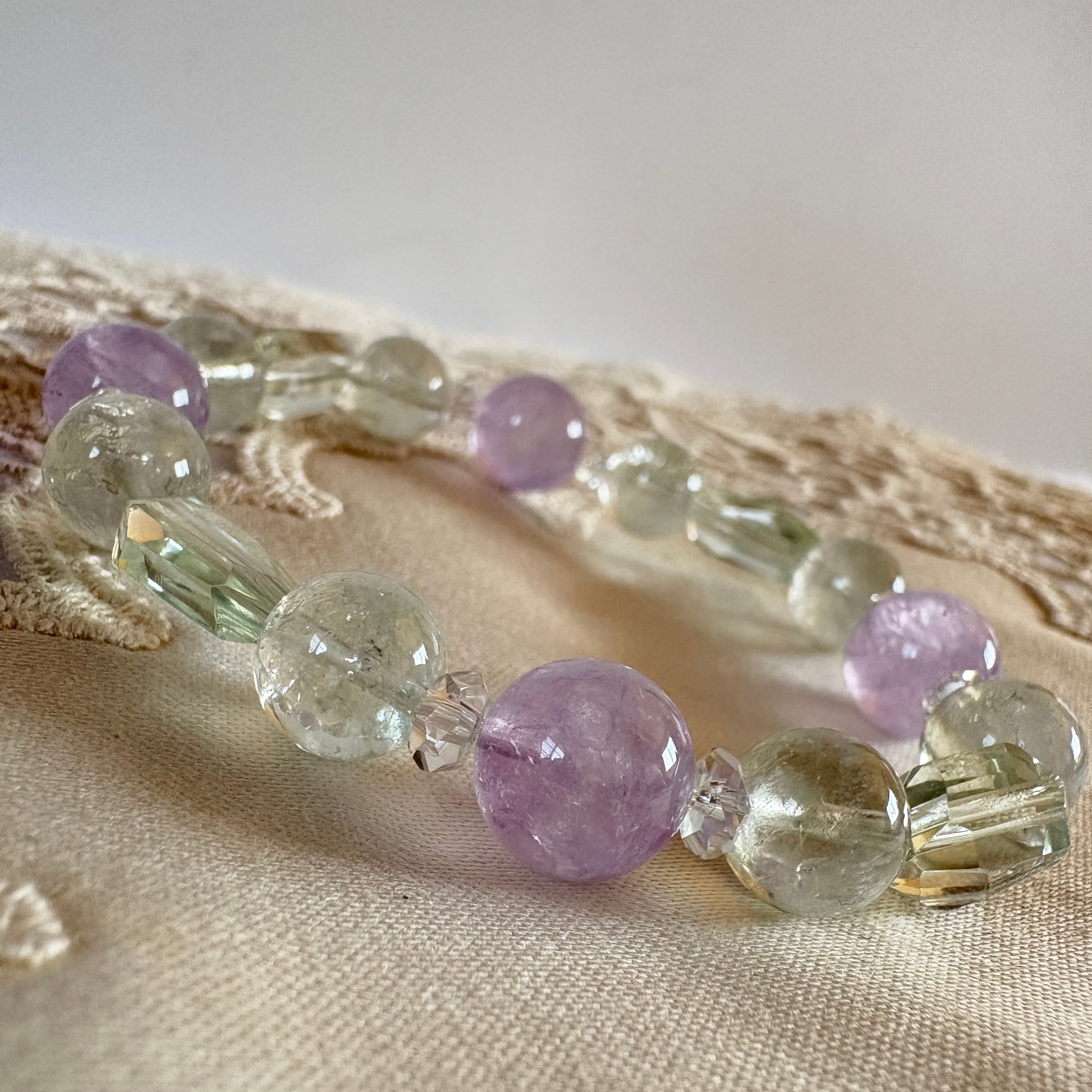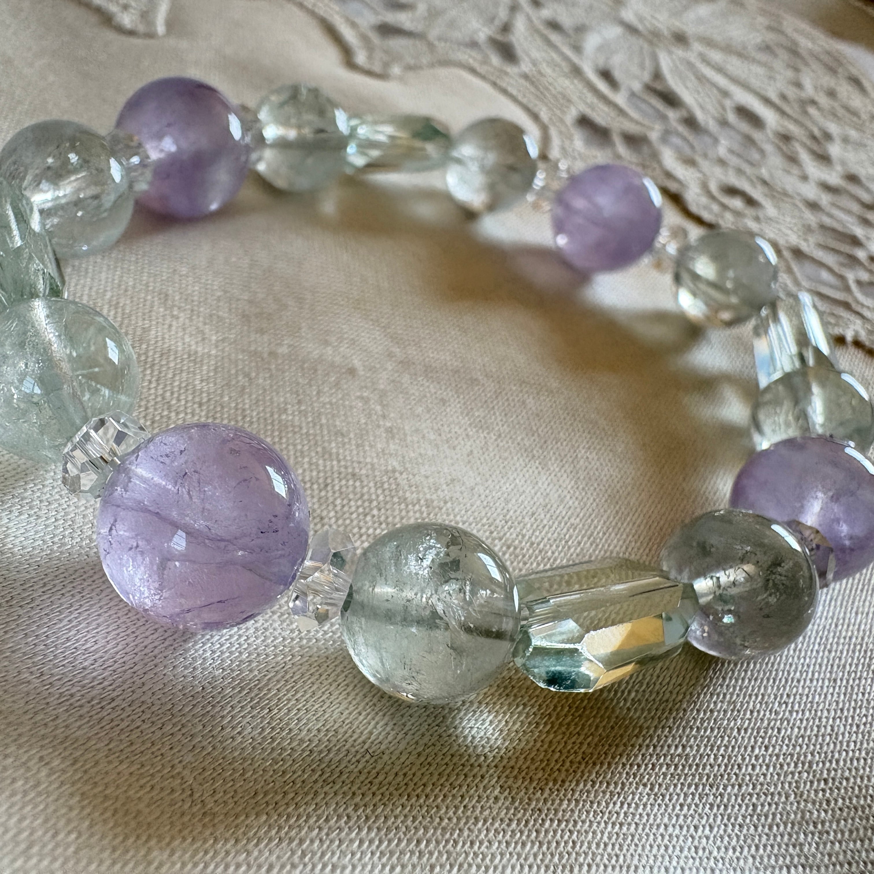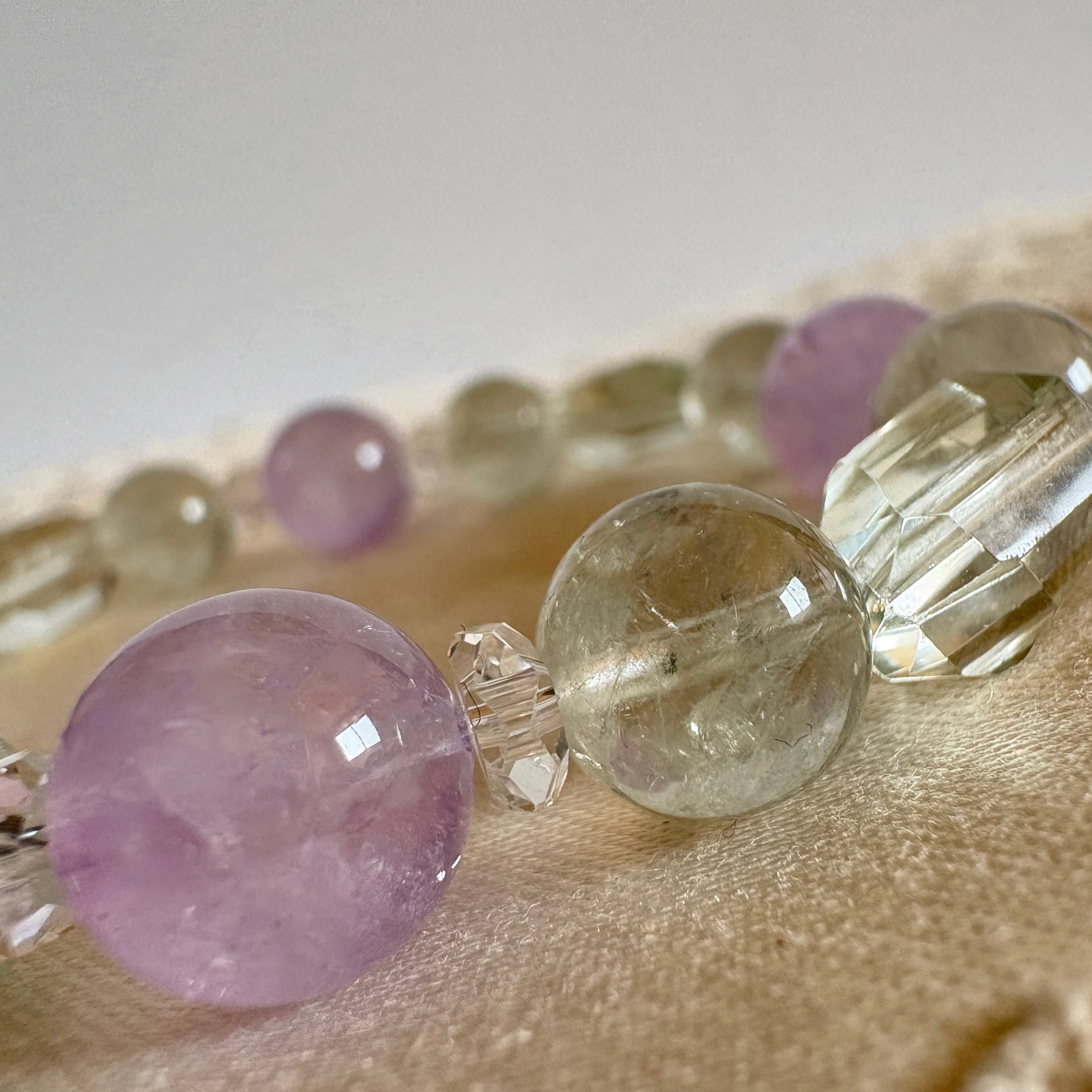 グリーンアメジスト×ラベンダーアメジスト×グリーンクォーツ|みずみずしい透明感と癒しの輝き(水晶ロンデル仕立て)