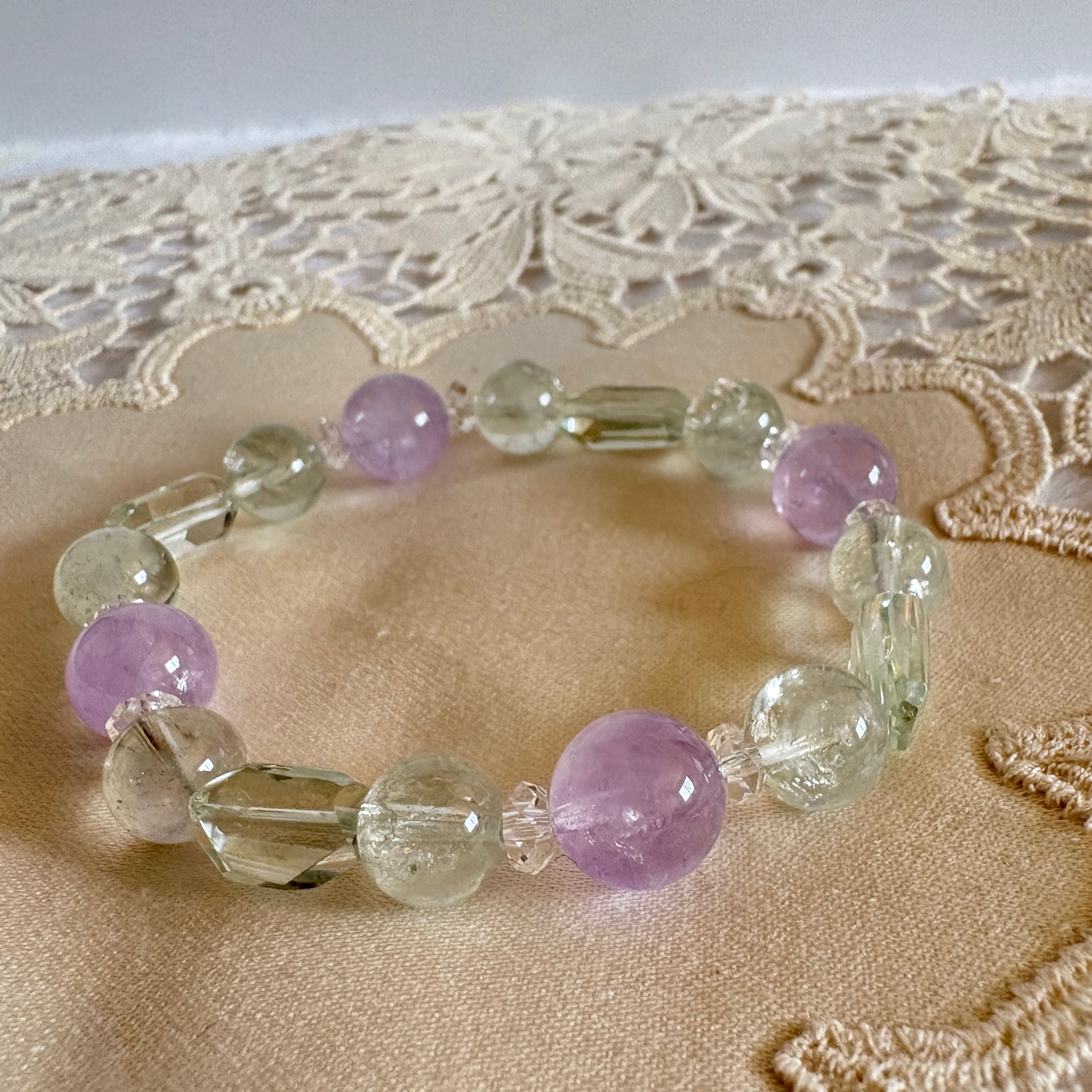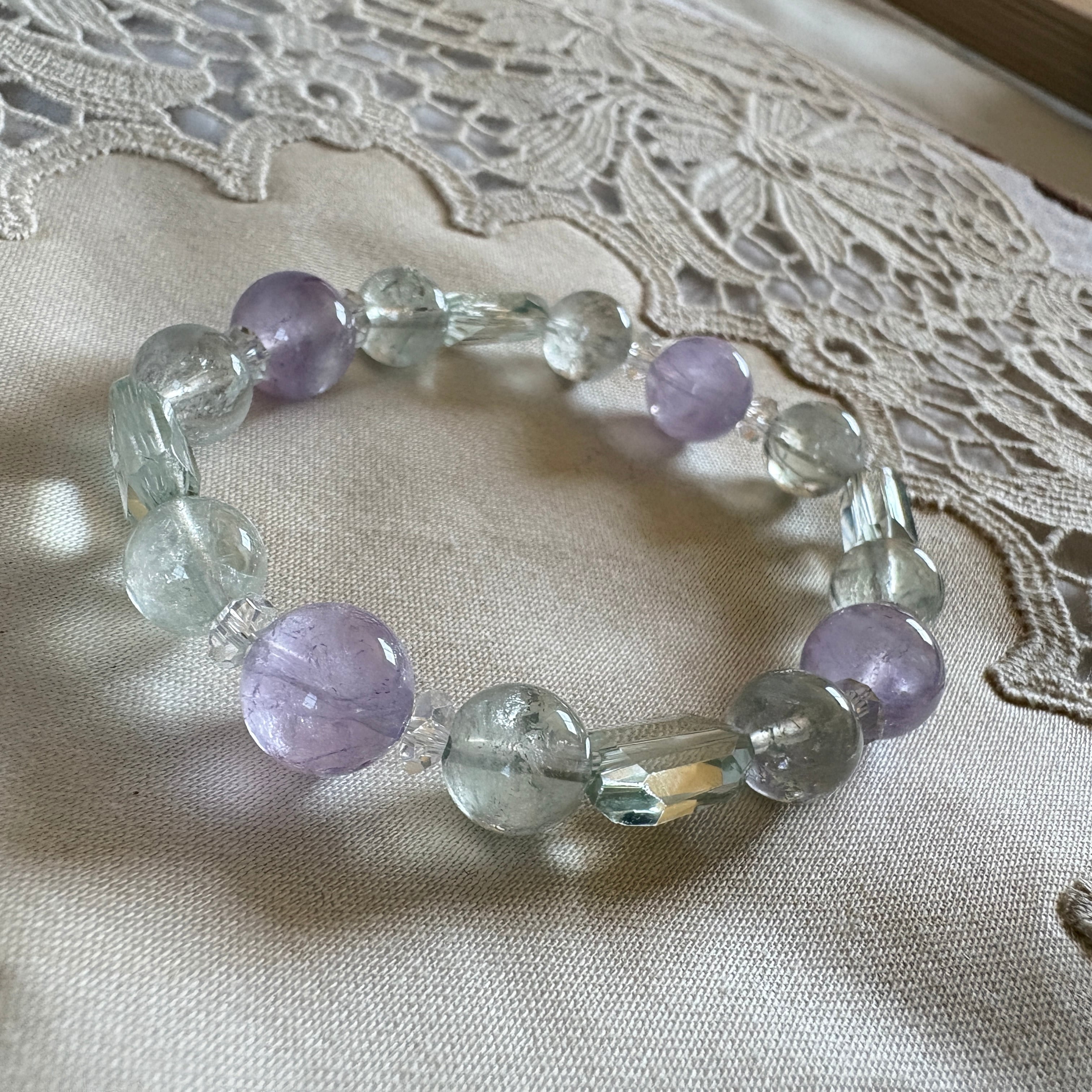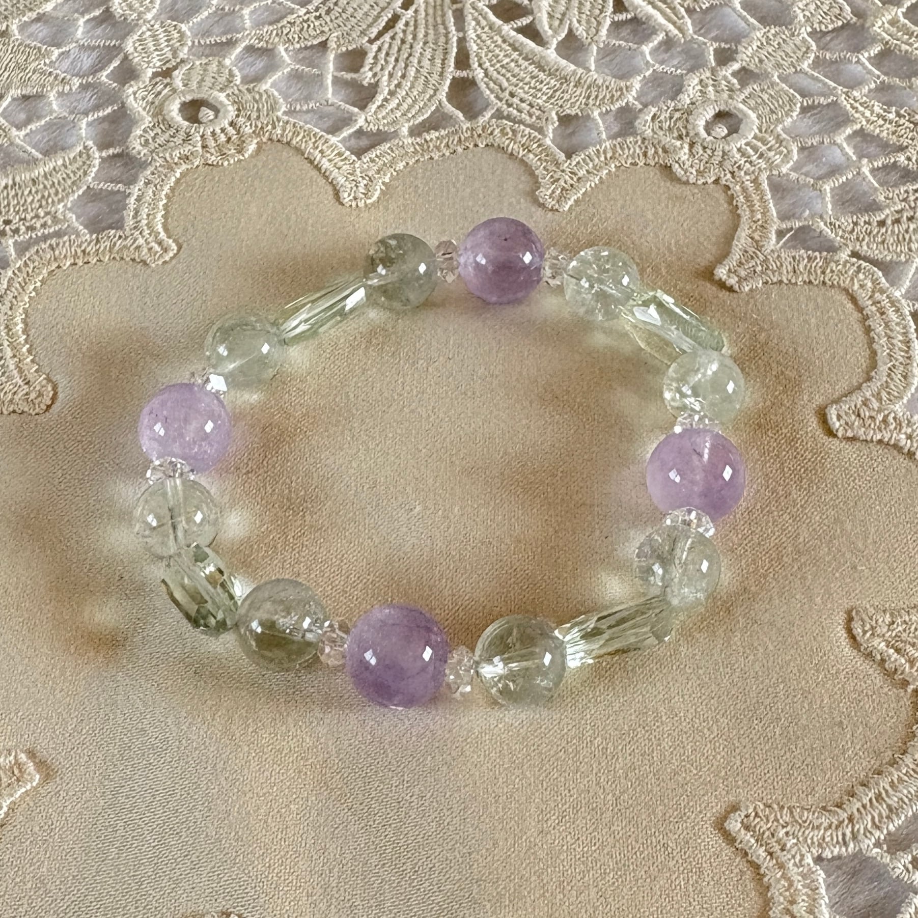 グリーンアメジスト×ラベンダーアメジスト×グリーンクォーツ|みずみずしい透明感と癒しの輝き(水晶ロンデル仕立て)