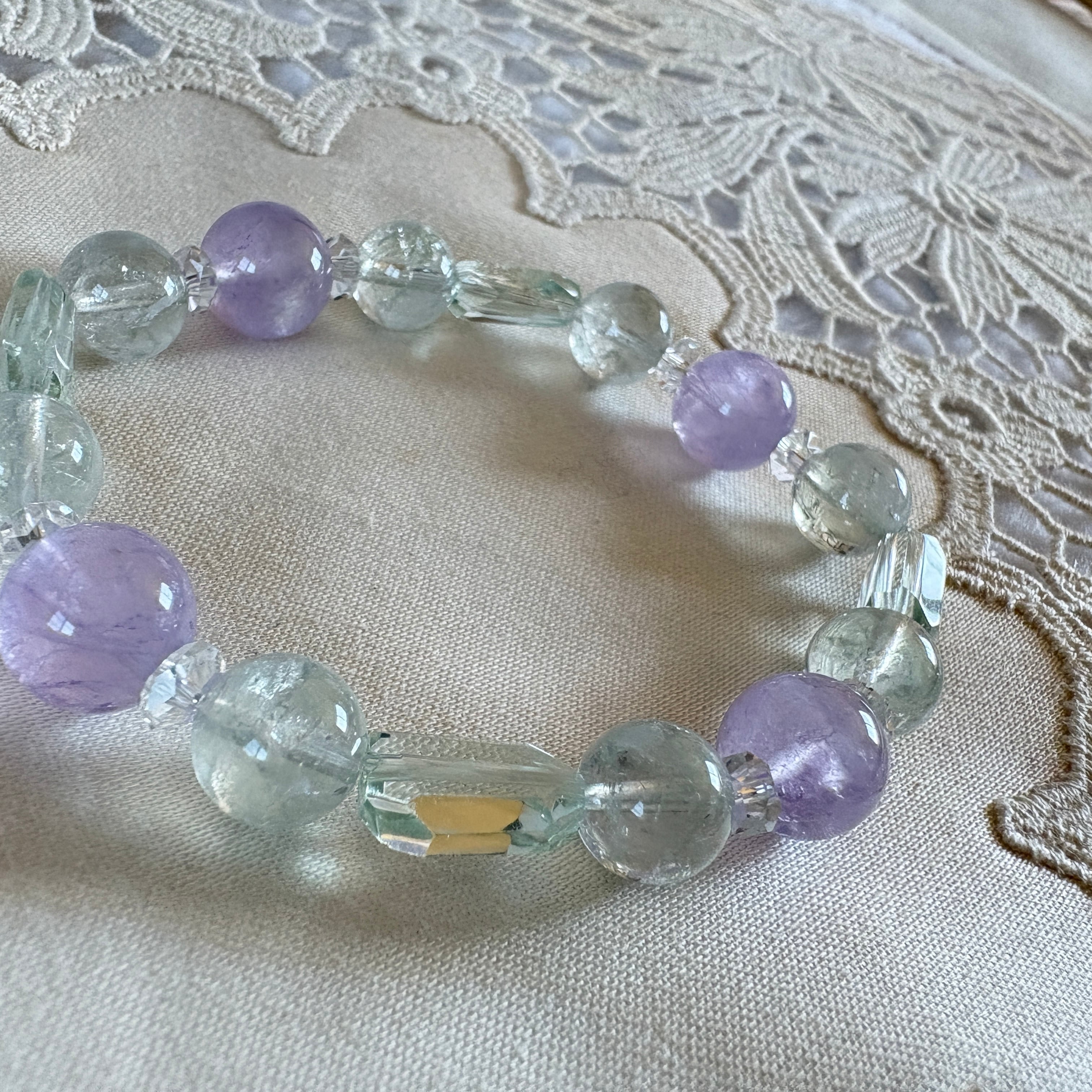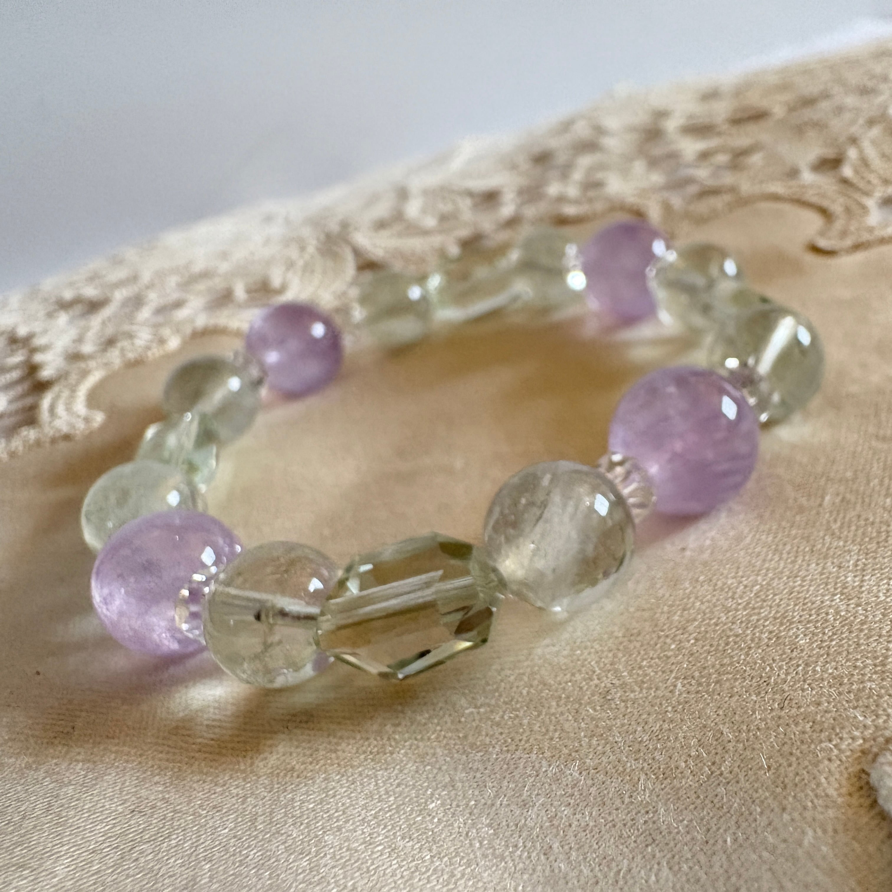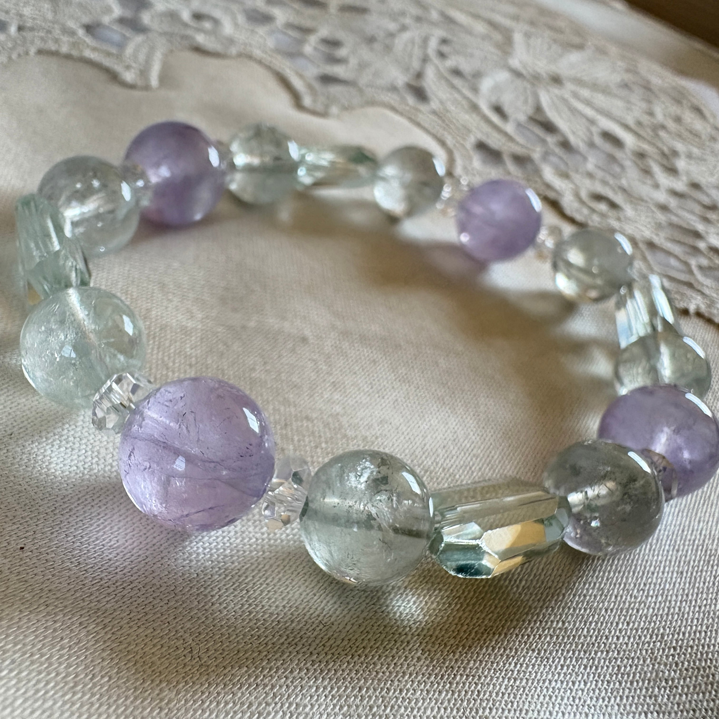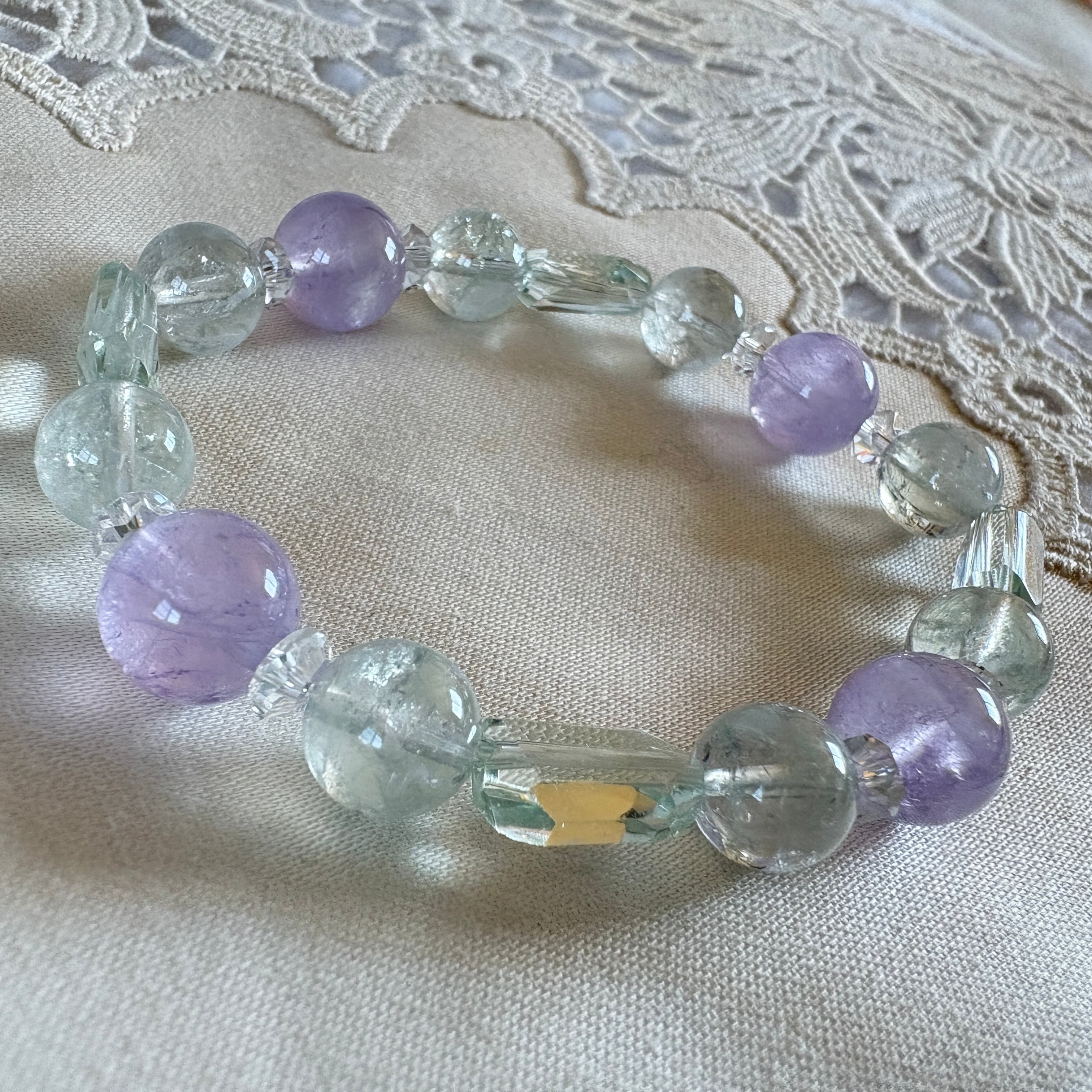 グリーンアメジスト×ラベンダーアメジスト×グリーンクォーツ|みずみずしい透明感と癒しの輝き(水晶ロンデル仕立て)