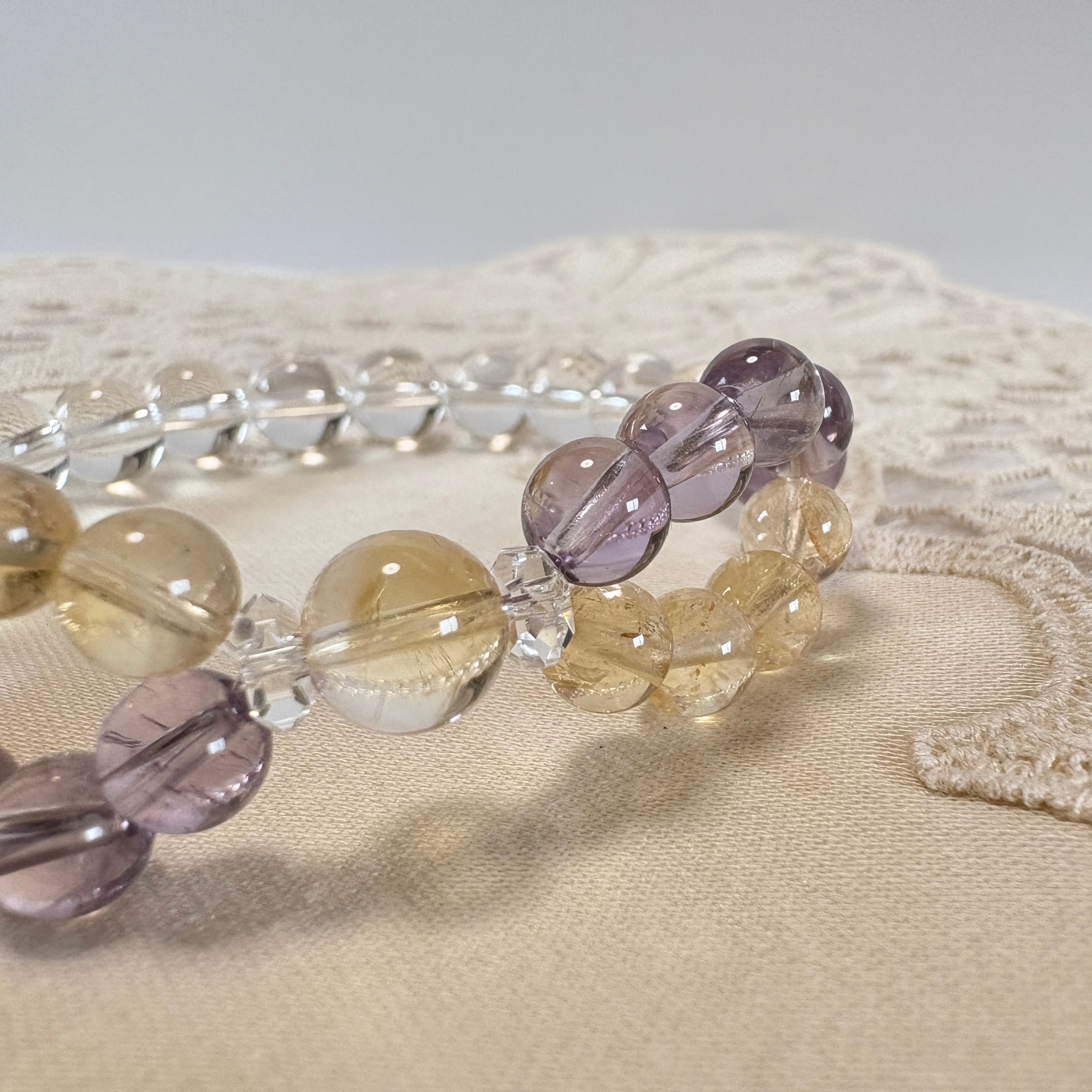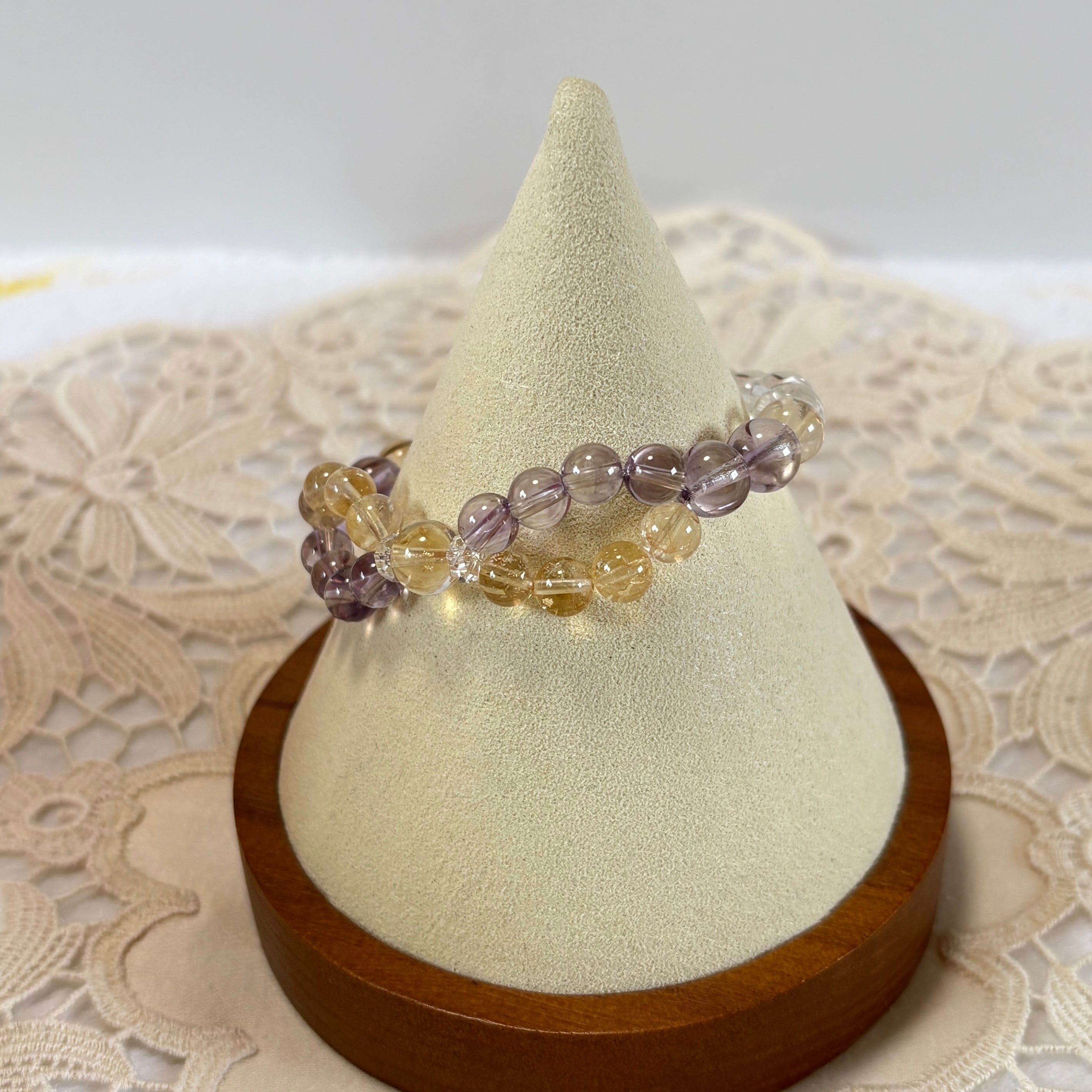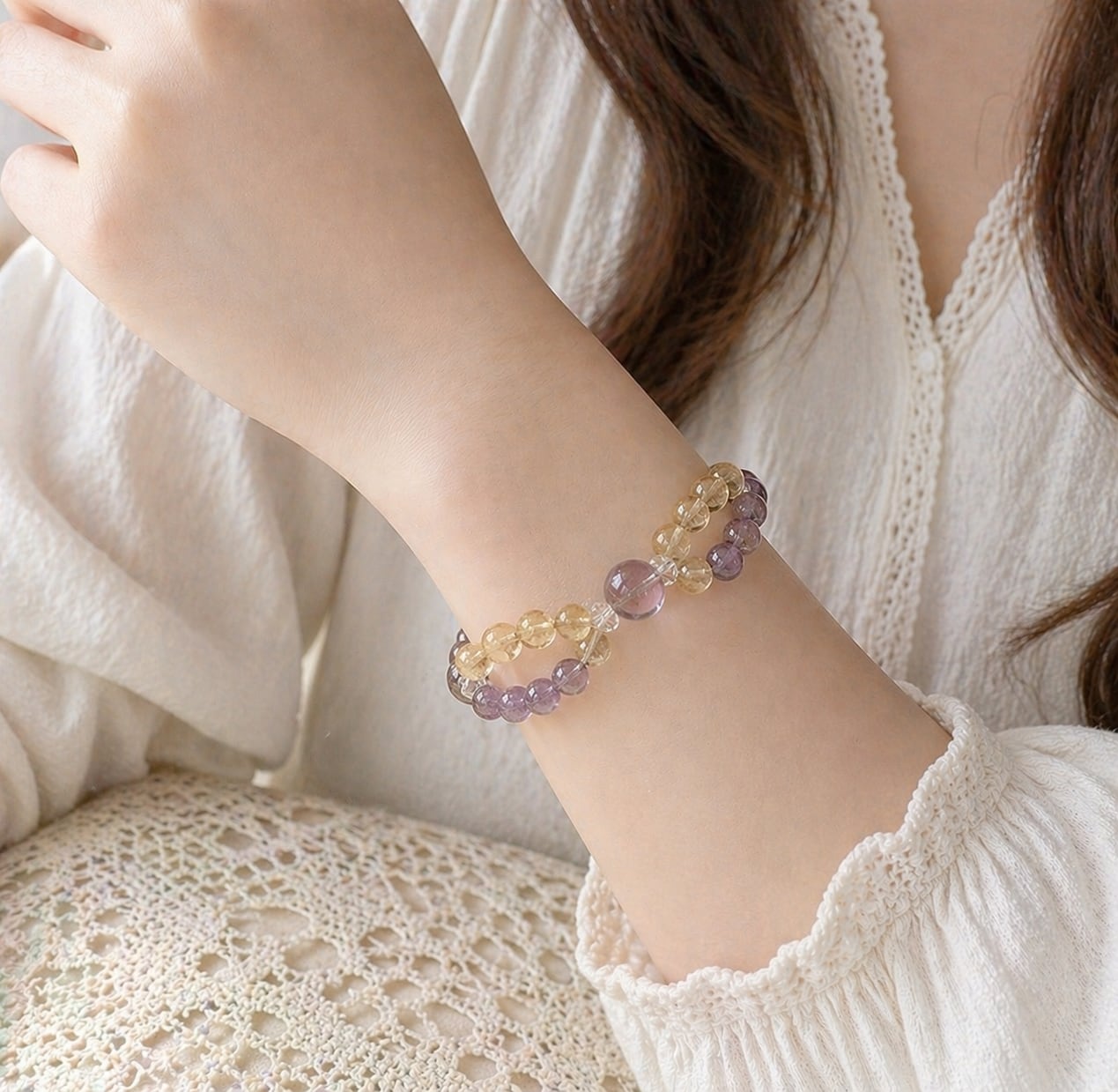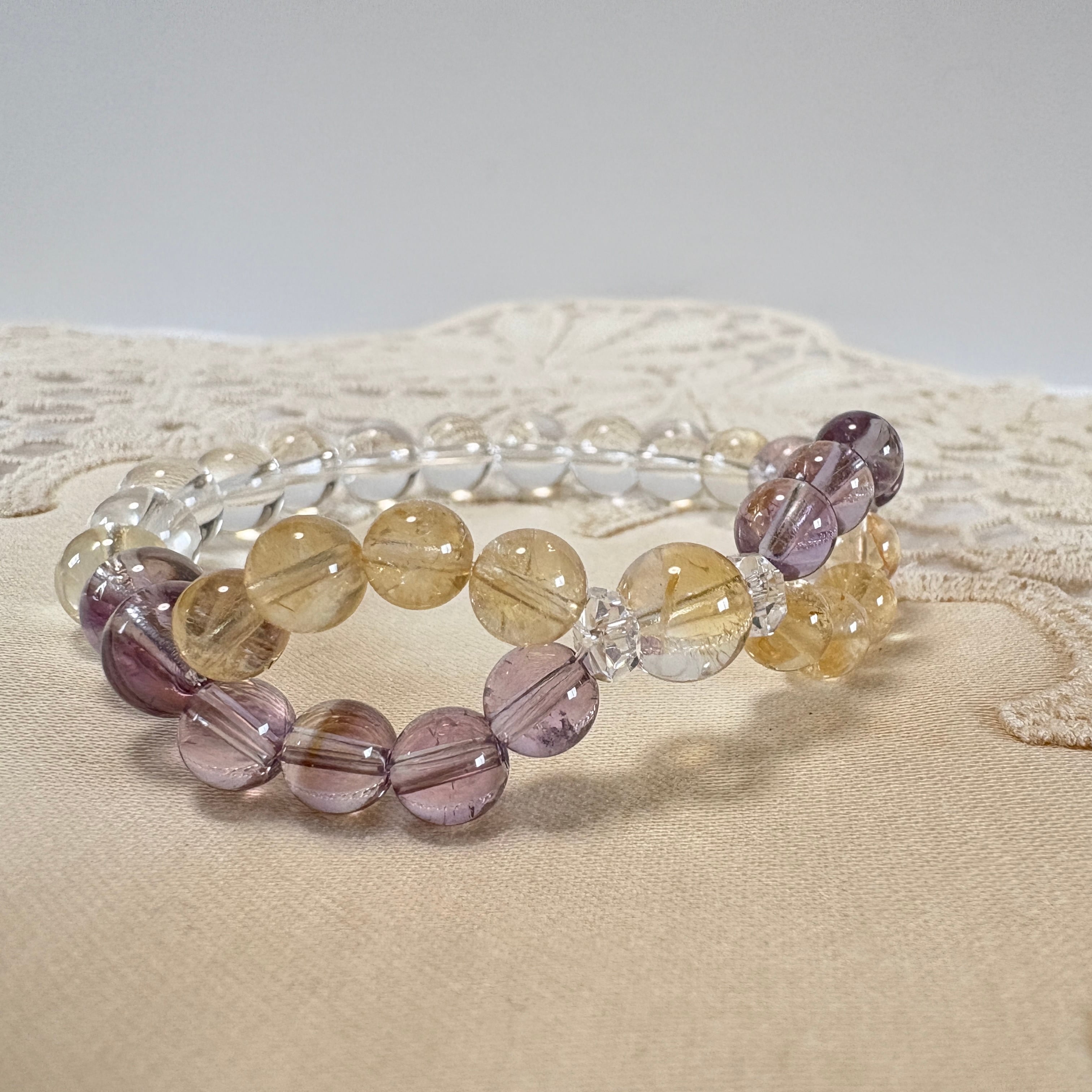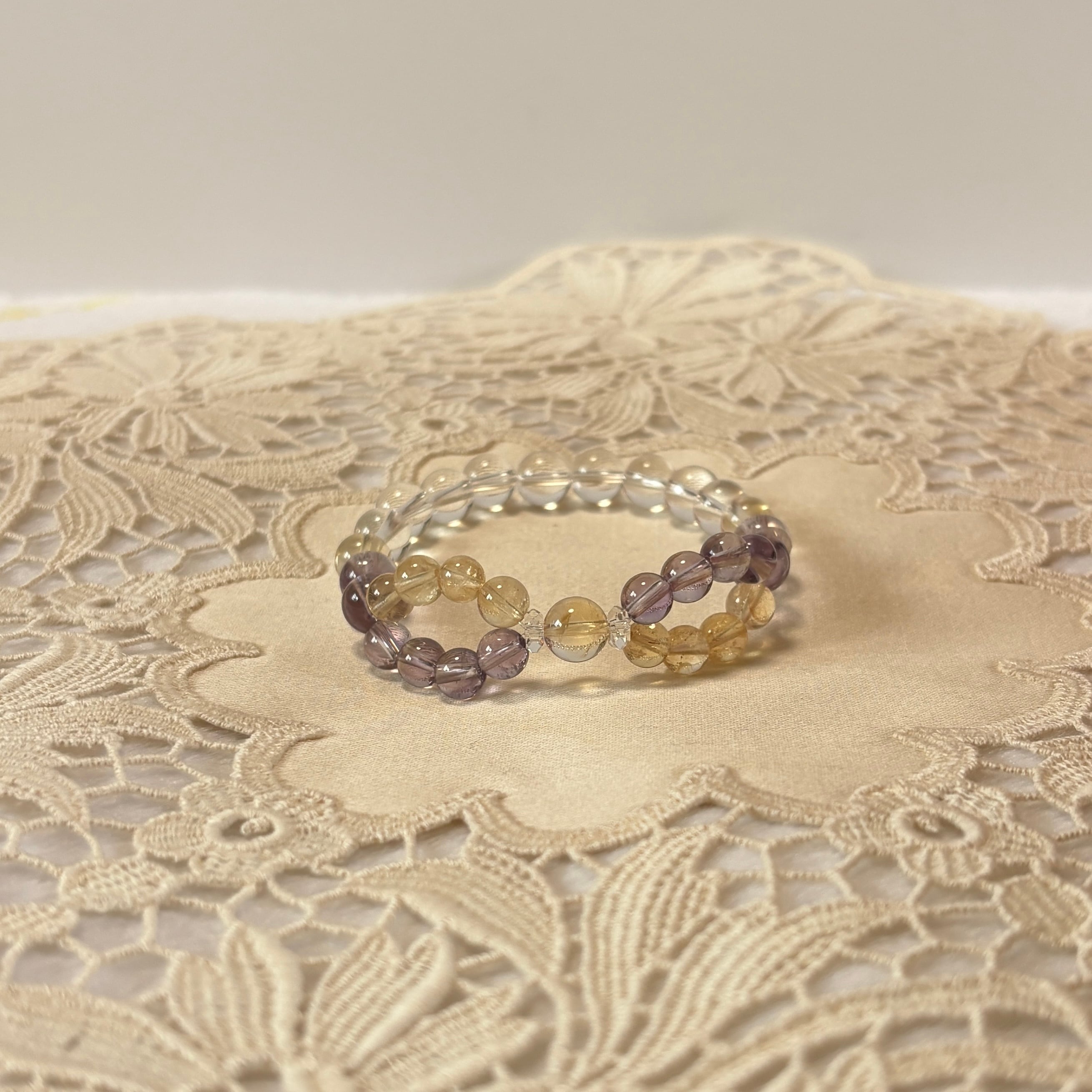 インフィニティクロス∞ブレスレット©|シトリン × アメジスト|金運と癒しの天然石ブレスレット