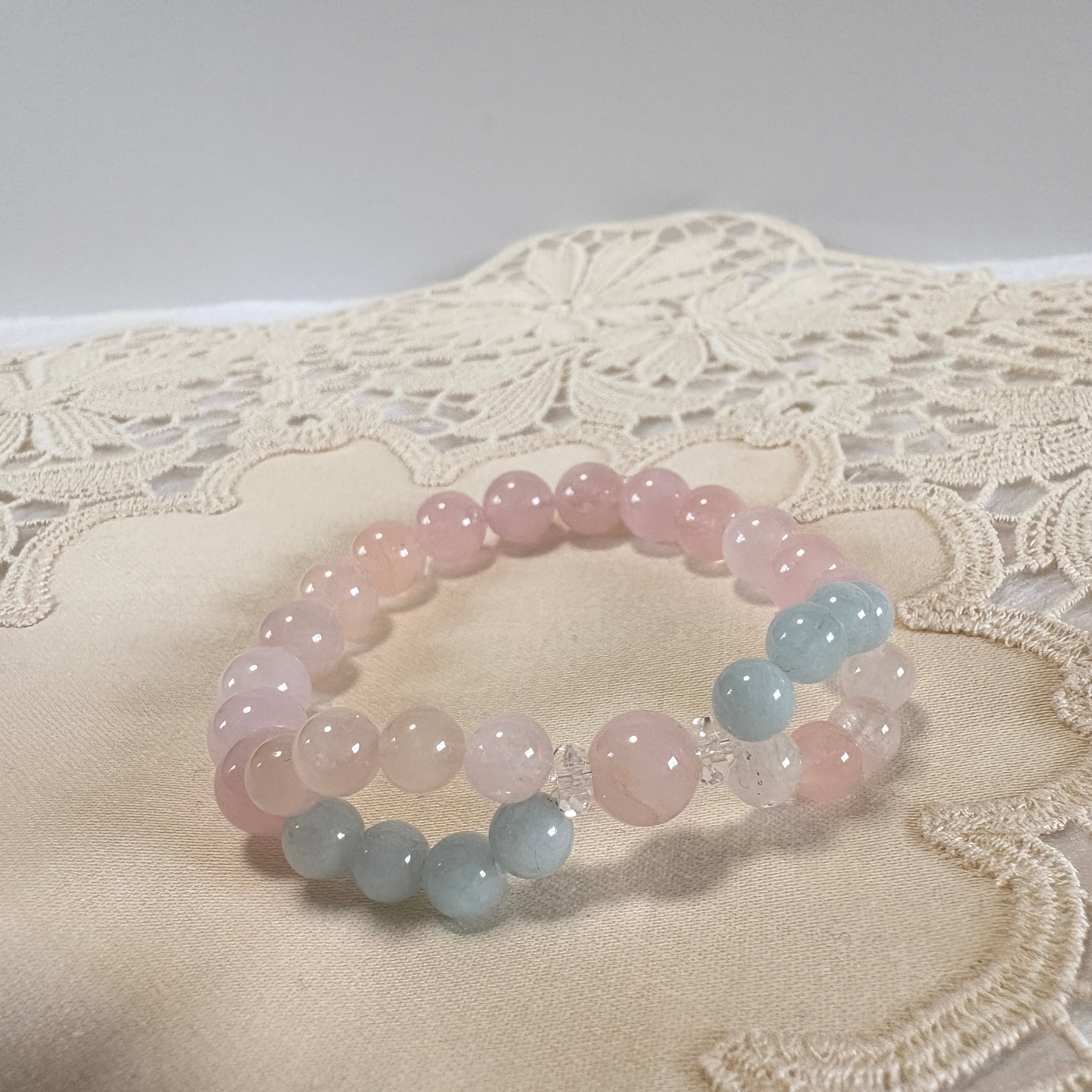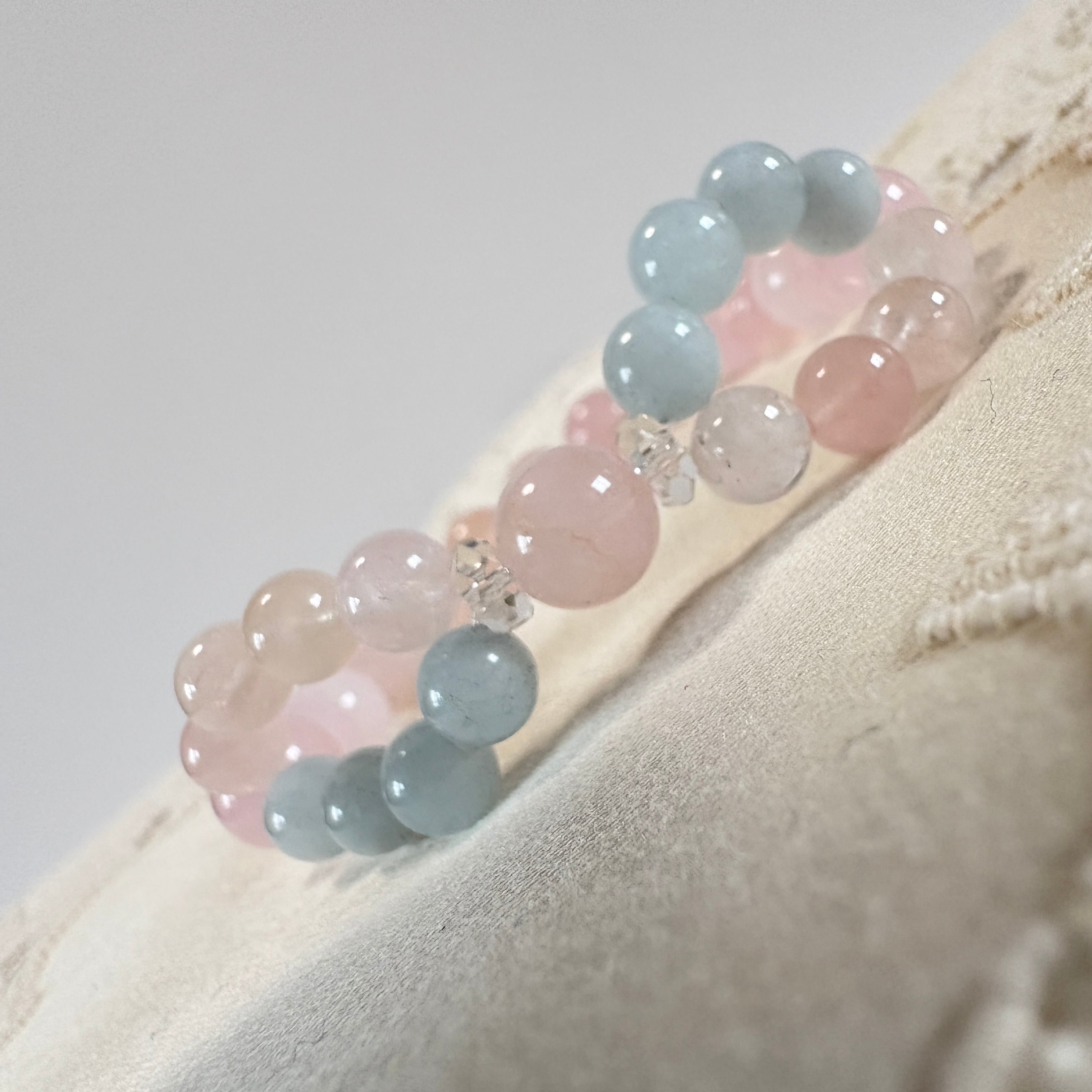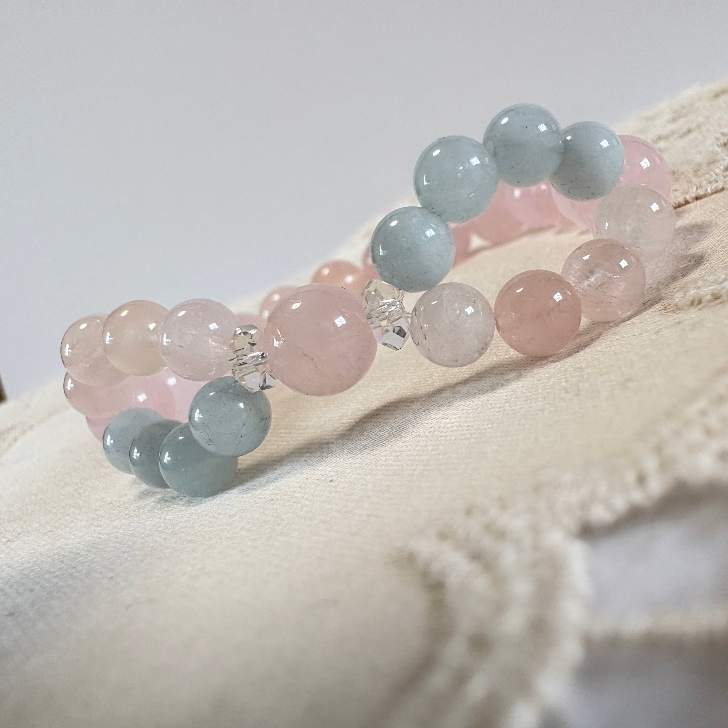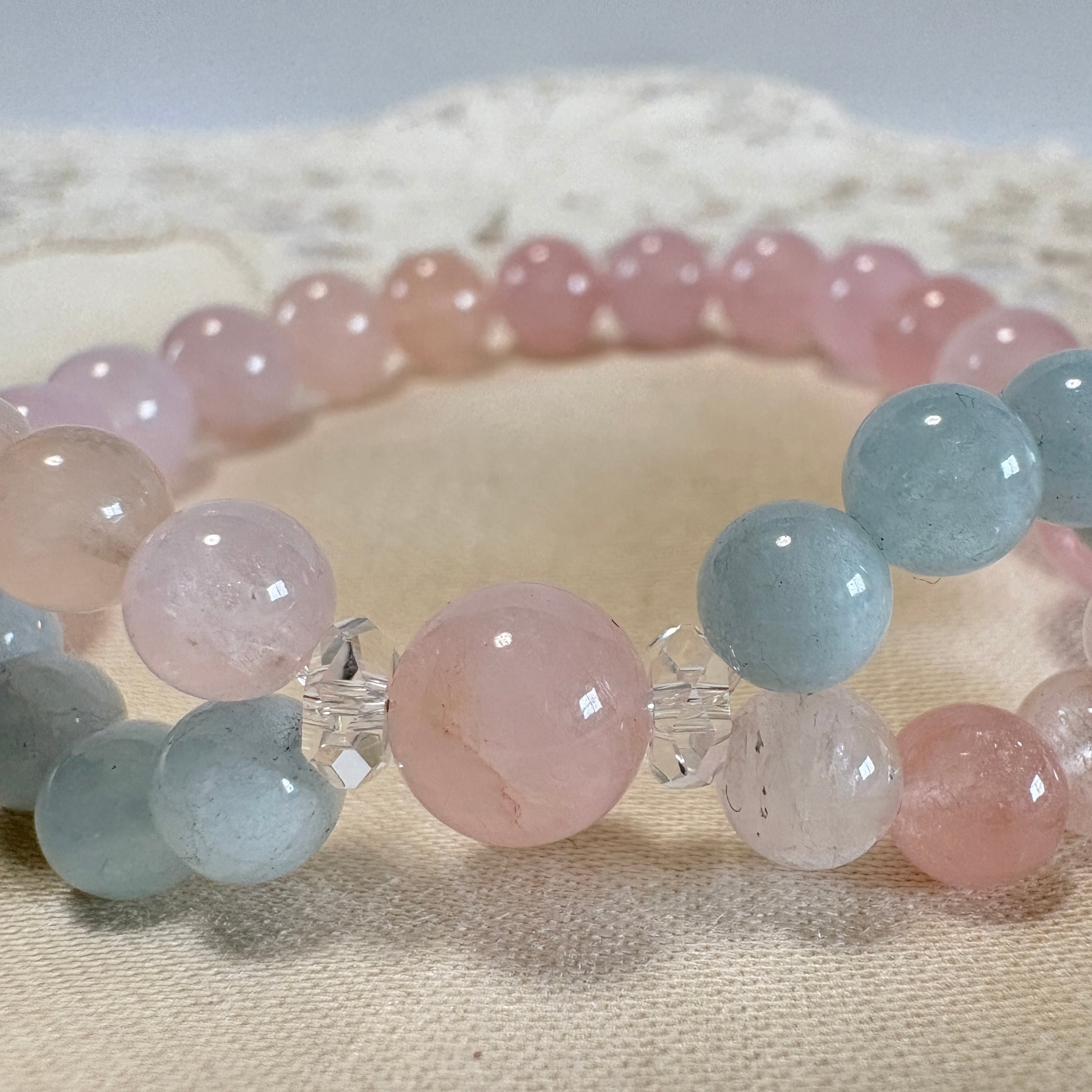 インフィニティクロス∞ブレスレット©|モルガナイト × アクアマリン|愛と癒しが巡る天然石ブレスレット