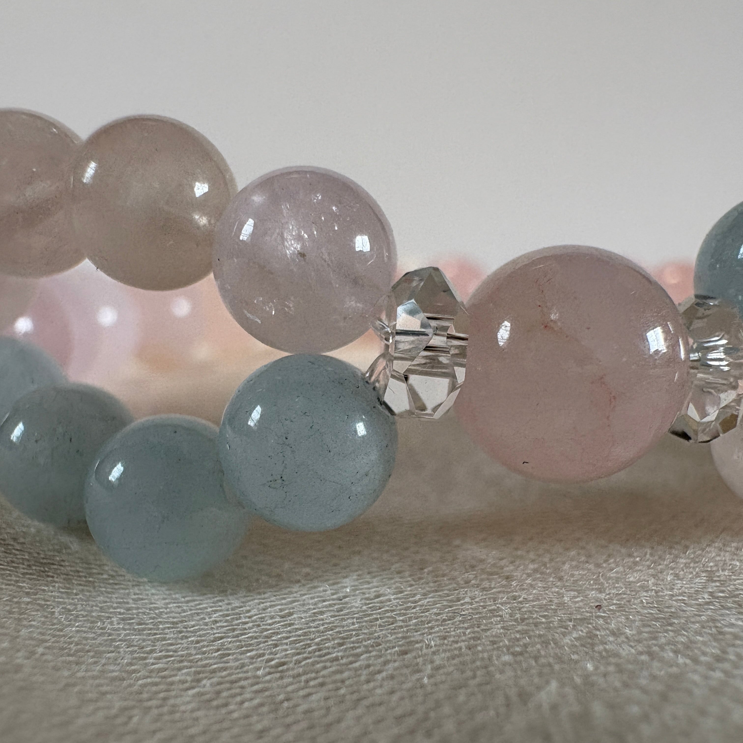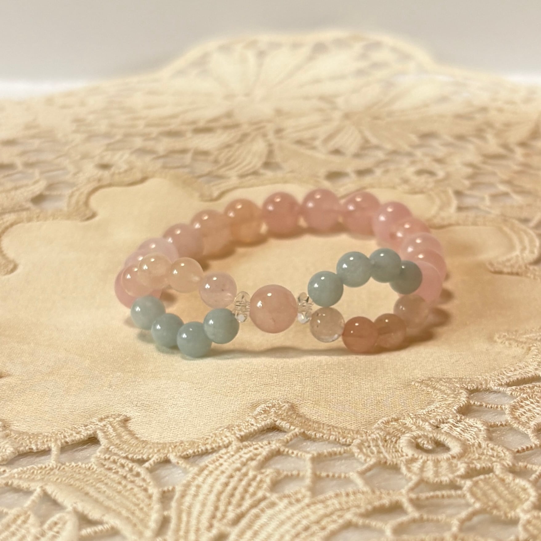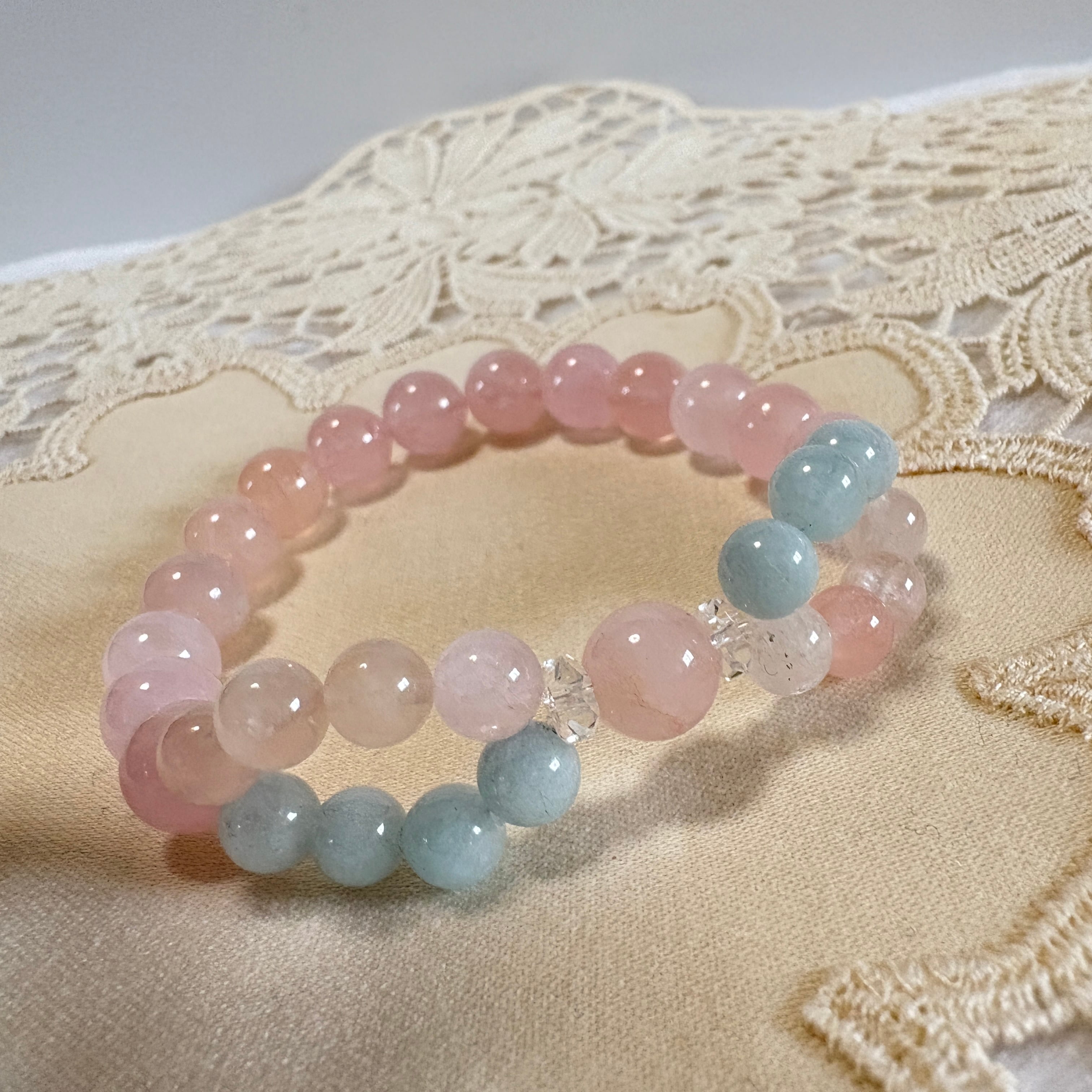 インフィニティクロス∞ブレスレット©|モルガナイト × アクアマリン|愛と癒しが巡る天然石ブレスレット
