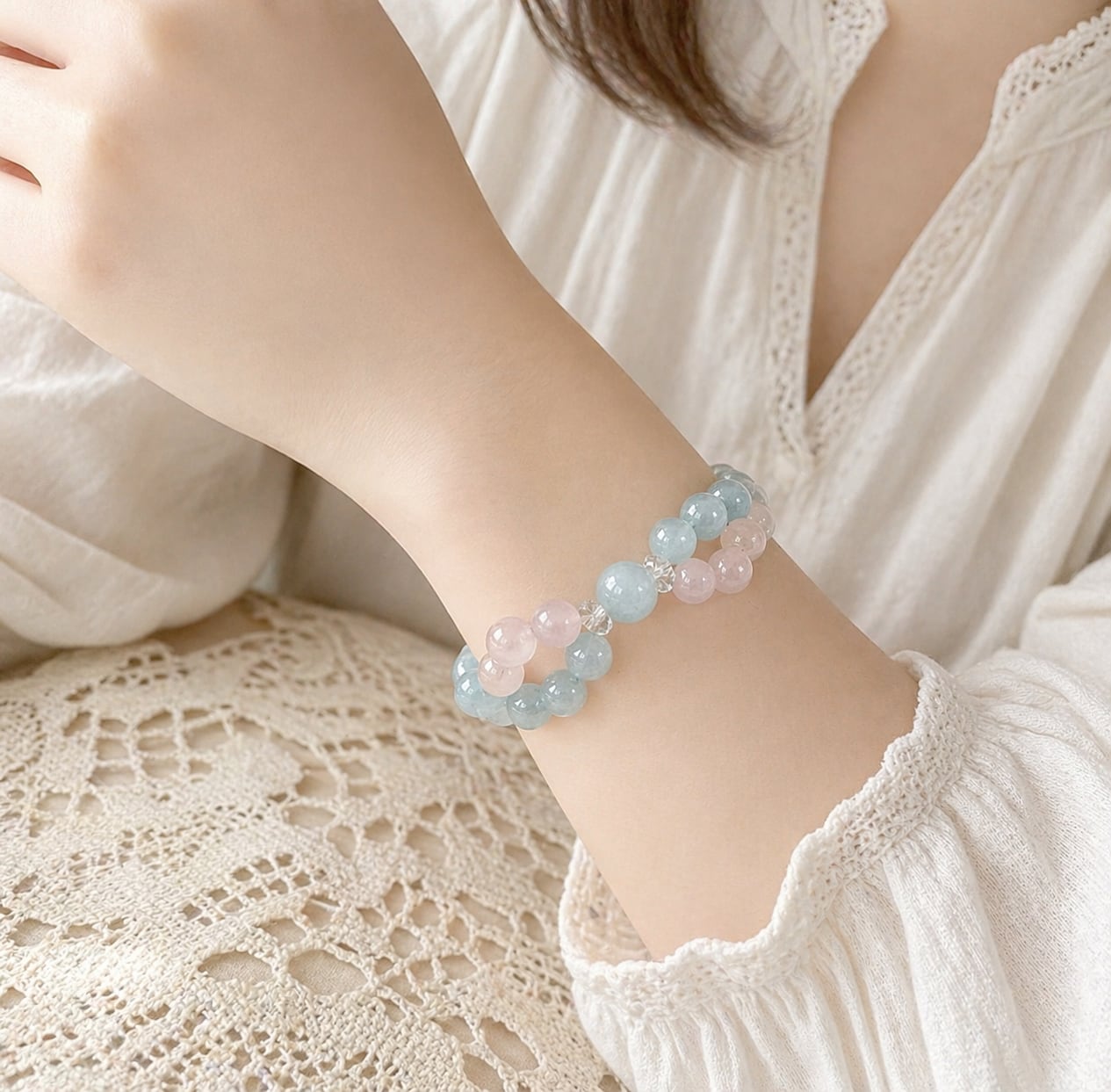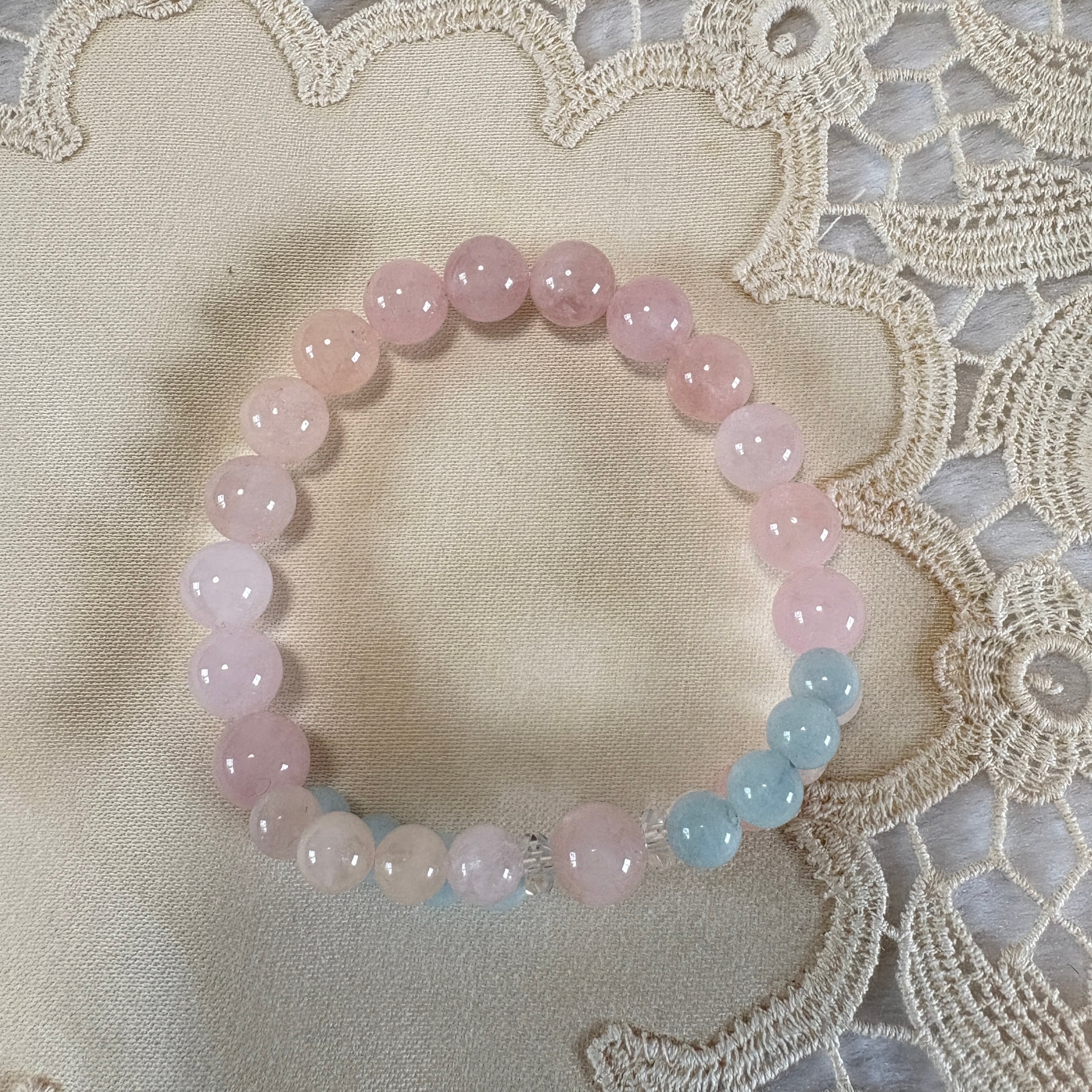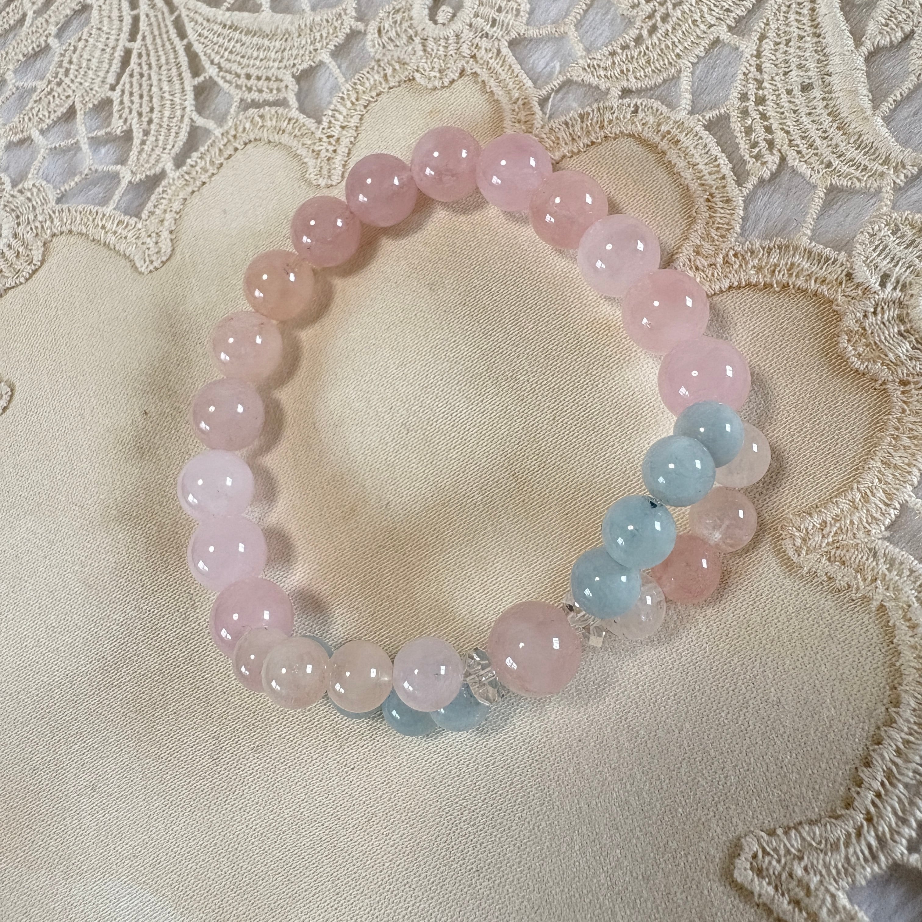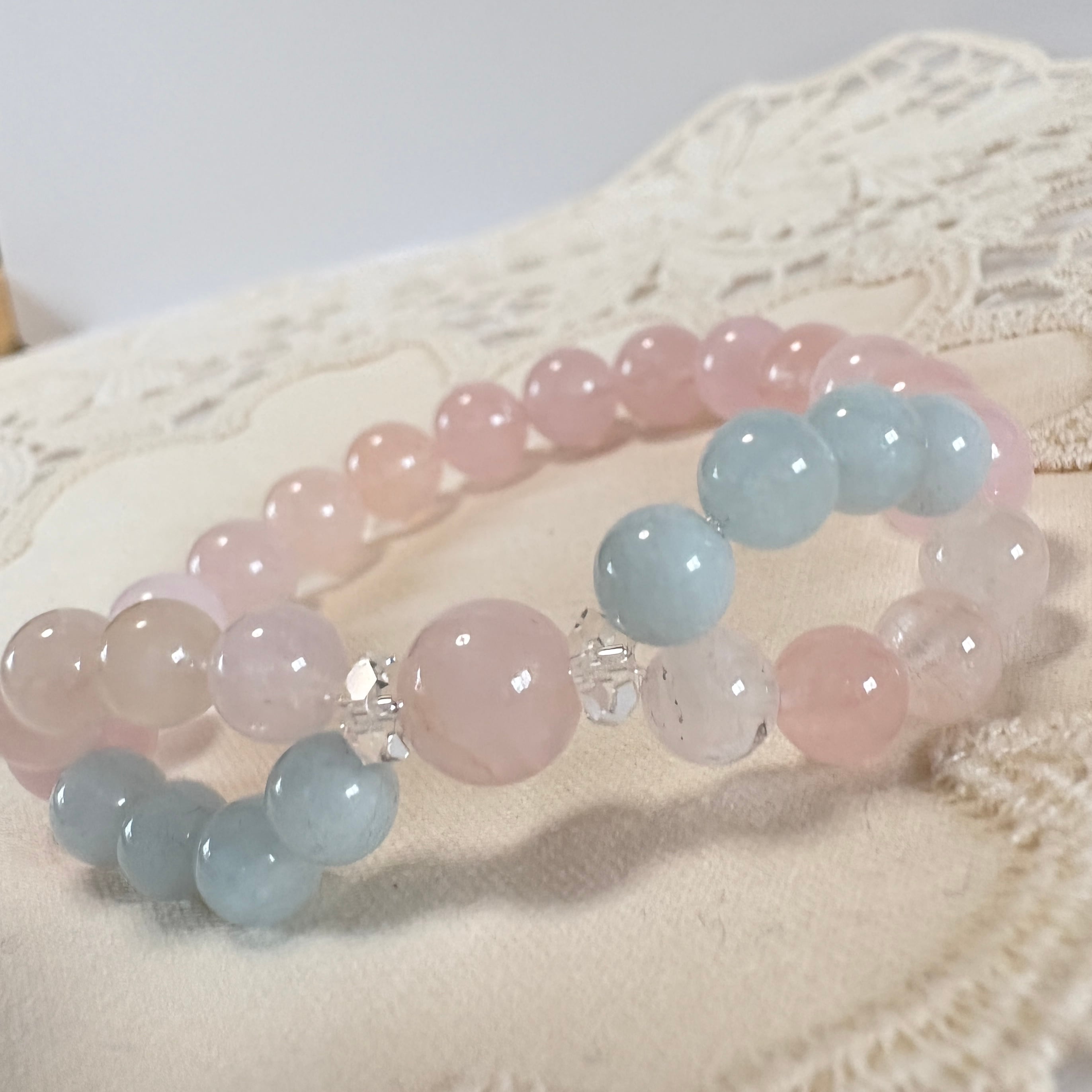 インフィニティクロス∞ブレスレット©|モルガナイト × アクアマリン|愛と癒しが巡る天然石ブレスレット