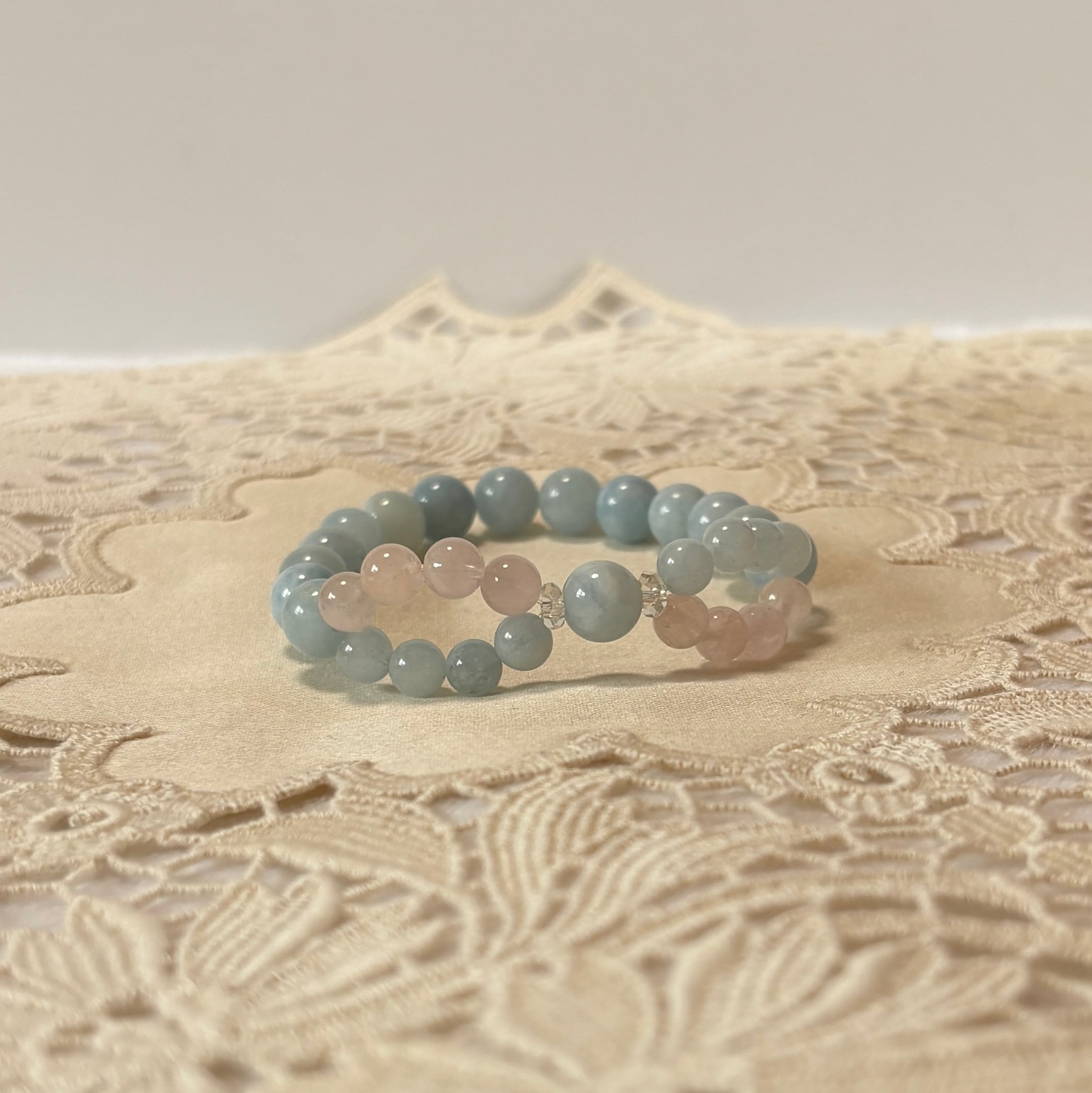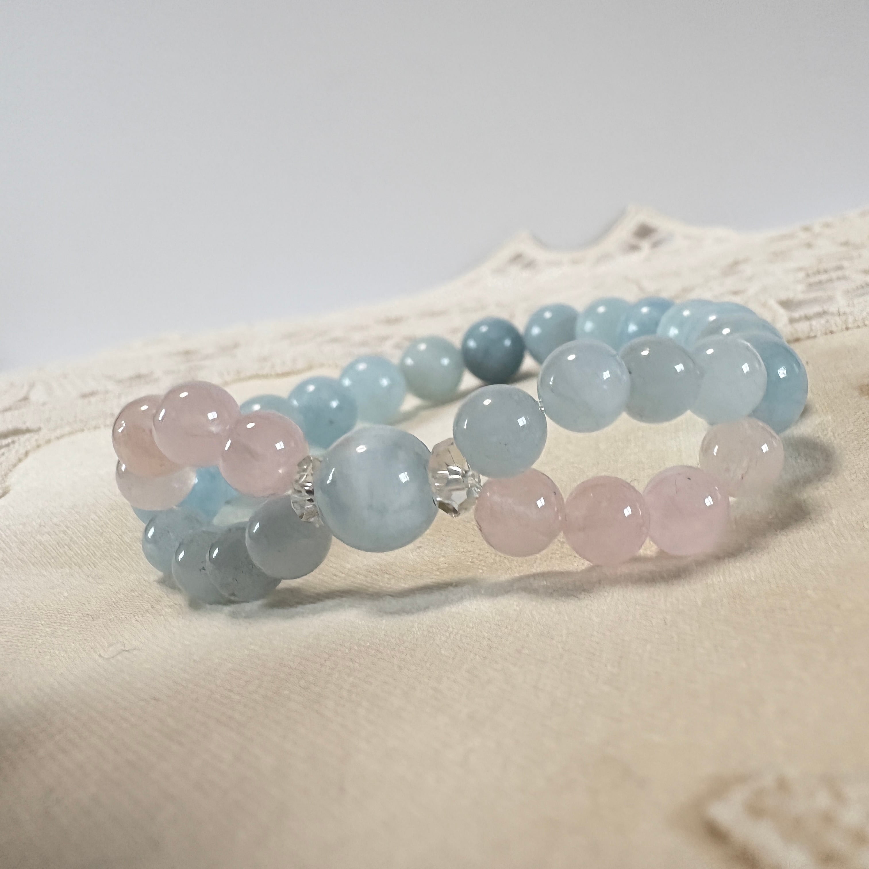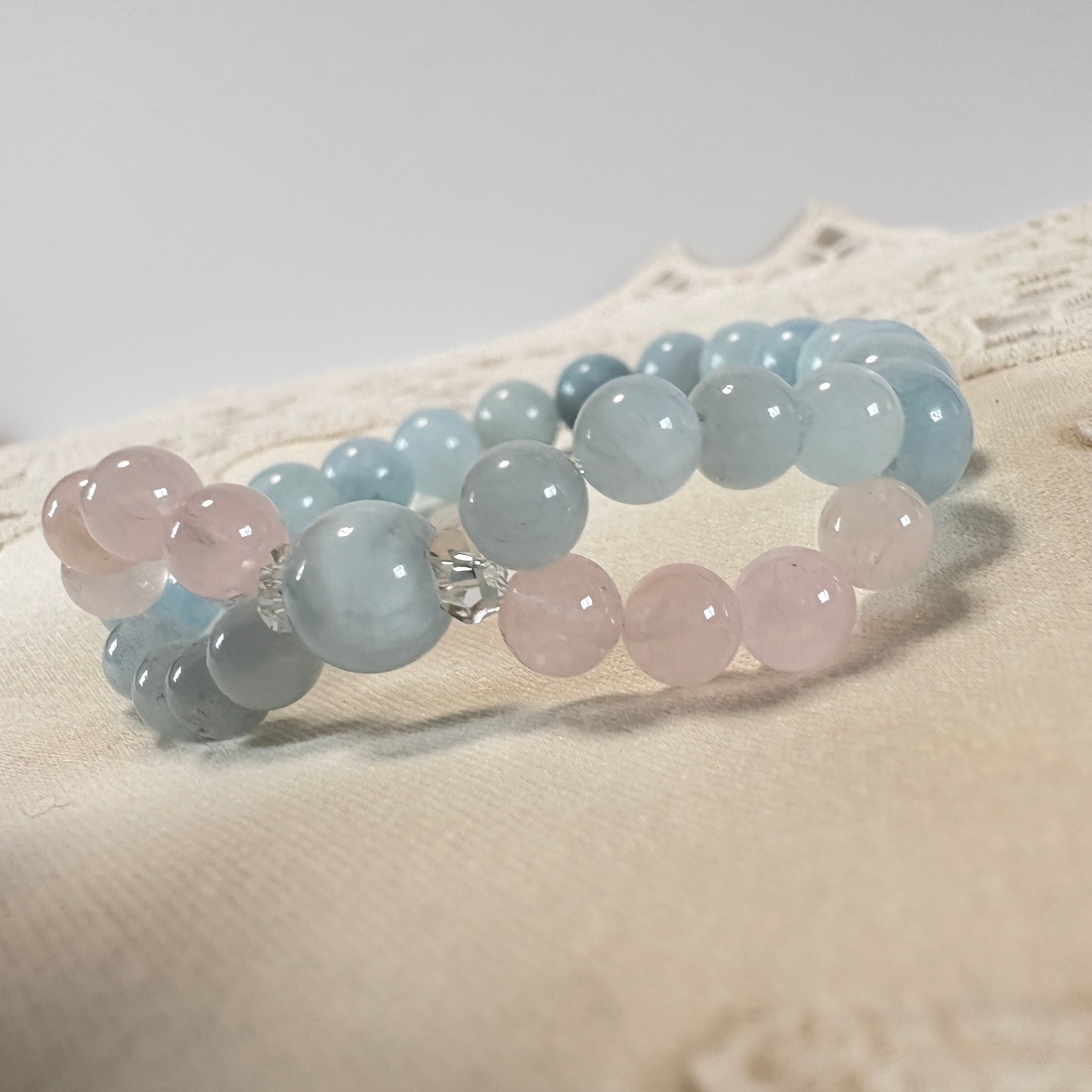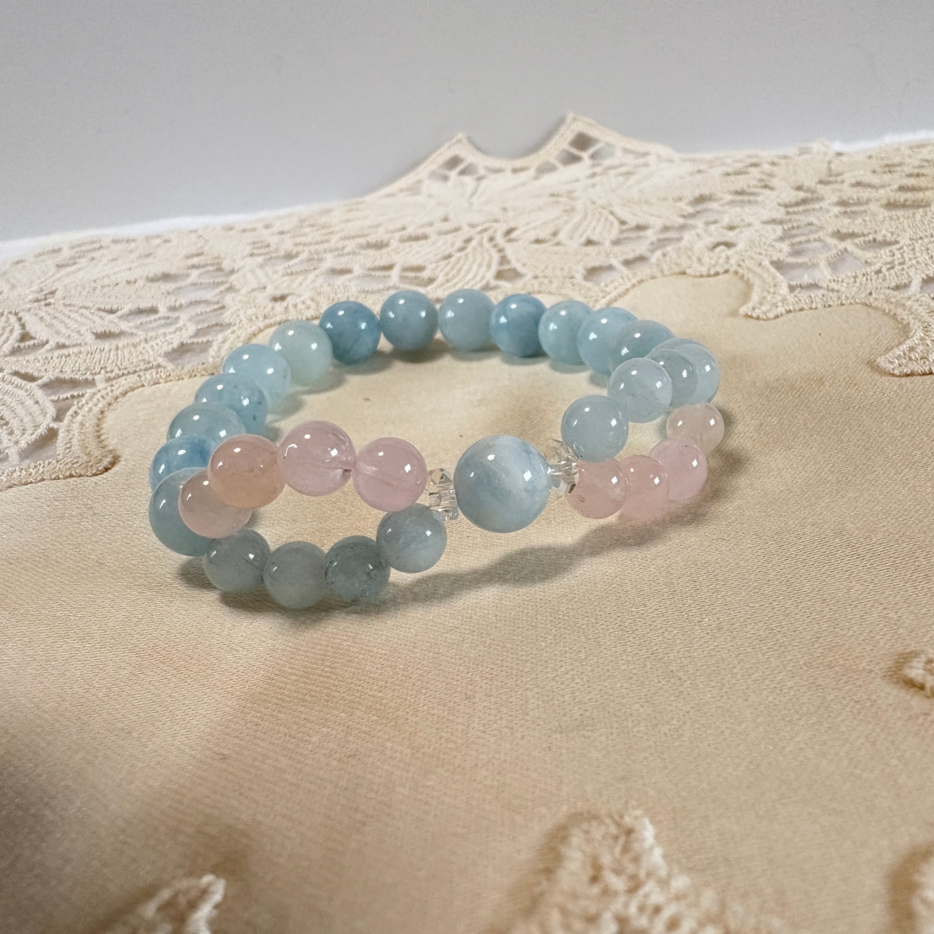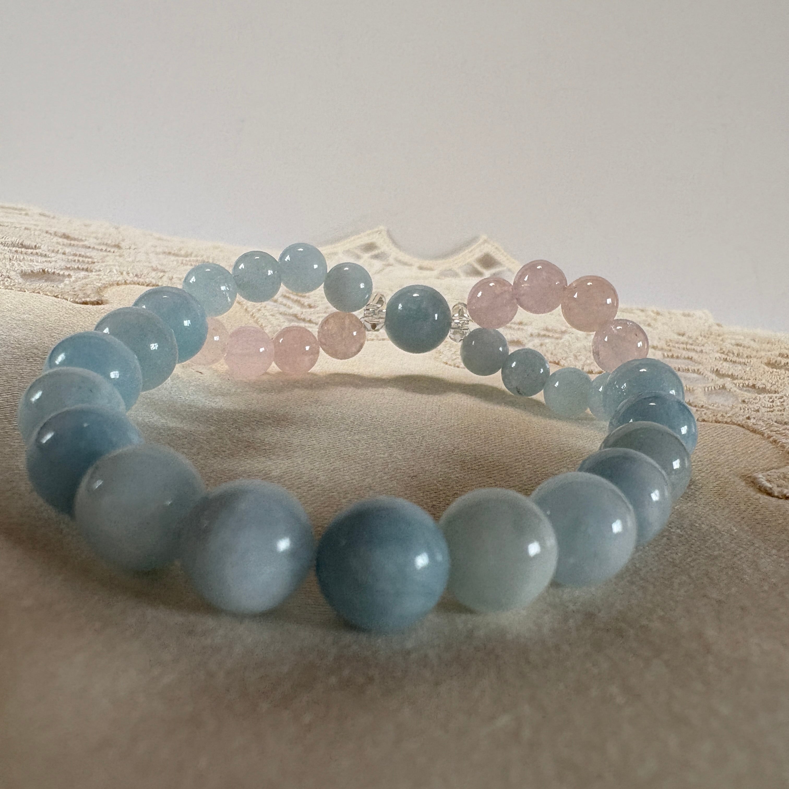 インフィニティクロス∞ブレスレット©|ブラジル産アクアマリン × モルガナイト|愛と癒しが巡る天然石ブレスレット