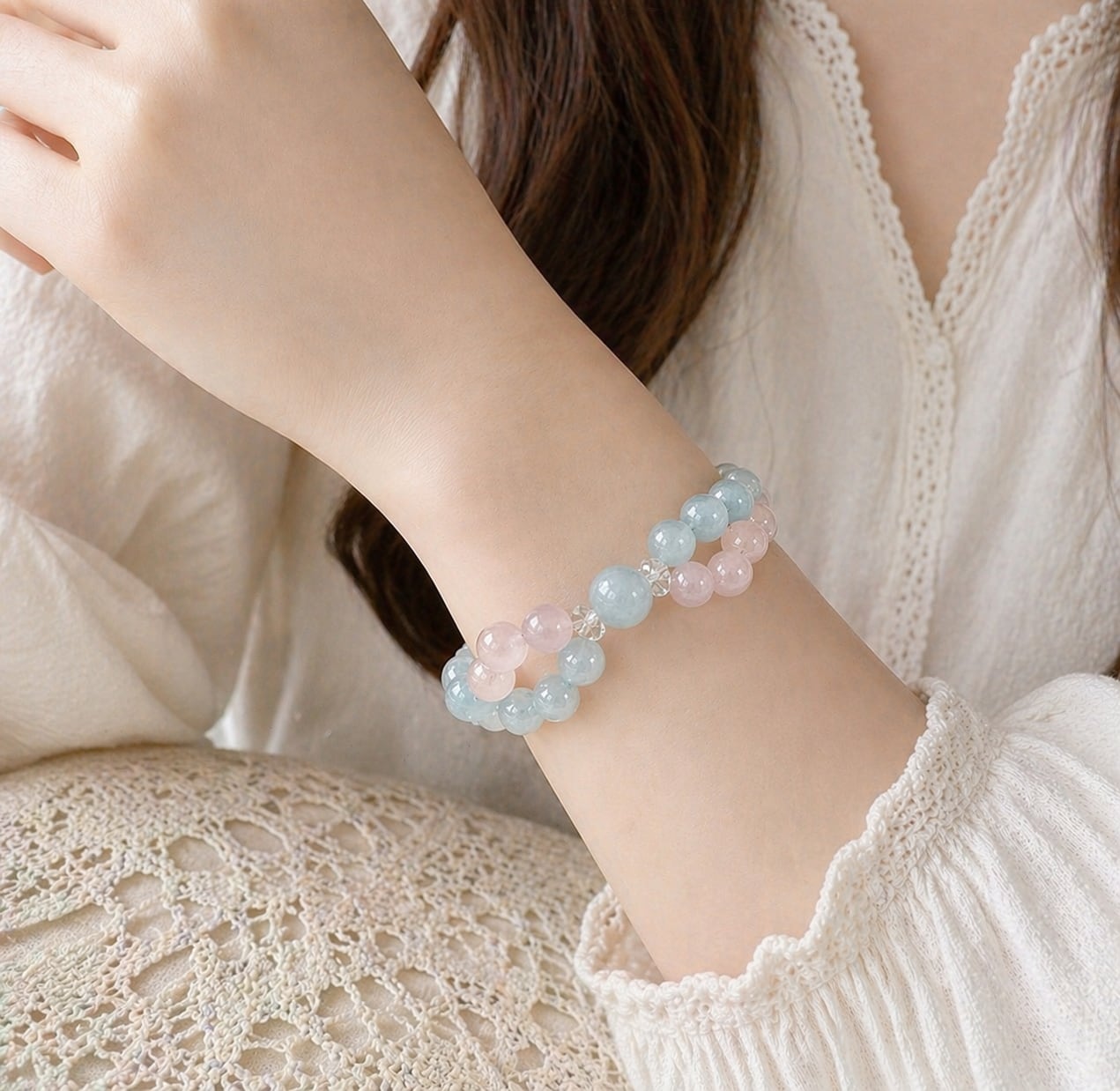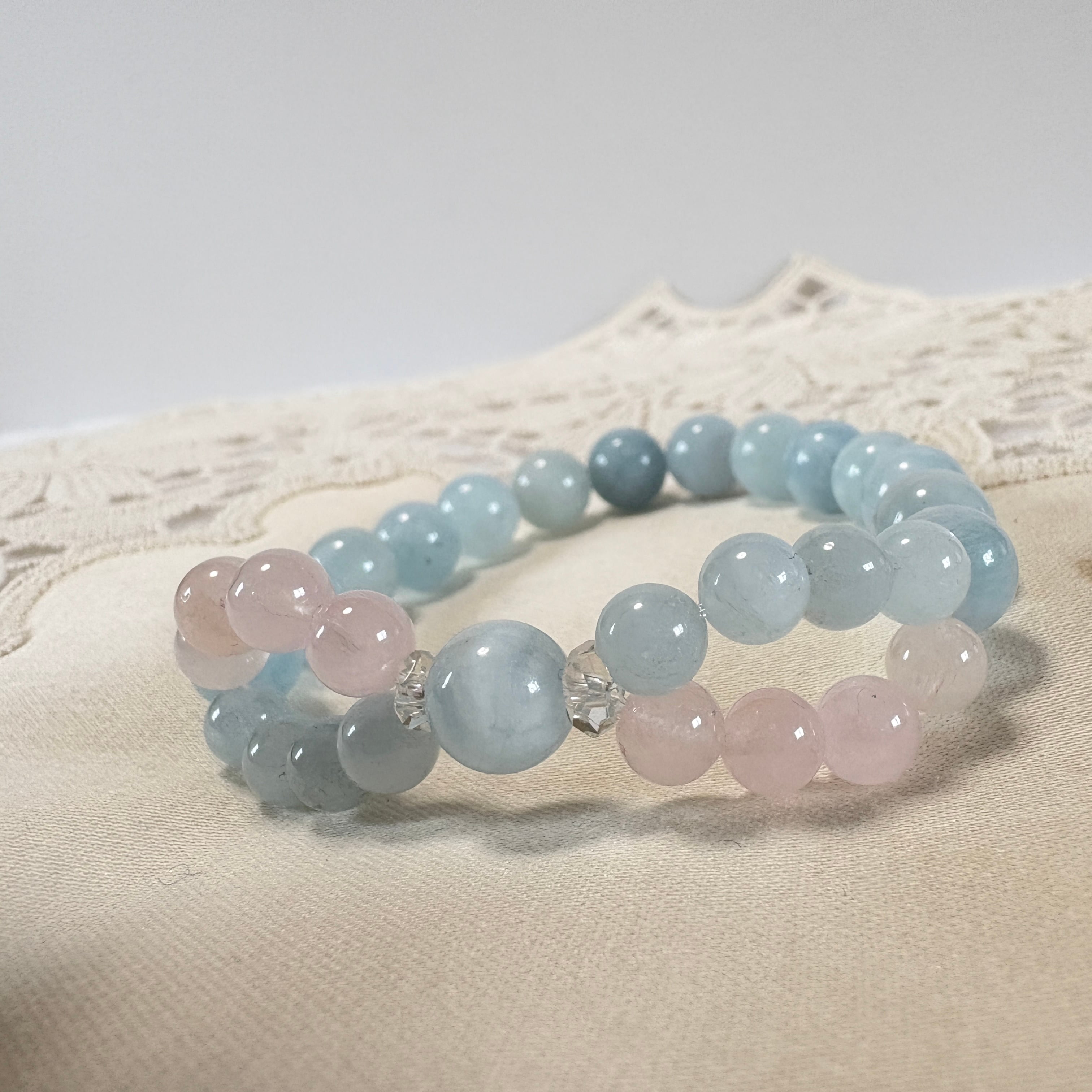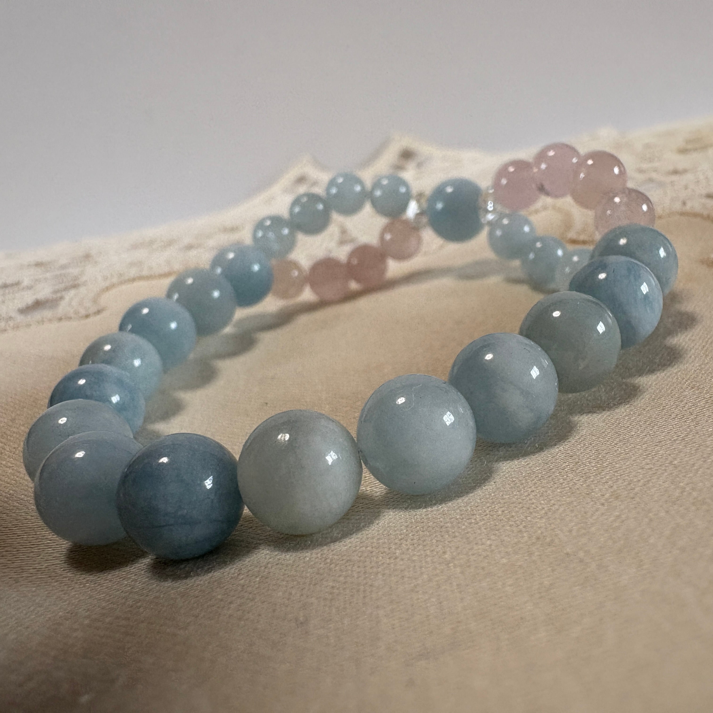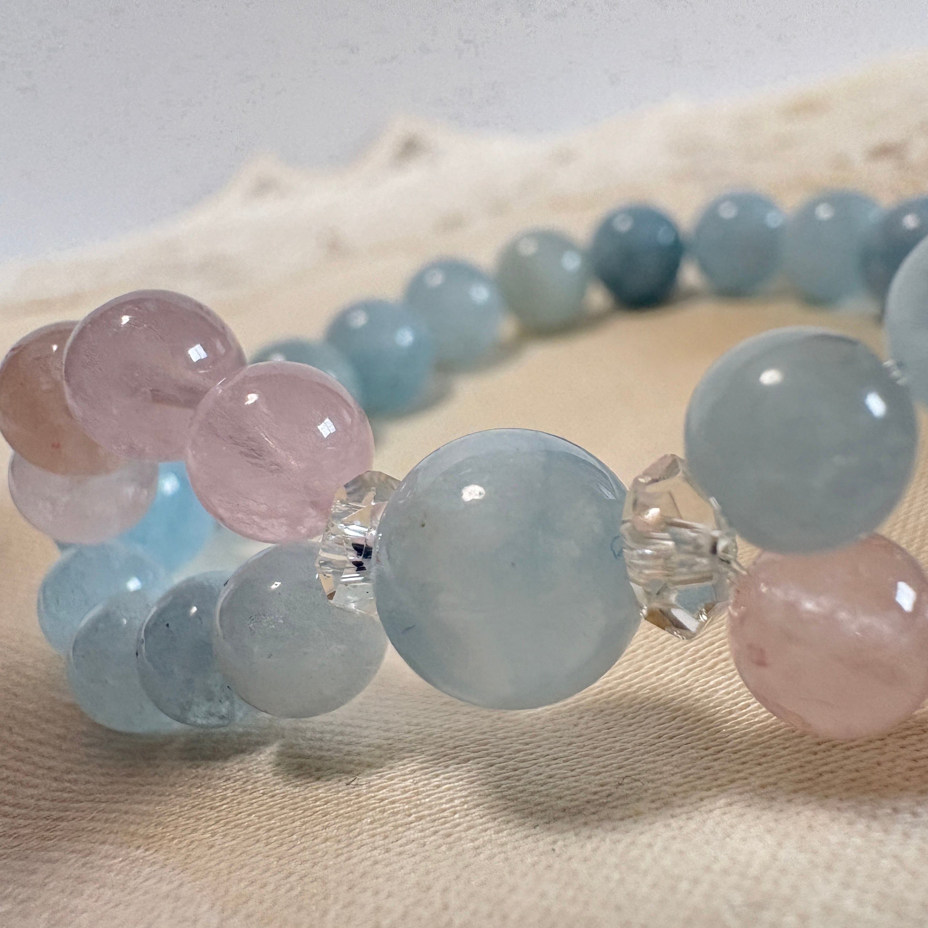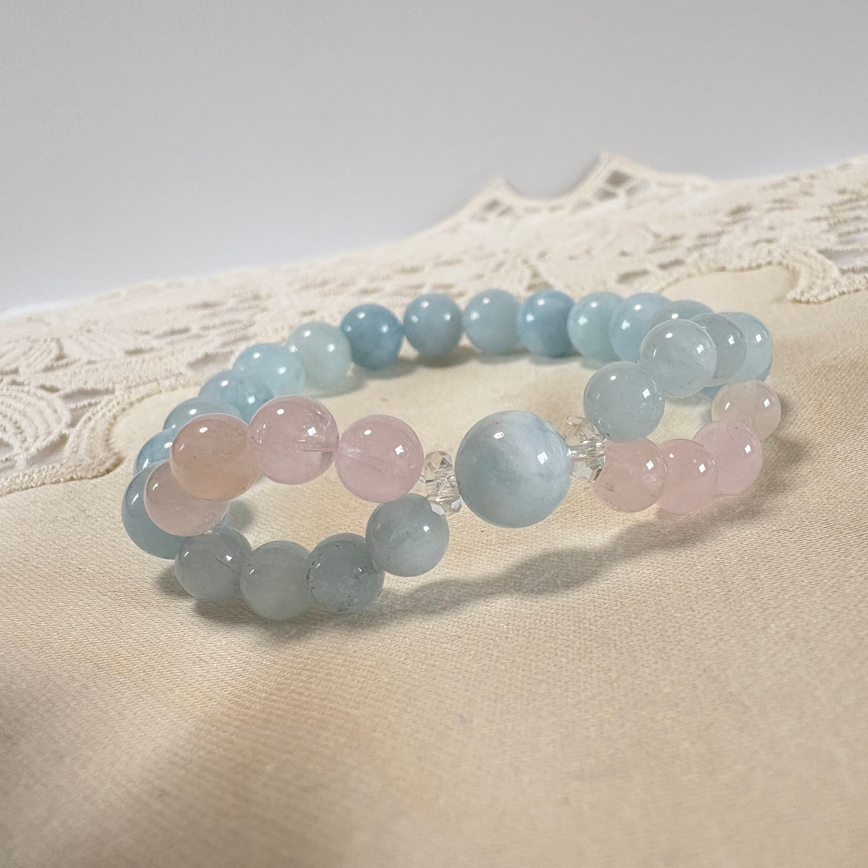インフィニティクロス∞ブレスレット©|ブラジル産アクアマリン × モルガナイト|愛と癒しが巡る天然石ブレスレット