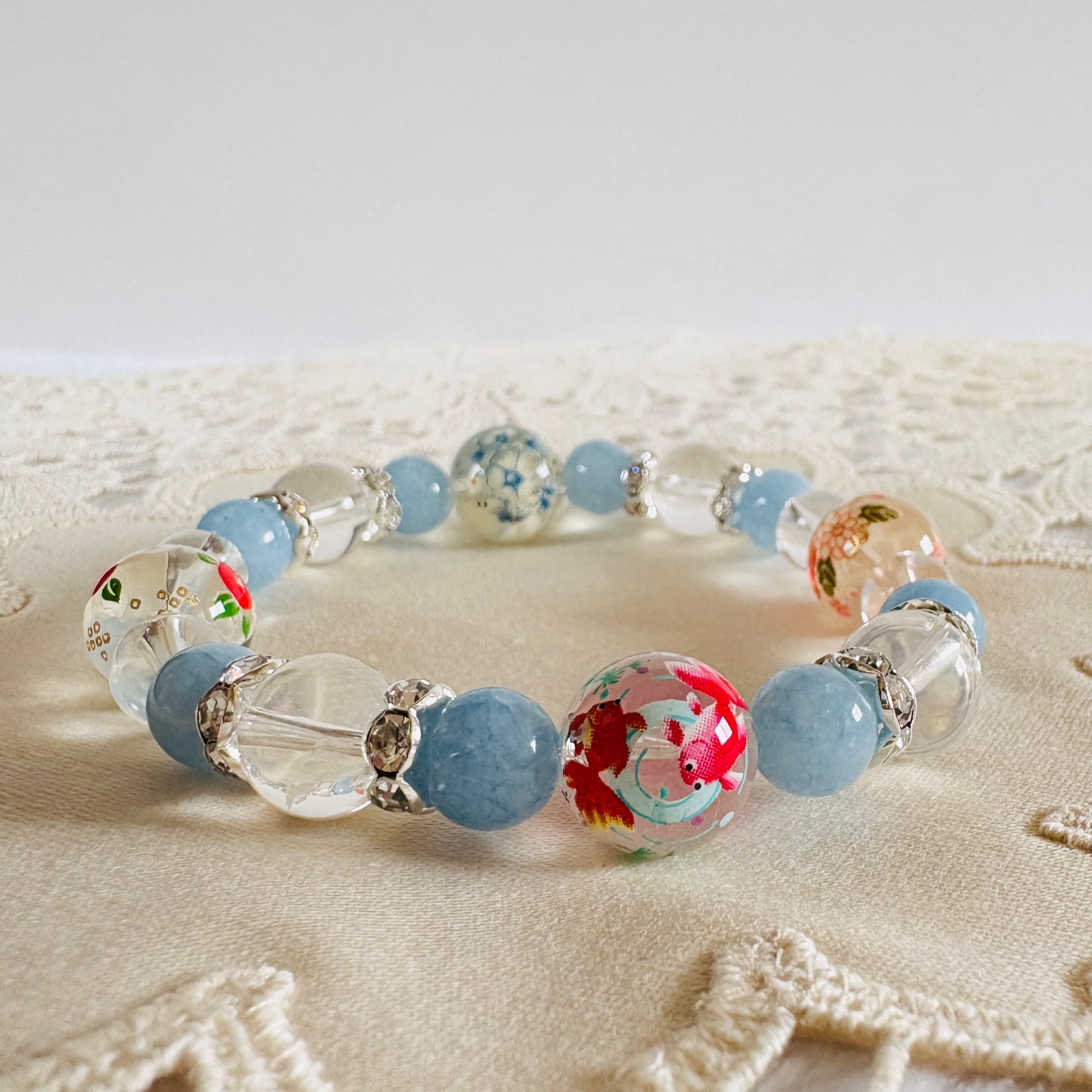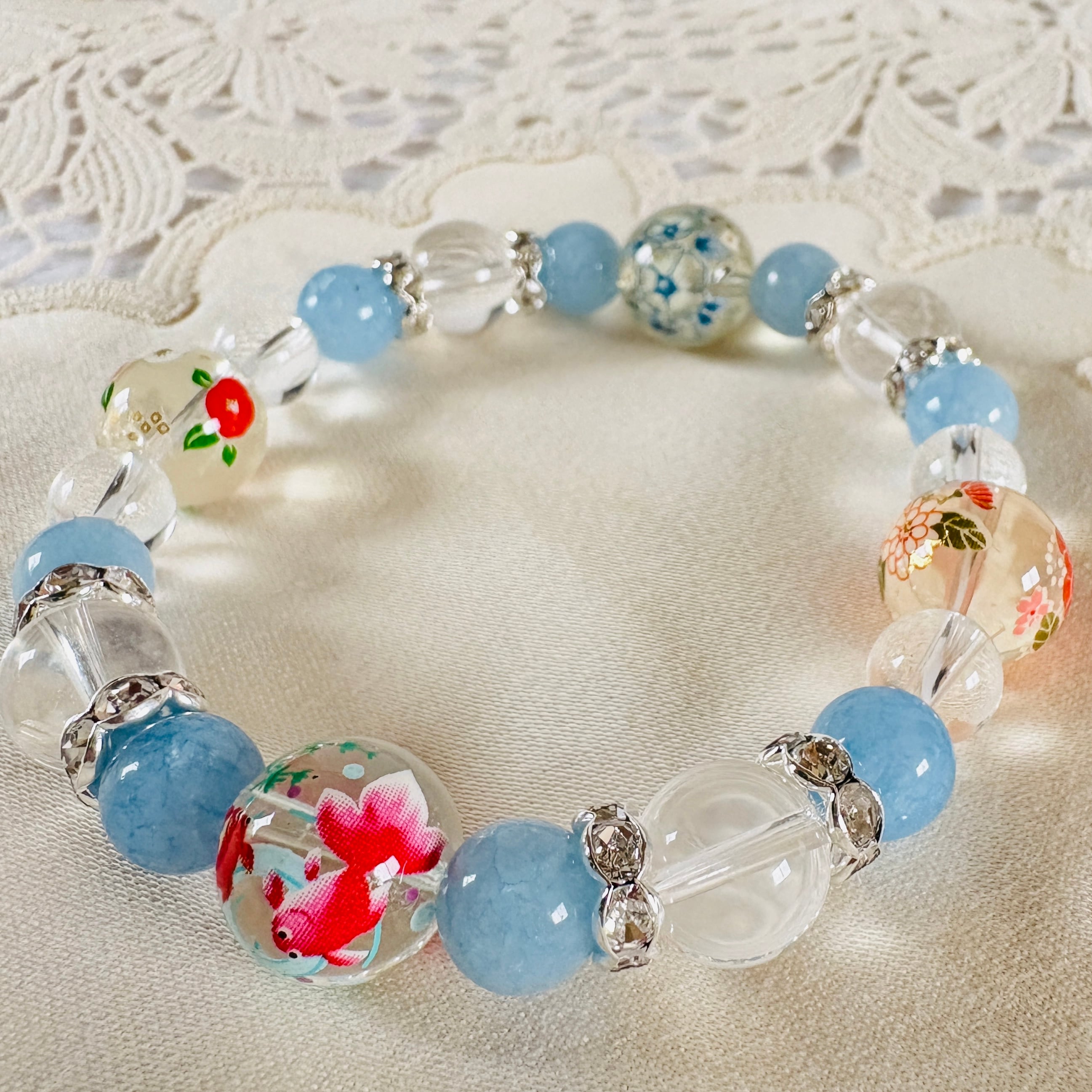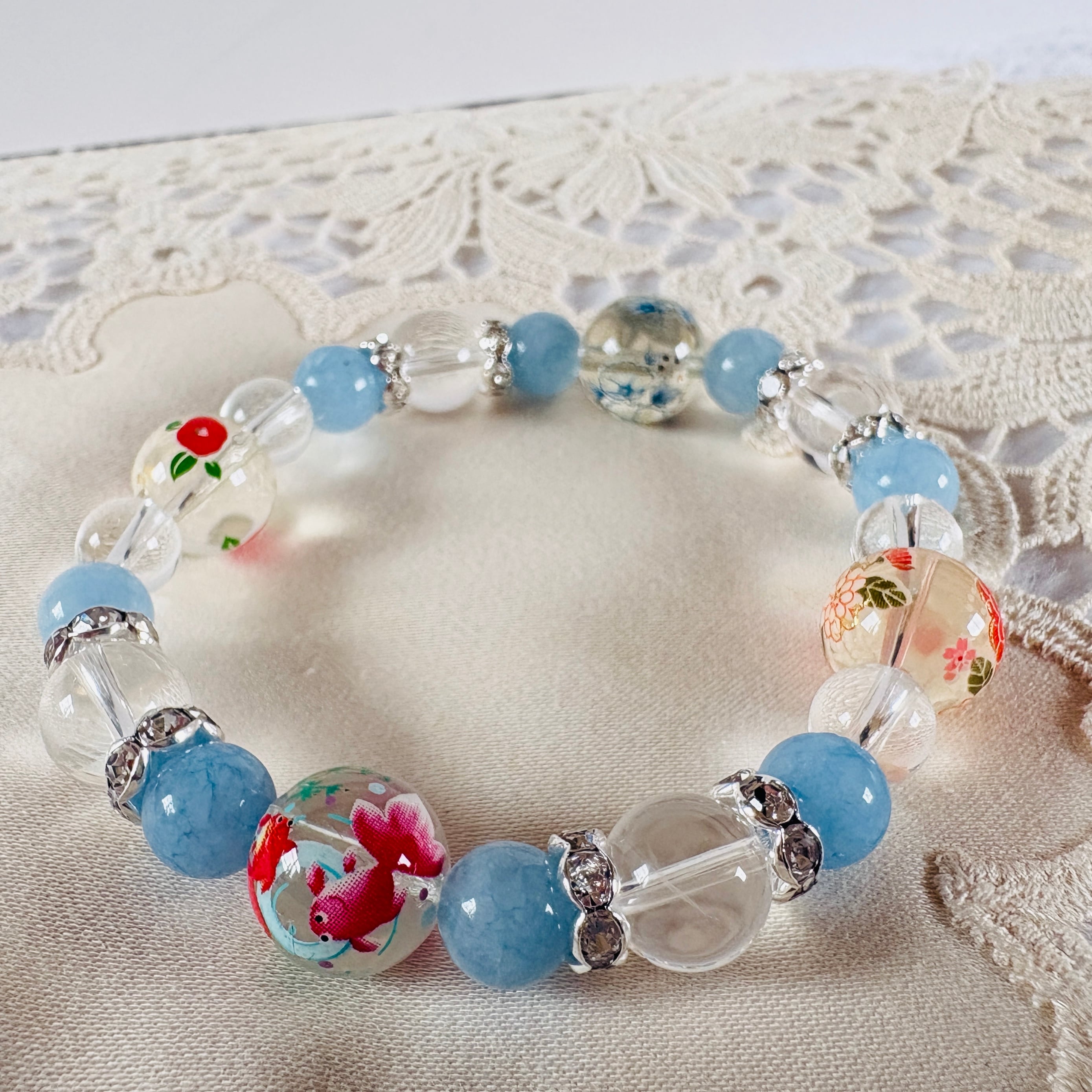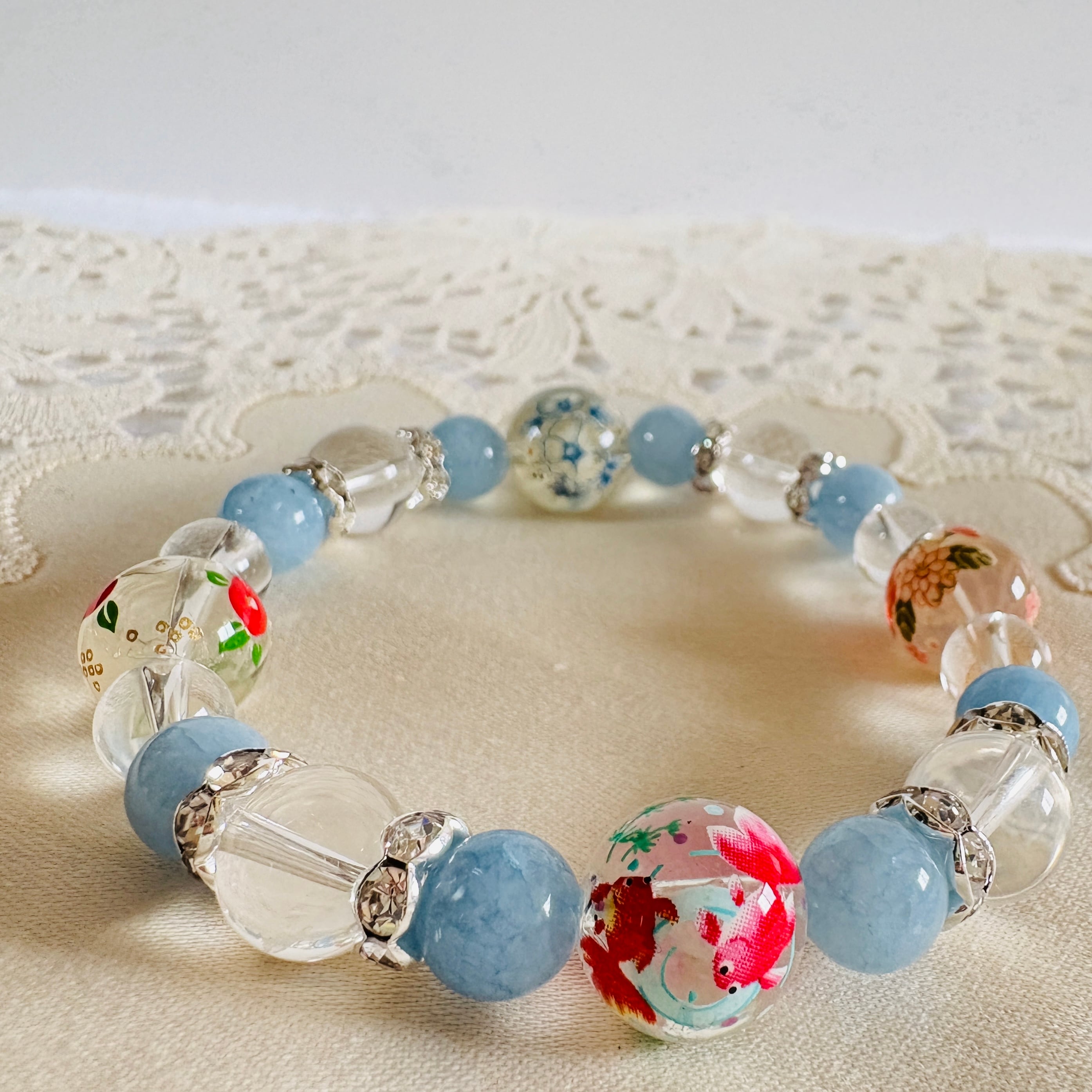 金魚と和花の水晶×アクアマリンのブレスレット|水の中の夏、涼やかで優しい透明感