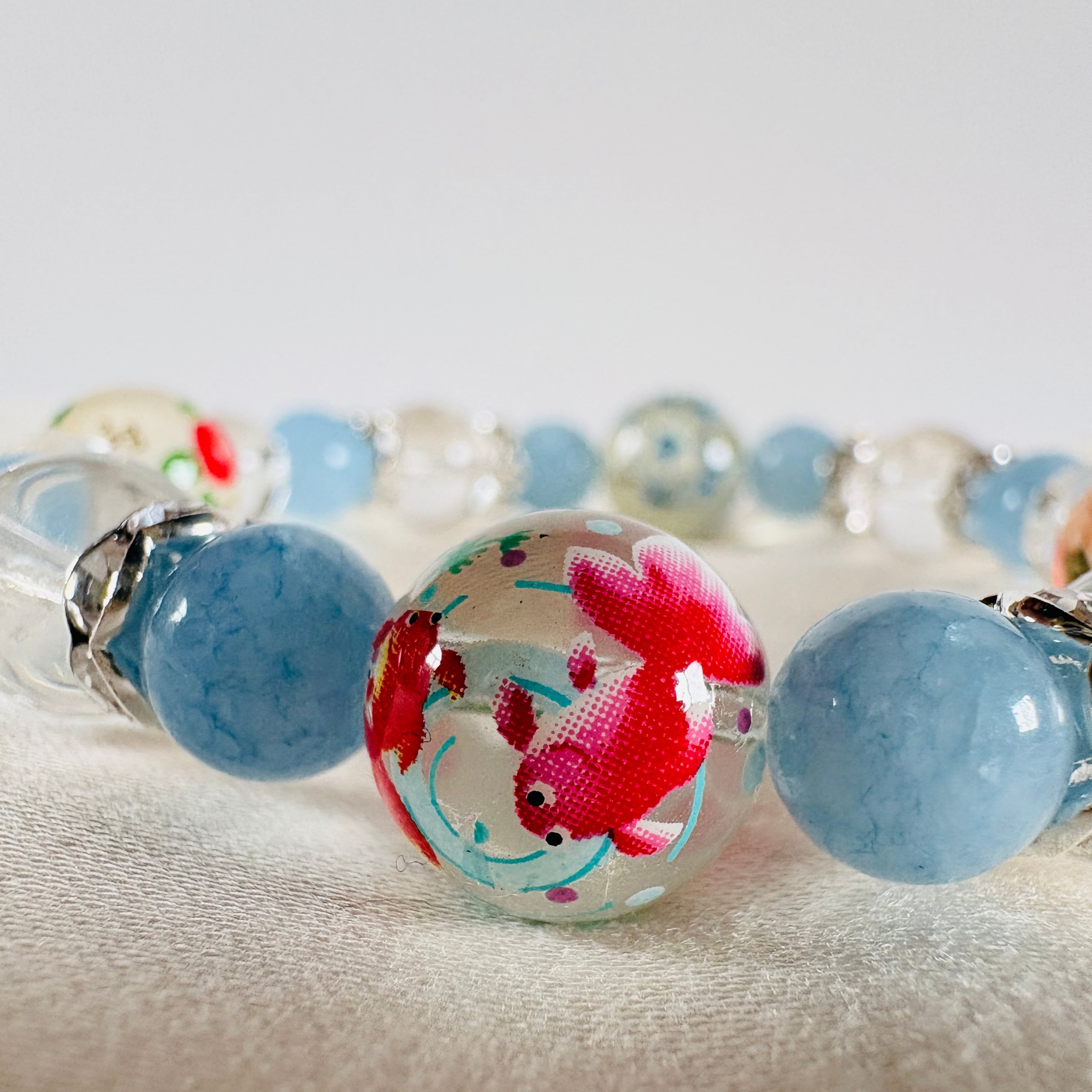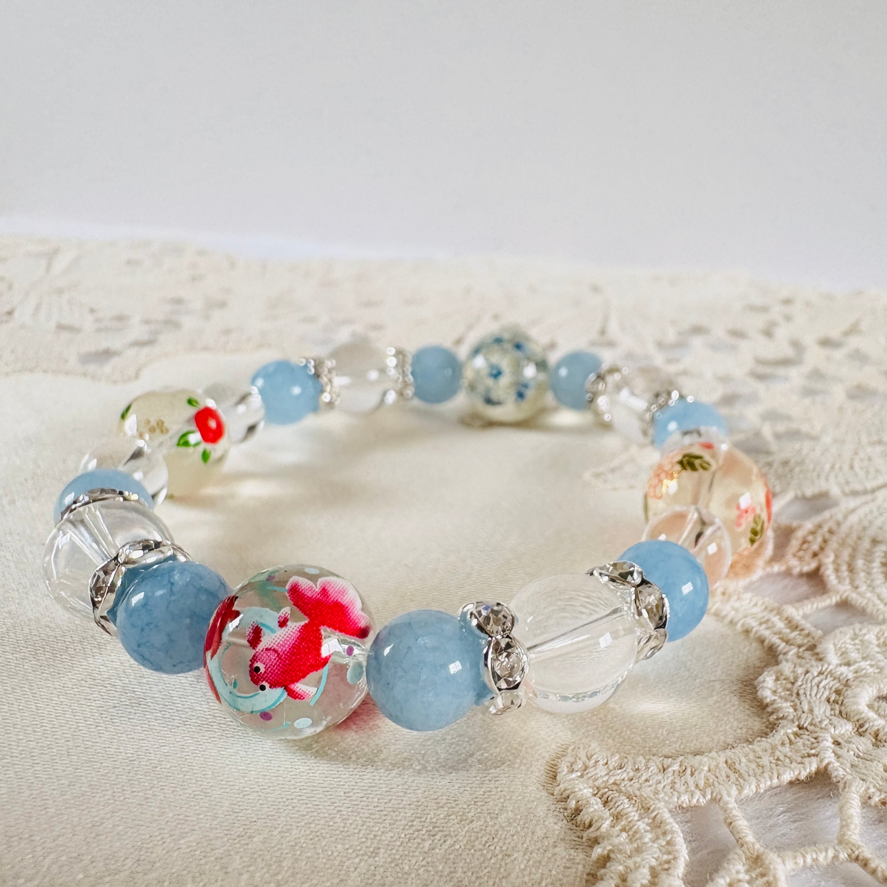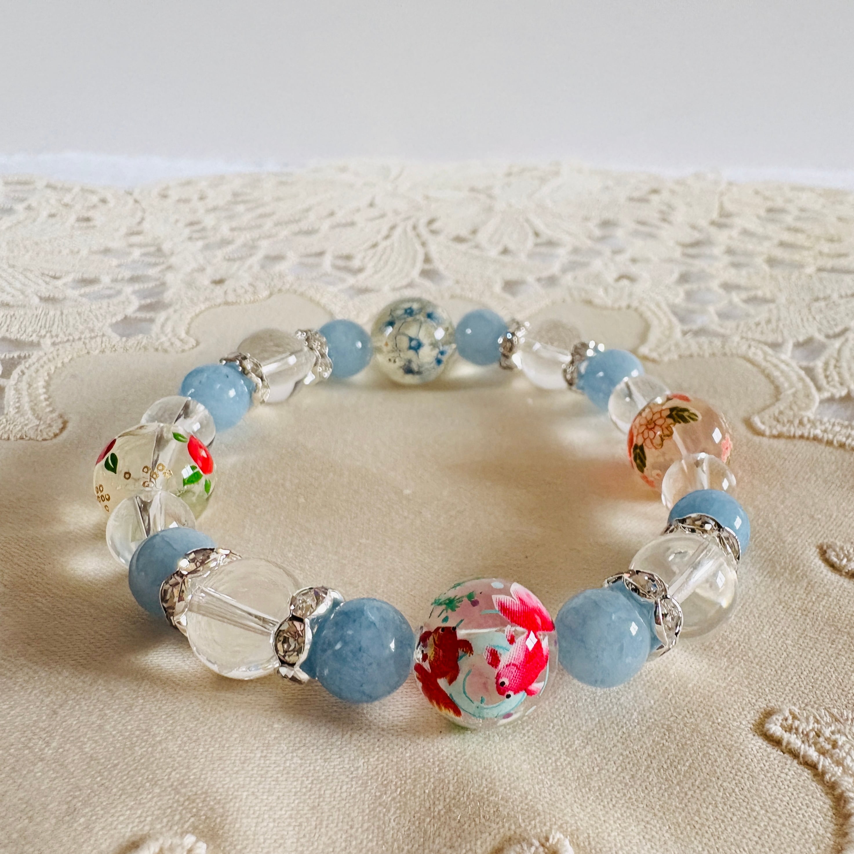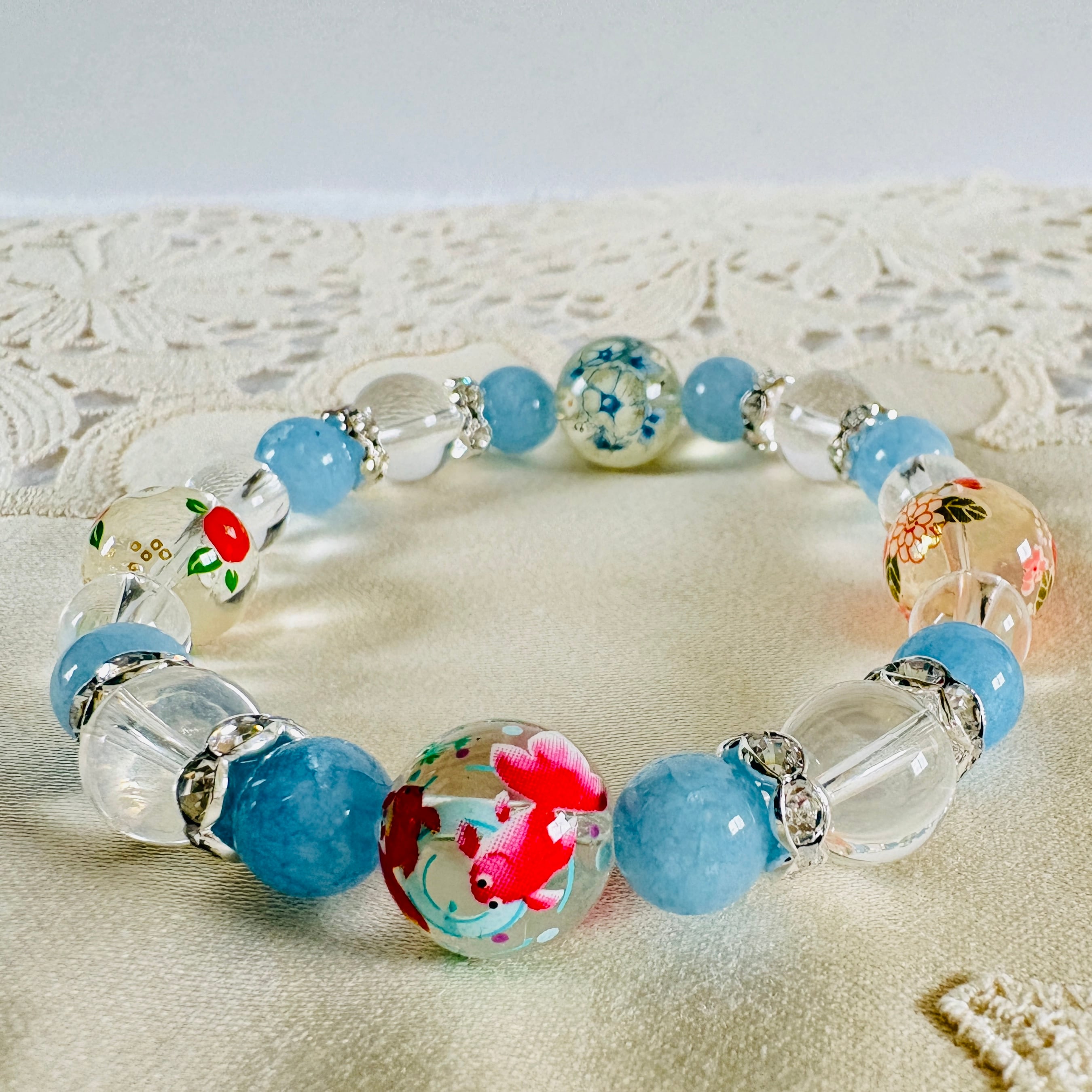 金魚と和花の水晶×アクアマリンのブレスレット|水の中の夏、涼やかで優しい透明感