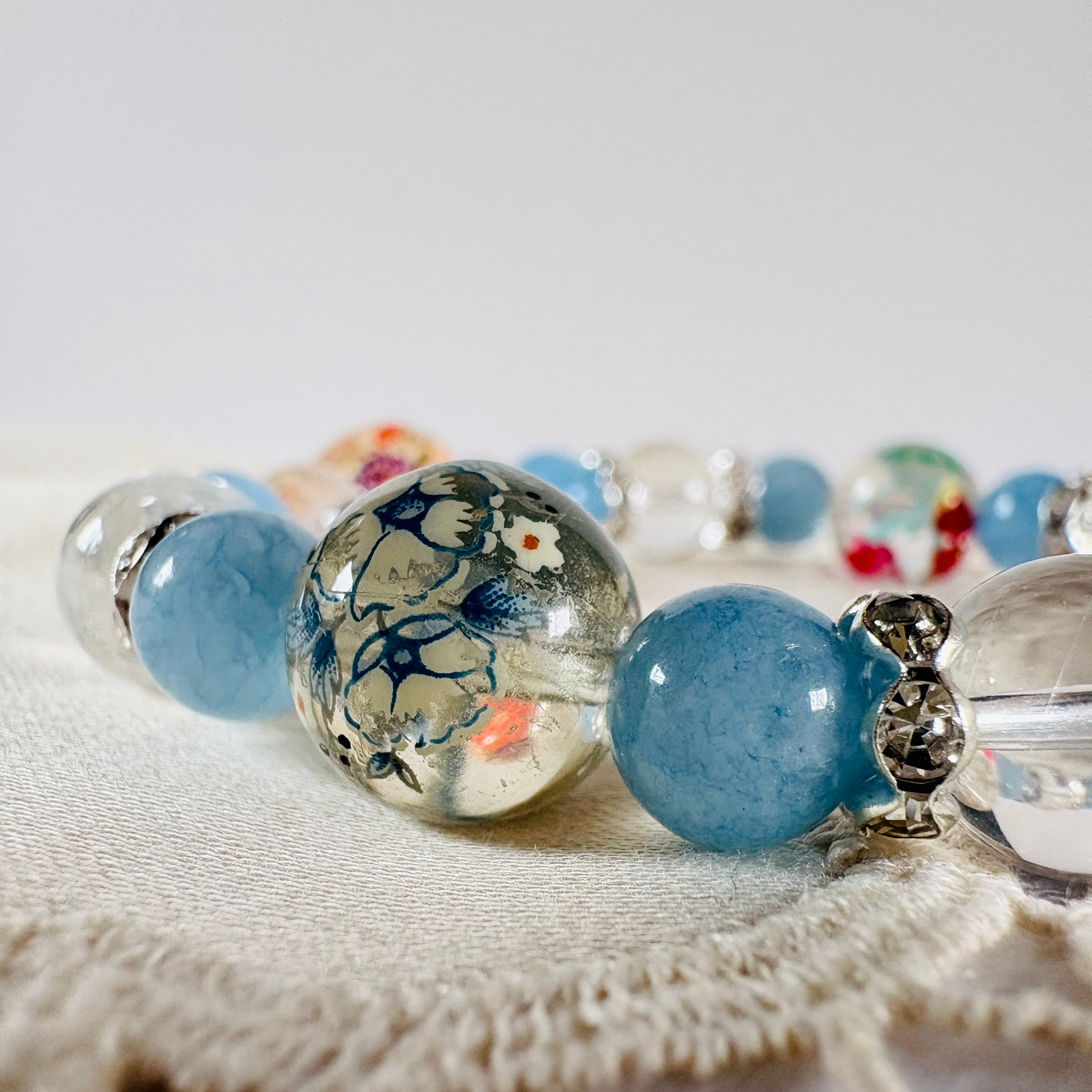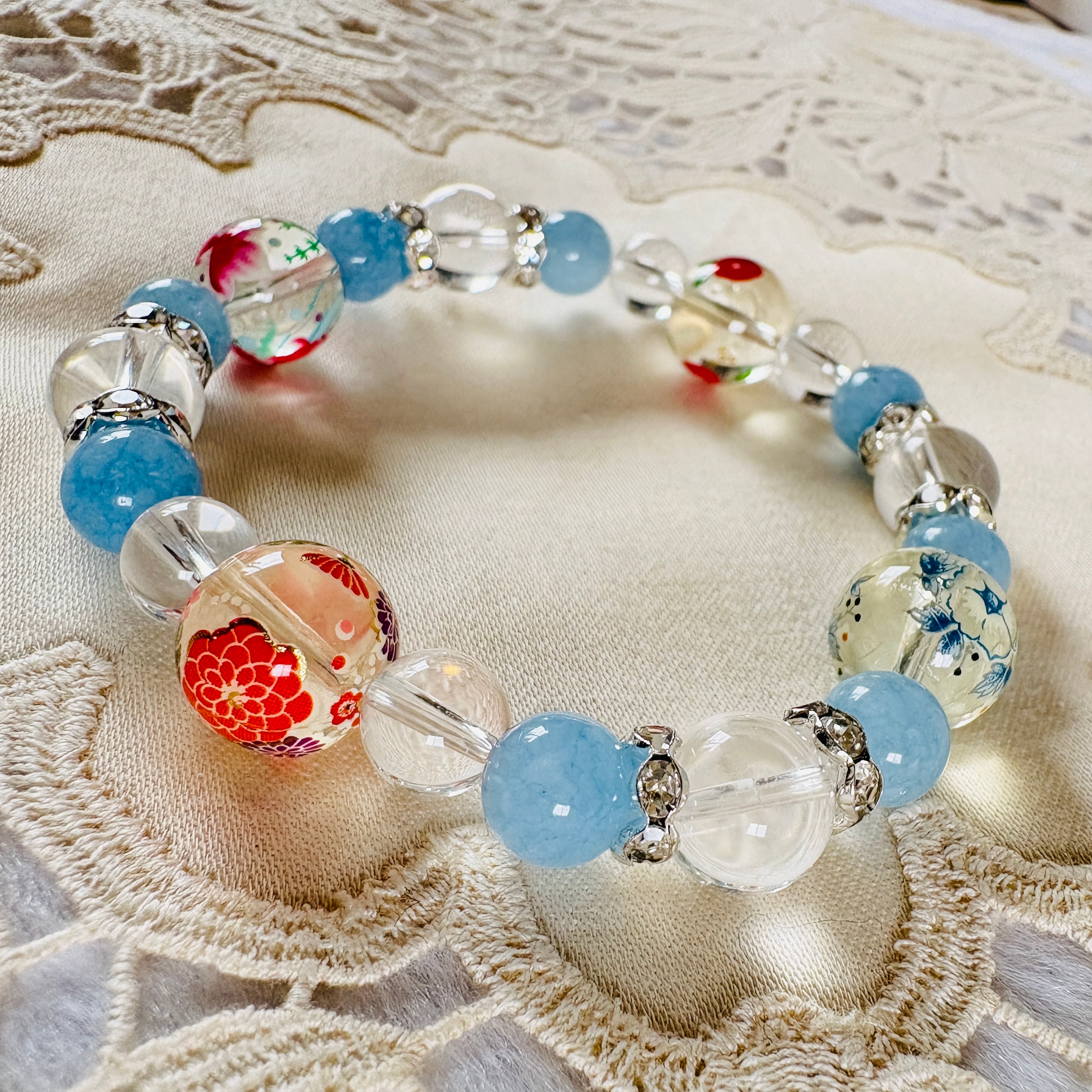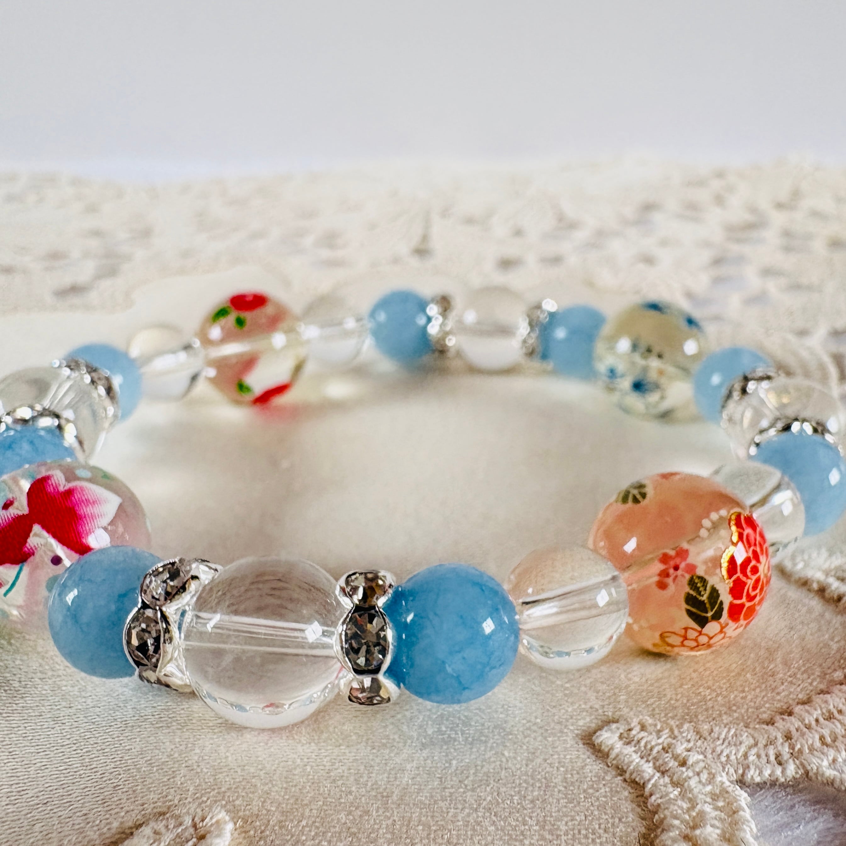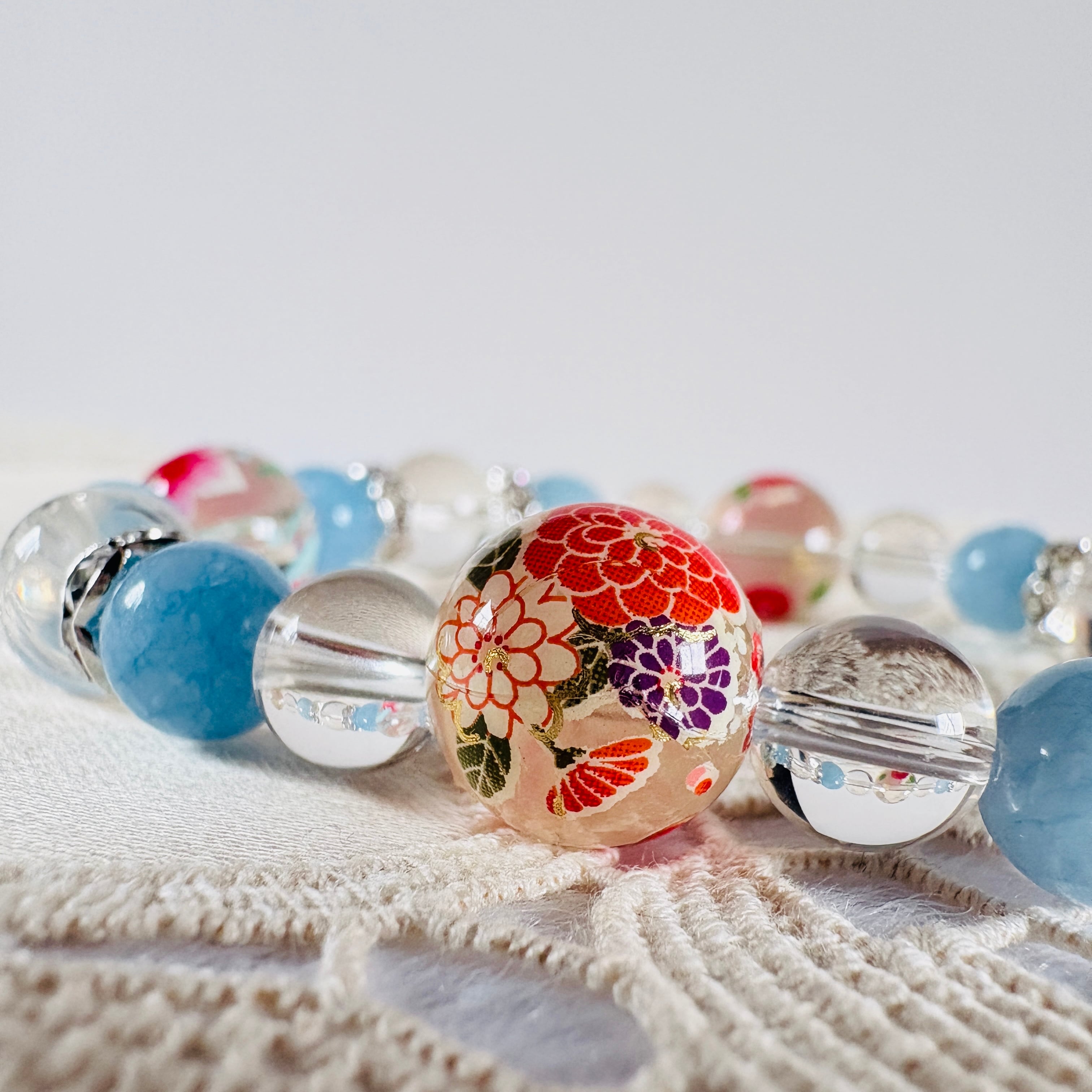 金魚と和花の水晶×アクアマリンのブレスレット|水の中の夏、涼やかで優しい透明感
