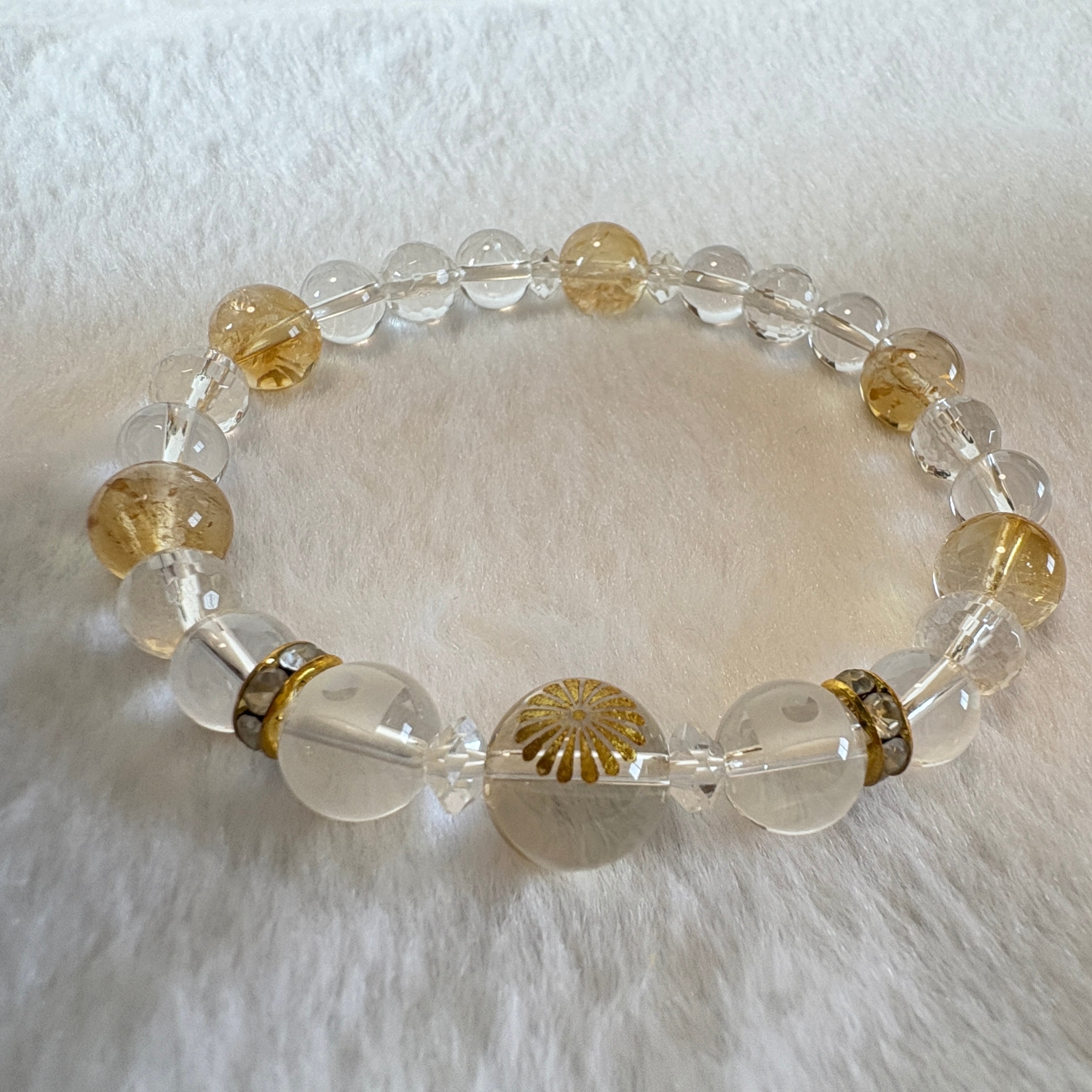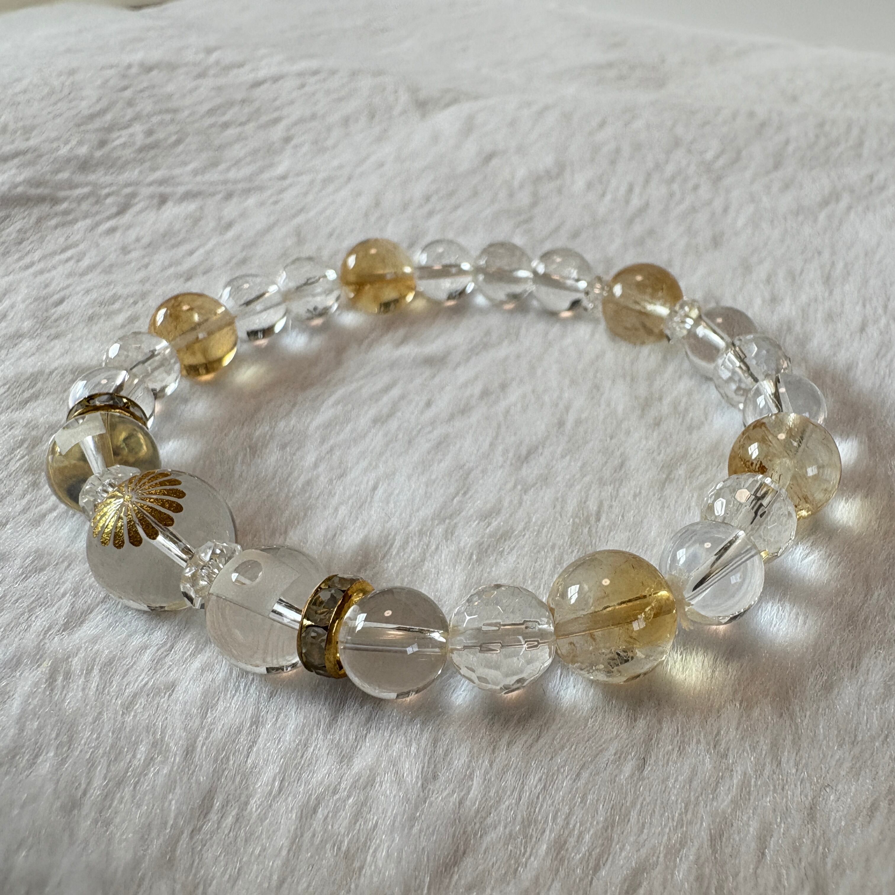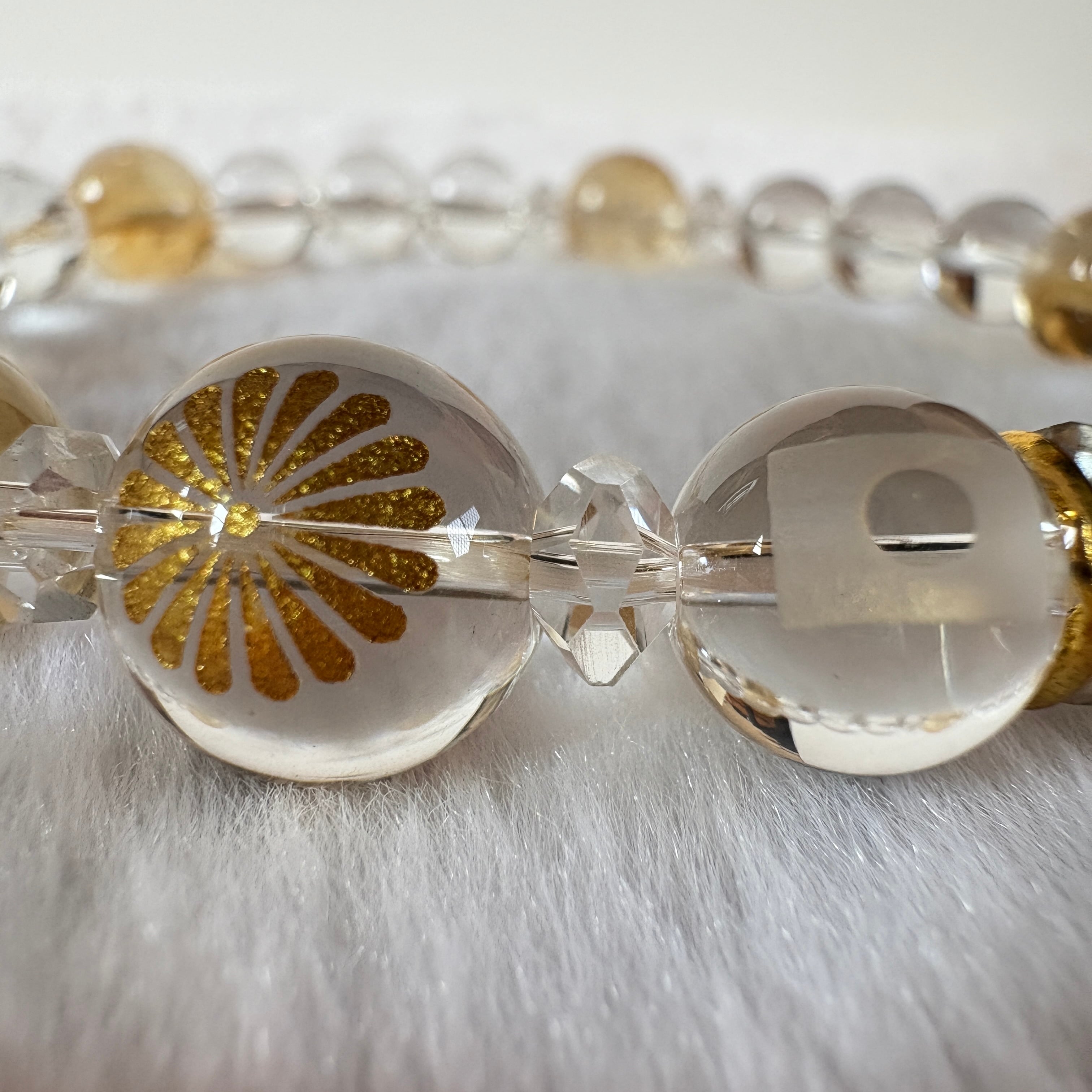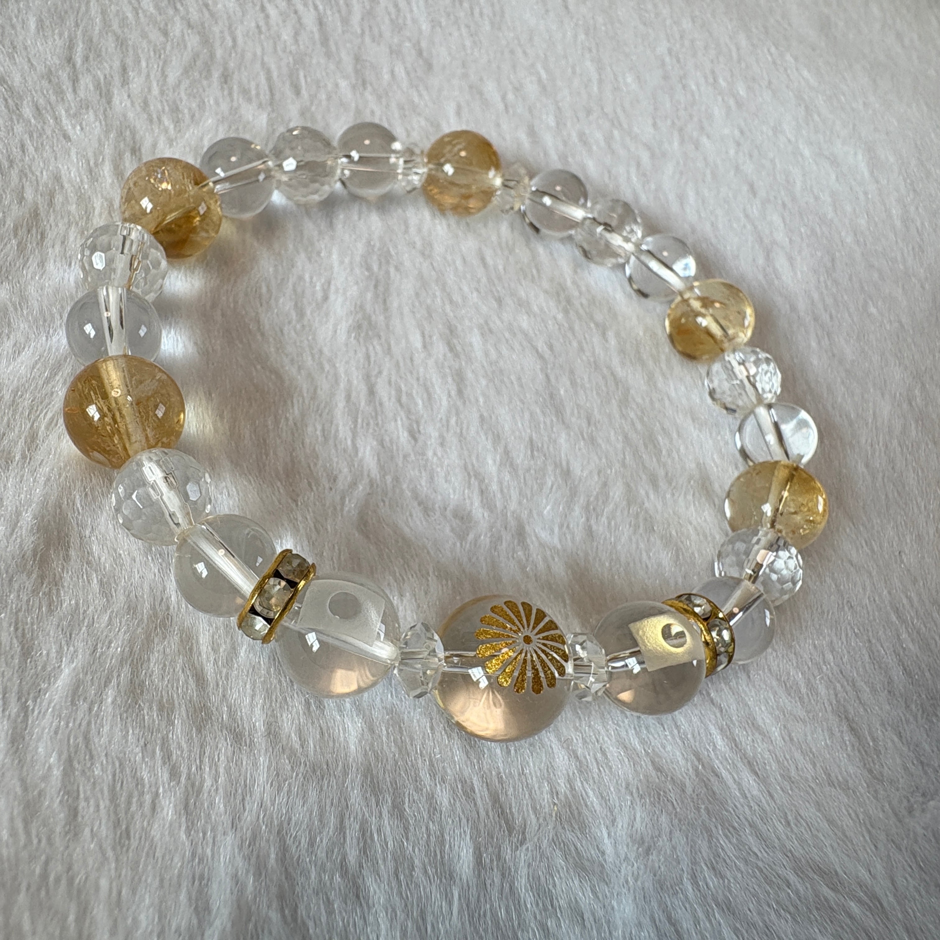 菊花紋水晶12㎜+日本国旗水晶10㎜+シトリン10㎜ 内周16.5㎝